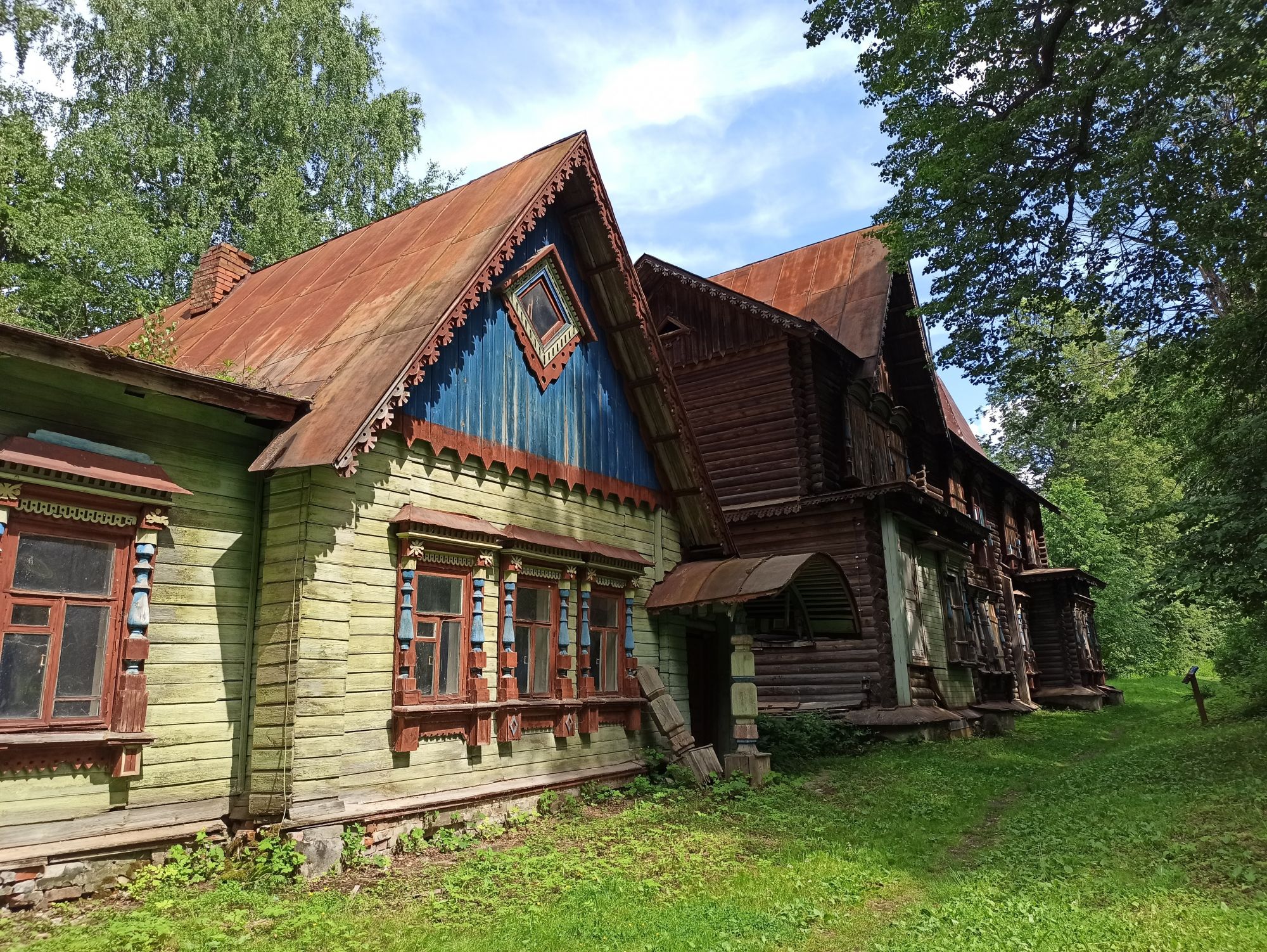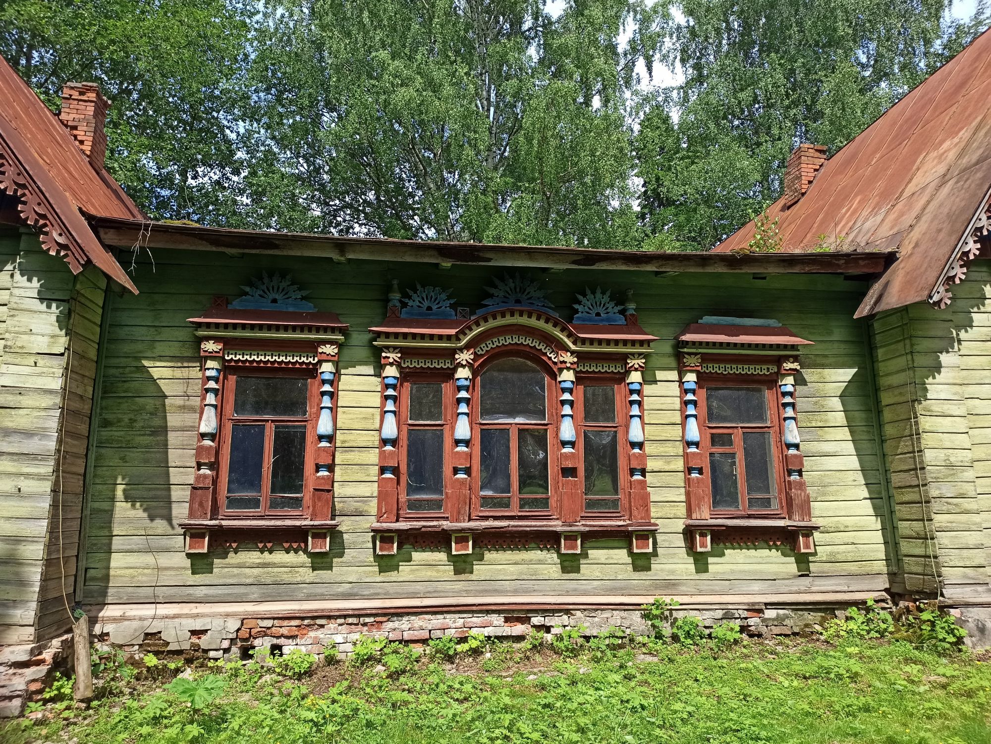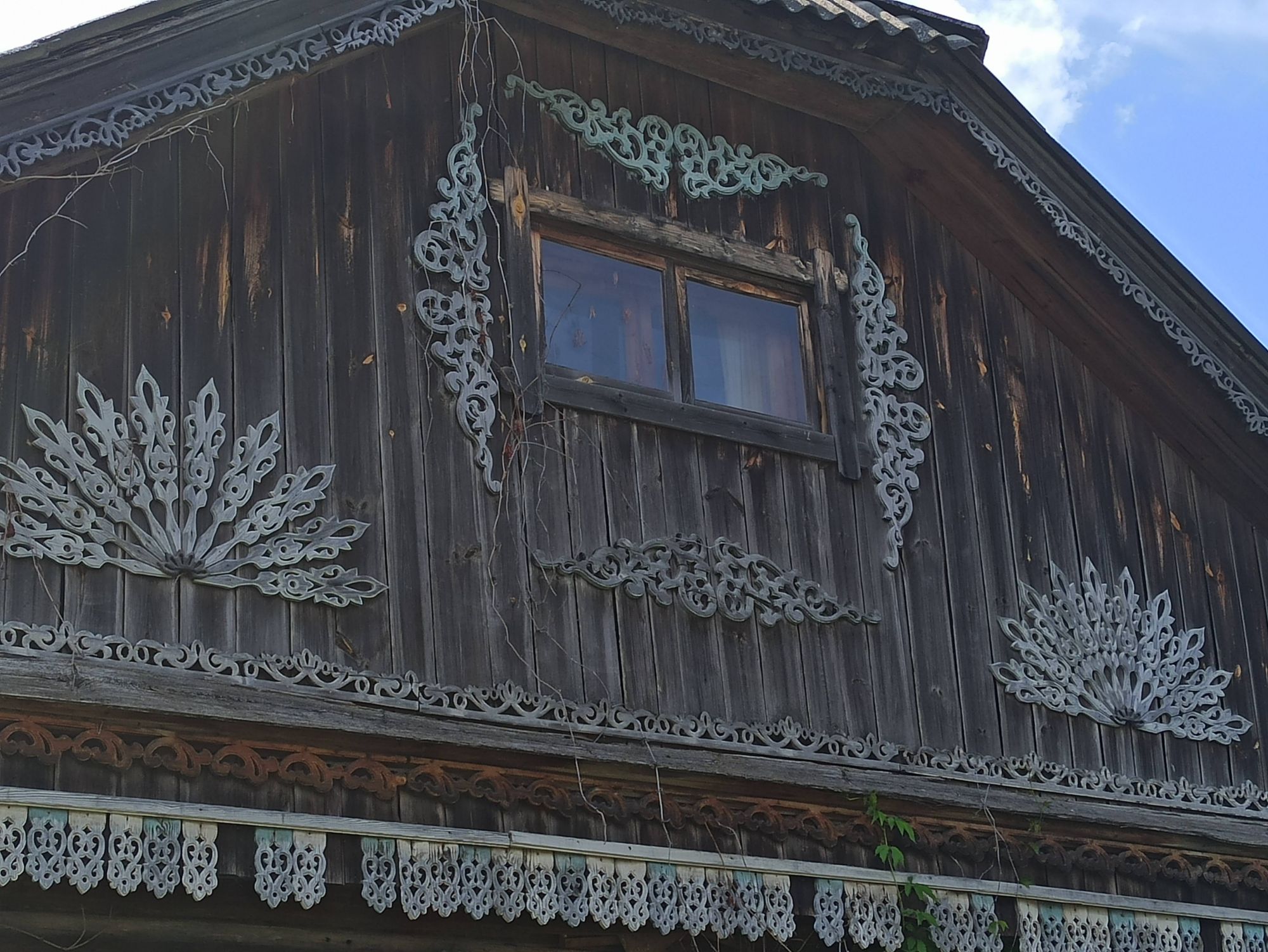25 июня 2021 Ну и плавно переходим к тому, почему я пропала на некоторое время. В общем, решили Оля с Женей, что хотят они свой отпуск недельный провести в моих краях. Дескать, давно их манит Поветлужье своей природной красотой и теремами резными. Ну и как небольшой бонус - здесь обитаю Я. Встречай нас, Дорогая Ася, завтра! А я что, я всегда им рада, в любое время и в любом месте. Но в этот раз был нюанс. Я - девушка несвободная от детей, да и собаку мне на это время подкинули родители. "Ему в городе летом плохо, а тут на даче простор. Возьми его, дочь". Я редко отказываю родителям, особенно в таких малых просьбах. Так что взяла конечно. По итогу к приезду ребят у меня имелась в наличии компашка из 2 детей и пса. Но, как показал дальнейший опыт, это не помешало нам всем хорошо отдохнуть. День первый. Терема и прочие резные штучки. Встали мы с утра, погода отличная. Надо грузиться и в путь. Вы наверное подумали, что мы мужественно сгруппировались в машине: в тесноте, да не в обиде и двинули? Неа, все было не так. Мать-кукушка сказала детям: " Будем поздно, не скучайте, еда в холодильнике, собаку не забудьте покормить тоже!", - и смылась в неизвестном направлении. Хотя направление было как раз известное - терема на Ветлуге. Да и дети не рыдали на крыльце от горя, а, сбивая пятки, бросились к гаджетам в ассортименте. Еще бы целый день без присмотра. Красота же! Село Малая Овсянка Надо сказать, что область у нас красивая, деревни привлекательные попадаются прям на дороге и вынуждают остановиться и рассмотреть что да как. Надо так же отметить, что почти повсеместно окна украшены наличниками, часто покрашенными свежей и не очень краской, что привлекает взгляд. Дома не все жилые, некоторые продаются, некоторые скособоченные, а некоторые с историей. На крыльце этого дома распивали пиво старый дедушка и молодой парень. Я подошла и спросила разрешения сфотографировать их наличники. Уж больно они выделялись на общем фоне. Дедушка был рад пообщаться. Рассказал, что дому 130 лет, ему он достался в наследство не так давно ( лет 15 назад). А по поводу окон: даже приезжали ребята из мастерской в деревне Зубово, которая возрождает традиции по изготовлению наличников. Упросили отдать один, как образец для будущих шедевров. Это история немного темная оказалась. Мы в целом и так не особо поверили, что такое могло быть. Скорее просто мошенники состряпали такую концепцию. А еще мы проезжали Зубуво через несколько дней. Поселок небольшой, лесозаготовителей. И ничего не указывает на то, что в ней может быть мастерская. А мы тем временем двигаемся дальше. И ждет нас первый из теремков Терем купца Беляева В довольно неплохом состоянии сохранился теремок лесопромышленника Беляева, который находится в селе Воскресенское. Отчасти потому, что на данный момент в доме расположен краеведческий музей, и так или иначе он "жилой". Вокруг сохранились хозяйственные постройки, но утерян, я так понимаю, переход от хозяйского дома к ним. Парк облагорожен, добавлены скульптуры, мостик и картинки на стенах амбара. В целом производит очень классное впечатление, так как место ухоженное. Меня бесконечно восхищают такого рода конструкции. Моя внутренняя девочка замирает от радости, когда видит башенки (последнее слово сказано с придыханием ) А тут их много. И они резные и разные. Видимо, сказываются графско-купечески