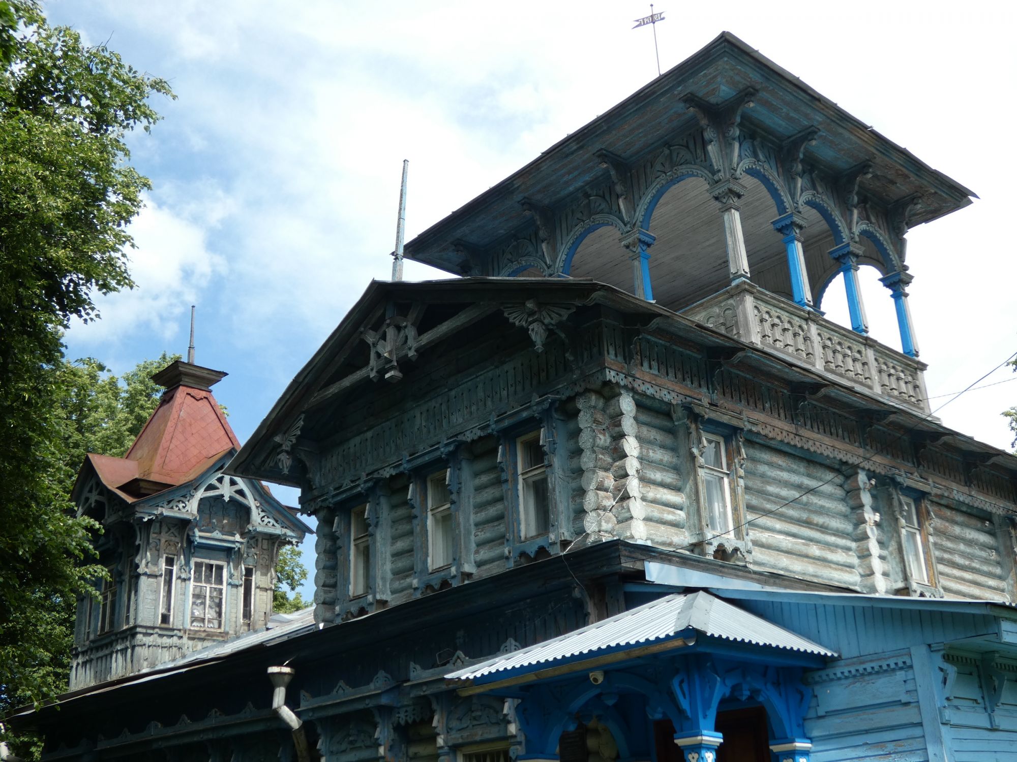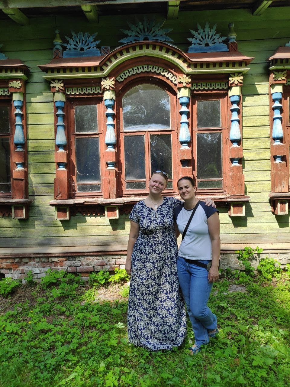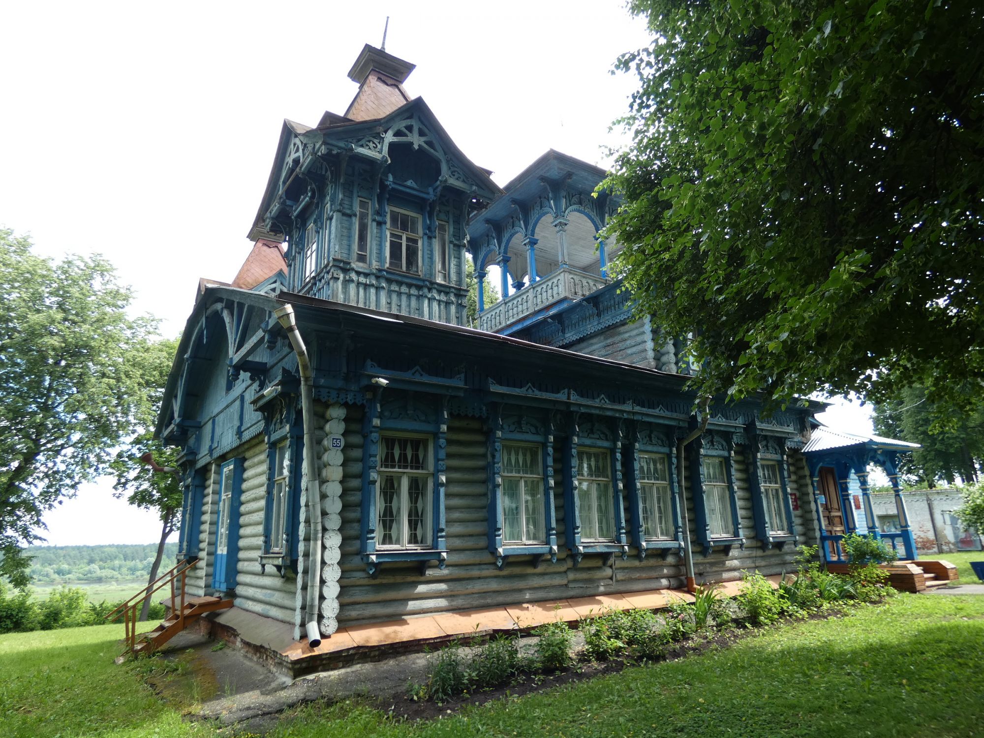 25 июня 2021 Ну и плавно переходим к тому, почему я пропала на некоторое время. В общем, решили Оля с Женей, что хотят они свой отпуск недельный провести в моих краях. Дескать, давно их манит Поветлужье своей природной красотой и теремами резными. Ну и как небольшой бонус - здесь обитаю Я. Встречай нас, Дорогая Ася, завтра! А я что, я всегда им рада, в любое время и в любом месте. Но в этот раз был нюанс. Я - девушка несвободная от детей, да и собаку мне на это время подкинули родители. "Ему в городе летом плохо, а тут на даче простор. Возьми его, дочь". Я редко отказываю родителям, особенно в таких малых просьбах. Так что взяла конечно. По итогу к приезду ребят у меня имелась в наличии компашка из 2 детей и пса. Но, как показал дальнейший опыт, это не помешало нам всем хорошо отдохнуть. День первый. Терема и прочие резные штучки. Встали мы с утра, погода отличная. Надо грузиться и в путь. Вы наверное подумали, что мы мужественно сгруппировались в машине: в тесноте, да не в обиде и двинули? Неа, все было не так. Мать-кукушка сказала детям: " Будем поздно, не скучайте, еда в холодильнике, собаку не забудьте покормить тоже!", - и смылась в неизвестном направлении. Хотя направление было как раз известное - терема на Ветлуге. Да и дети не рыдали на крыльце от горя, а, сбивая пятки, бросились к гаджетам в ассортименте. Еще бы целый день без присмотра. Красота же! Село Малая Овсянка Надо сказать, что область у нас красивая, деревни привлекательные попадаются прям на дороге и вынуждают остановиться и рассмотреть что да как. Надо так же отметить, что почти повсеместно окна украшены наличниками, часто покрашенными свежей и не очень краской, что привлекает взгляд. Дома не все жилые, некоторые продаются, некоторые скособоченные, а некоторые с историей. На крыльце этого дома распивали пиво старый дедушка и молодой парень. Я подошла и спросила разрешения сфотографировать их наличники. Уж больно они выделялись на общем фоне. Дедушка был рад пообщаться. Рассказал, что дому 130 лет, ему он достался в наследство не так давно ( лет 15 назад). А по поводу окон: даже приезжали ребята из мастерской в деревне Зубово, которая возрождает традиции по изготовлению наличников. Упросили отдать один, как образец для будущих шедевров. Это история немного темная оказалась. Мы в целом и так не особо поверили, что такое могло быть. Скорее просто мошенники состряпали такую концепцию. А еще мы проезжали Зубуво через несколько дней. Поселок небольшой, лесозаготовителей. И ничего не указывает на то, что в ней может быть мастерская. А мы тем временем двигаемся дальше. И ждет нас первый из теремков Терем купца Беляева В довольно неплохом состоянии сохранился теремок лесопромышленника Беляева, который находится в селе Воскресенское. Отчасти потому, что на данный момент в доме расположен краеведческий музей, и так или иначе он "жилой". Вокруг сохранились хозяйственные постройки, но утерян, я так понимаю, переход от хозяйского дома к ним. Парк облагорожен, добавлены скульптуры, мостик и картинки на стенах амбара. В целом производит очень классное впечатление, так как место ухоженное. Меня бесконечно восхищают такого рода конструкции. Моя внутренняя девочка замирает от радости, когда видит башенки (последнее слово сказано с придыханием ) А тут их много. И они резные и разные. Видимо, сказываются графско-купечески