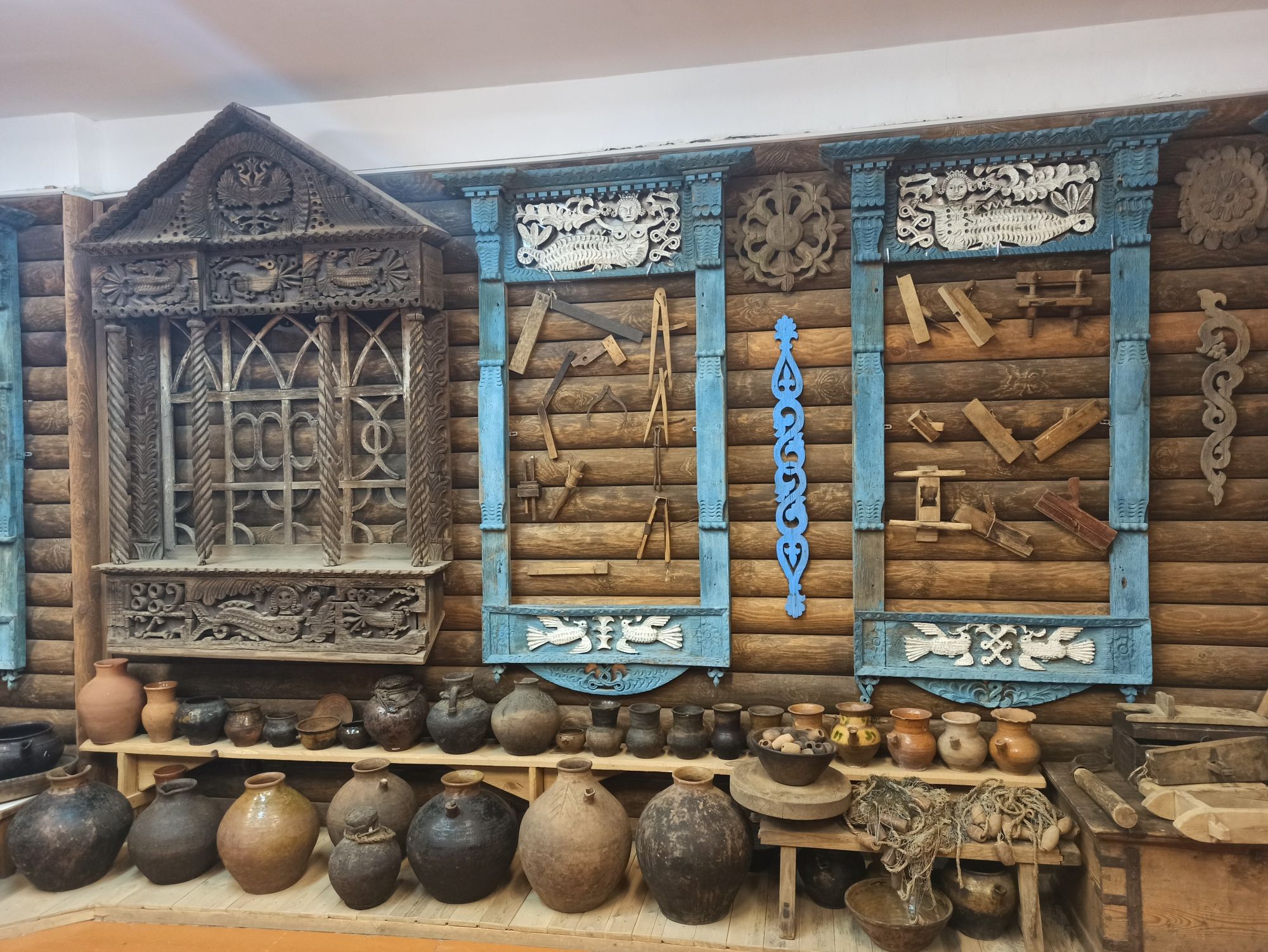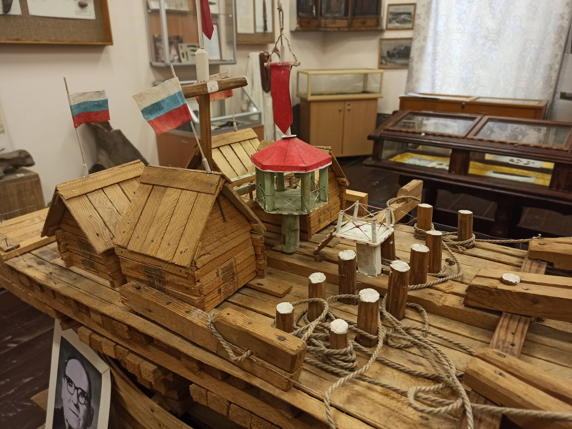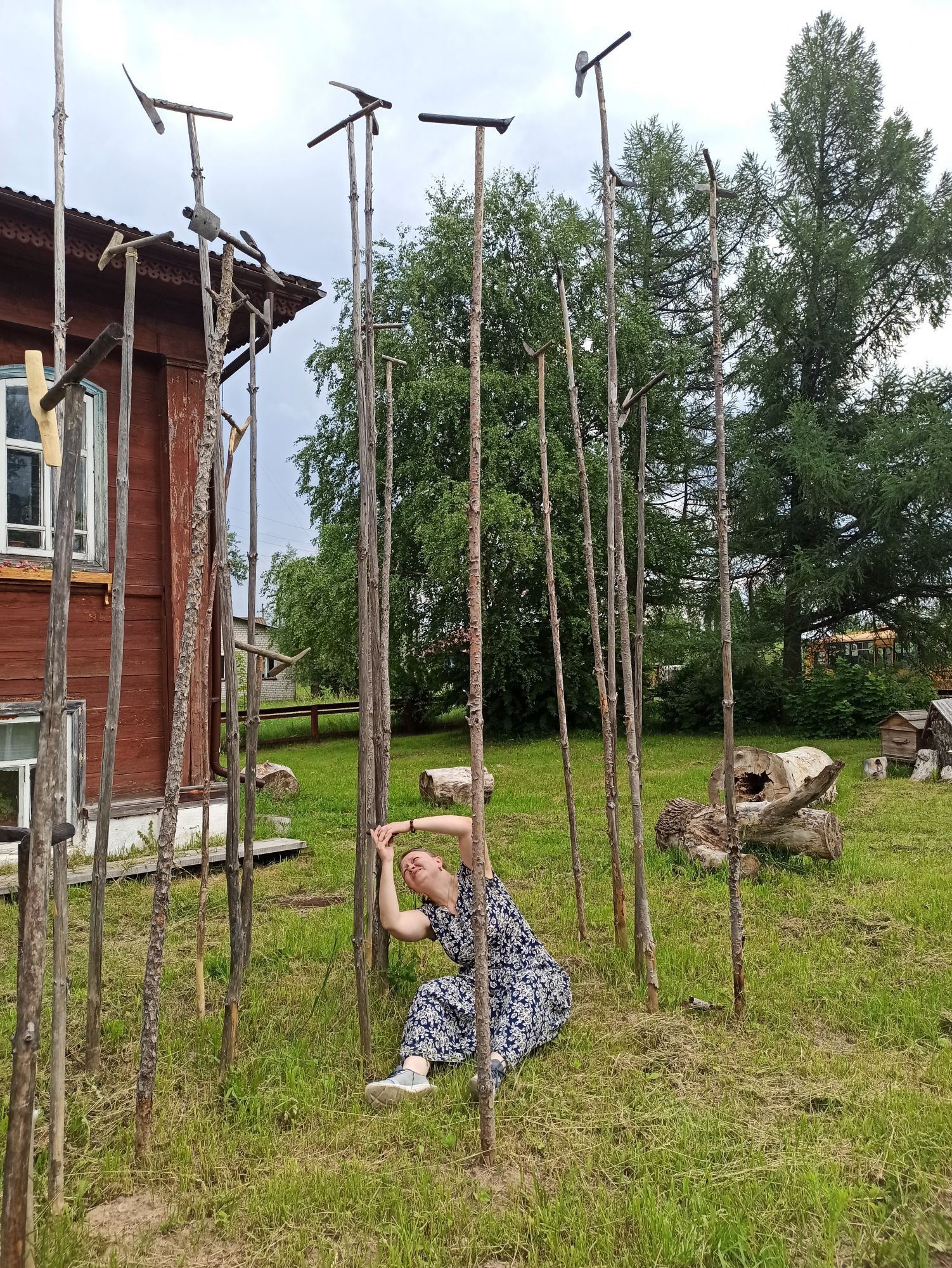 26 июня 2021 День 2. Поветлужье В тех местах мы посмотрели далеко не все, поэтому на второй день рванули в ту же сторону. Возможно, это не особенно рационально. Можно было взять палатки, переночевать там и продолжить, но комары зверствовали, да и детей я еще на ночь бросать одних не умею. Всему надо учиться. ))) Этот день планировал быть жарким, а нам совсем не хотелось жариться на солнце. Решили, что посвятим этот день двум музеям. Один из них Краеведческий и находится в довольно крупном районном центре Красные Баки. Причем забавно, что в таком варианте названия в слове Баки идет ударение на А, а если просто Баки, то на И. Как-то быстро доехали, но не учли, что провинция - это не крупные города-миллионники, и не, дай боже, столица. Приехав в 11.40 мы не смогли получить экскурсию, потому что с 12 что? Правильно - обед! Трое человек сидели в кабинете и готовились к трапезе. Нам было вяло сказано, что за 20 минут ничего показать не успеют, приходите позже. Они при этом даже поинтересовались откуда мы. Услышали, что из Подмосковья и... все равно сказали, чтобы мы приходили через 1,5 часа. Казалось бы, ну пообедай через час, у тебя гости, не сказать, что люди толпятся, но им это не очень интересно. Но об этом еще позже. А пока нас Ольгой откровенно бомбило, а Женя над нами тихо и не очень угорал. Ну нет, так нет. Едем дальше в музей "Культуры леса". "Музей культуры леса" У Ольки стояла метка на карте, что надо бы съездить. Но что это было не очень ясно. Полезли на их сайт и так нам понравилось описание всего, что решили ехать точно. Находится он в деревне с красивым названием Большие Отары. Музей скорее всего частный, практически семейный. Пожилая пара основные его смотрители. Она проводит экскурсии, причем для школьников бесплатные, а их дети поставляют экспонаты, сувенирку и все такое прочее. Сам музей расположен в доме, который принадлежал лесопромышленнику Яранцеву. О нем говорят с большим уважением, как человеке, оказавшем наиболее большой вклад в жизнь деревни и окрестностей. Странно, что этот дом отдали частному музею и разрешают его ремонтировать и реставрировать, но факт. Нас встретила смотритель. Точнее мы позвонили ей по телефону, и она тут же пришла. Сразу сказала, что готова работать в любое время дня и ночи. После Красных Баков - это было приятно услышать. Экскурсия началась со двора. Здесь они сделали целый комплекс арт-объектов. Именно благодаря им, гораздо проще рассказывать о быте крестьян работающих с лесом. Есть даже лодка, по типу старых. Она особенная тем, что пару лет назад на ней действительно произвели сплав-экспедицию по всей Ветлуге. А еще там имеется целый форт. Что ценно, на него можно забираться. И даже всем троим. Правда немного страшновато, он не каменный, поэтому ходит туда-сюда с небольшой амплитудой. Мы естественно полезли, потому что страшно, но классно. Внутри дома экскурсии не вышло. Приехали школьники, они заполонили все небольшое пространство. Мы слышали какие-то отголоски, но не все. Впрочем, нам совсем не помешало это вот все погулять по музею самим и посмотреть на его забавные экспонаты. Мне очень зашли старые фотки. Обратите внимание на креатив при лепке Снеговика, а еще на необычный алфавит, где Д - это дача деда. И представляете, было даже ВИА. Прекрасна также старообрядческая часть. Книги, быт, сундуки, рамы и классный петушок в рюмке. До че