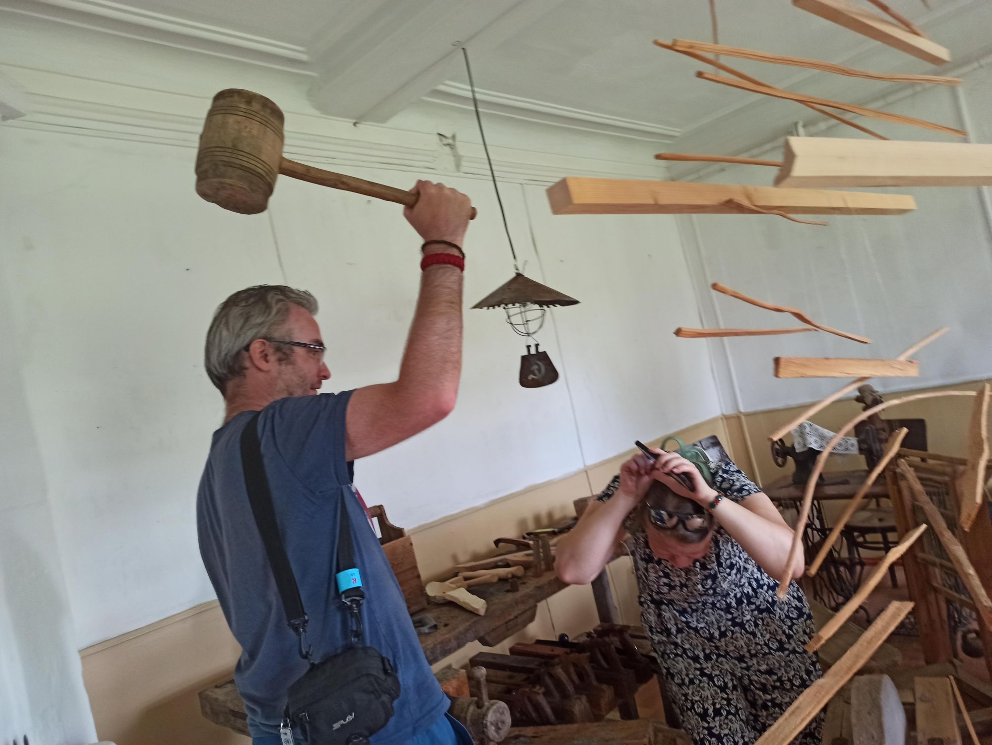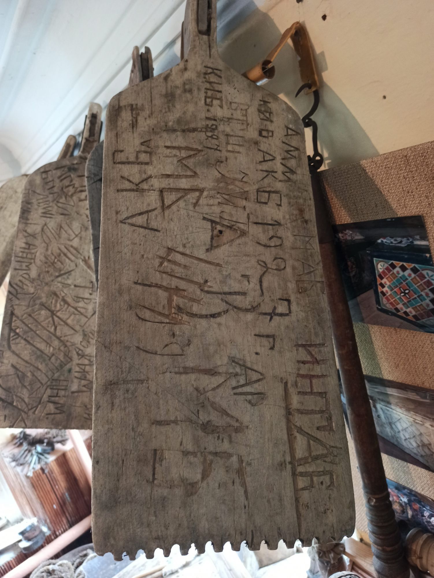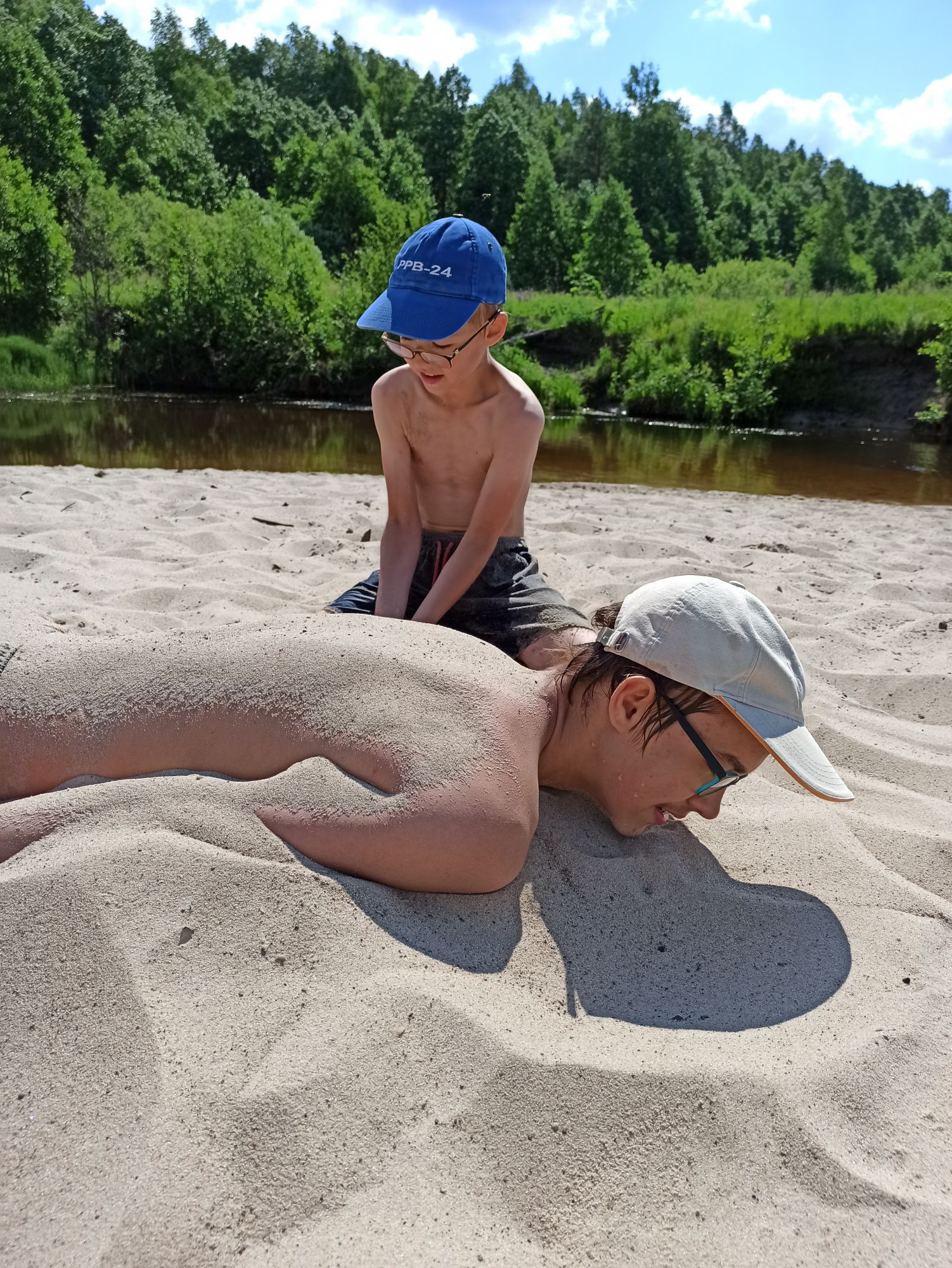 26 июня 2021 День 2. Поветлужье В тех местах мы посмотрели далеко не все, поэтому на второй день рванули в ту же сторону. Возможно, это не особенно рационально. Можно было взять палатки, переночевать там и продолжить, но комары зверствовали, да и детей я еще на ночь бросать одних не умею. Всему надо учиться. ))) Этот день планировал быть жарким, а нам совсем не хотелось жариться на солнце. Решили, что посвятим этот день двум музеям. Один из них Краеведческий и находится в довольно крупном районном центре Красные Баки. Причем забавно, что в таком варианте названия в слове Баки идет ударение на А, а если просто Баки, то на И. Как-то быстро доехали, но не учли, что провинция - это не крупные города-миллионники, и не, дай боже, столица. Приехав в 11.40 мы не смогли получить экскурсию, потому что с 12 что? Правильно - обед! Трое человек сидели в кабинете и готовились к трапезе. Нам было вяло сказано, что за 20 минут ничего показать не успеют, приходите позже. Они при этом даже поинтересовались откуда мы. Услышали, что из Подмосковья и... все равно сказали, чтобы мы приходили через 1,5 часа. Казалось бы, ну пообедай через час, у тебя гости, не сказать, что люди толпятся, но им это не очень интересно. Но об этом еще позже. А пока нас Ольгой откровенно бомбило, а Женя над нами тихо и не очень угорал. Ну нет, так нет. Едем дальше в музей "Культуры леса". "Музей культуры леса" У Ольки стояла метка на карте, что надо бы съездить. Но что это было не очень ясно. Полезли на их сайт и так нам понравилось описание всего, что решили ехать точно. Находится он в деревне с красивым названием Большие Отары. Музей скорее всего частный, практически семейный. Пожилая пара основные его смотрители. Она проводит экскурсии, причем для школьников бесплатные, а их дети поставляют экспонаты, сувенирку и все такое прочее. Сам музей расположен в доме, который принадлежал лесопромышленнику Яранцеву. О нем говорят с большим уважением, как человеке, оказавшем наиболее большой вклад в жизнь деревни и окрестностей. Странно, что этот дом отдали частному музею и разрешают его ремонтировать и реставрировать, но факт. Нас встретила смотритель. Точнее мы позвонили ей по телефону, и она тут же пришла. Сразу сказала, что готова работать в любое время дня и ночи. После Красных Баков - это было приятно услышать. Экскурсия началась со двора. Здесь они сделали целый комплекс арт-объектов. Именно благодаря им, гораздо проще рассказывать о быте крестьян работающих с лесом. Есть даже лодка, по типу старых. Она особенная тем, что пару лет назад на ней действительно произвели сплав-экспедицию по всей Ветлуге. А еще там имеется целый форт. Что ценно, на него можно забираться. И даже всем троим. Правда немного страшновато, он не каменный, поэтому ходит туда-сюда с небольшой амплитудой. Мы естественно полезли, потому что страшно, но классно. Внутри дома экскурсии не вышло. Приехали школьники, они заполонили все небольшое пространство. Мы слышали какие-то отголоски, но не все. Впрочем, нам совсем не помешало это вот все погулять по музею самим и посмотреть на его забавные экспонаты. Мне очень зашли старые фотки. Обратите внимание на креатив при лепке Снеговика, а еще на необычный алфавит, где Д - это дача деда. И представляете, было даже ВИА. Прекрасна также старообрядческая часть. Книги, быт, сундуки, рамы и классный петушок в рюмке. До че