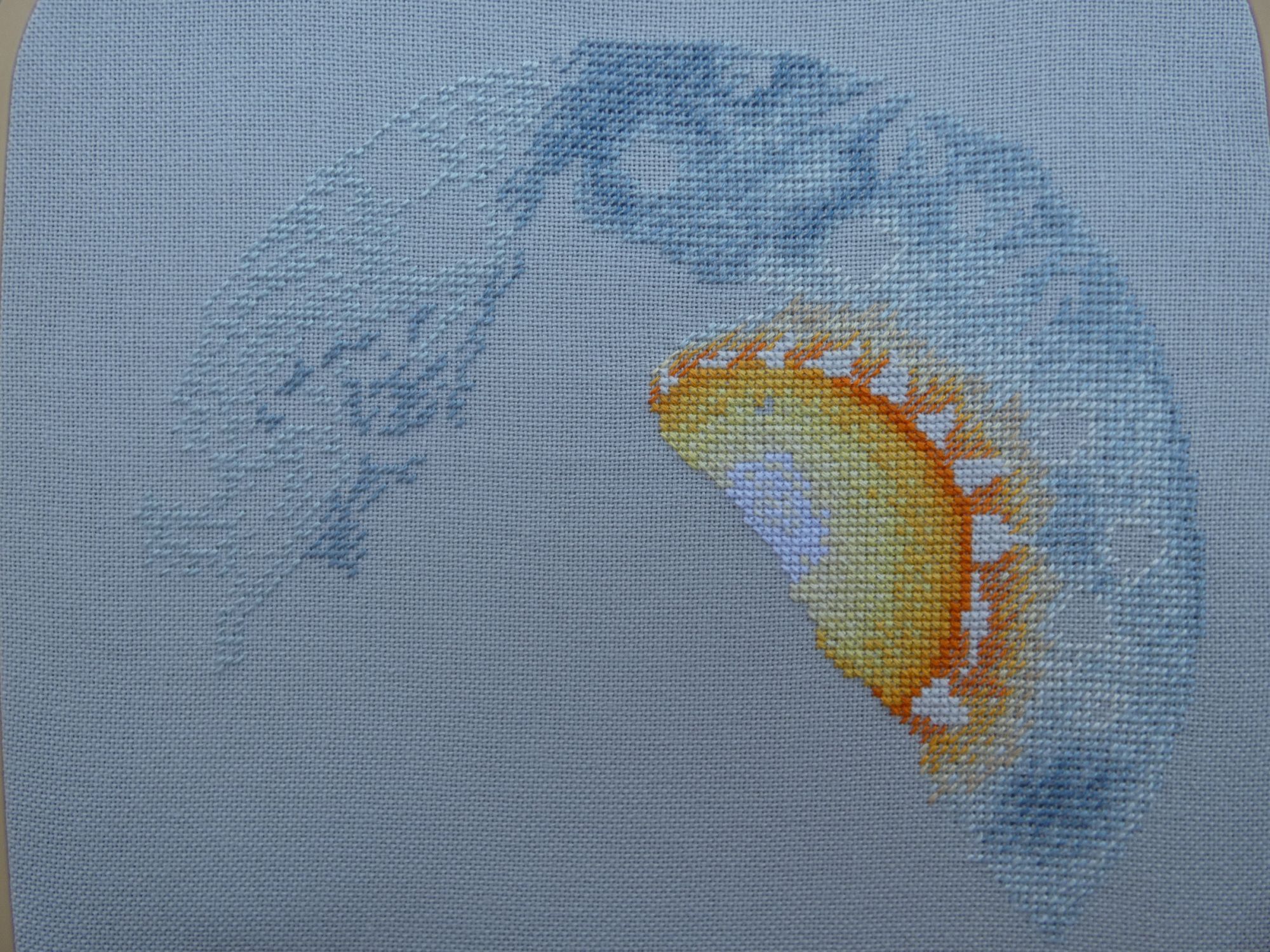 25 июня 2021 Всем привет! Да, сегодня уже не четверг, но что-то четверги нынче неписательные, так что редкий гость в моих отчетах - пятница. )) Начну с рукодельной части. Она не сильно масштабная у меня, а вот прогулки и все такое составляет более весомую часть. Поэтому о них чуть позже и отдельным постом или несколькими. Как пойдет, в общем. Хотя нет, до вышивки немного наших будней. Нижний и окрестности нынче курорт. Градусник показывает 35 в тени и выше на солнце. Хорошо, что мы на даче, и есть верный способ борьбы с жарой. И мир вокруг нас. Мисс Марпл Бабка у меня получается отменная. Я от нее просто кайфую сильно-сильно. Потому что вышивается очень просто. Все еще огромные куски одним цветом, а получается натурально. Она чуть поджала губы и поправила блузочку. Впереди только кофта, и мадам будет готова. Только положительные впечатления. Не к чему придраться. Sweet pumpkin старт и финиш! по схеме Светланы Немирицкой, размер 49x28 крестиков, 13 цветов и бленды. Решили мы тут с Марусей @Marusya1978 совместник замутить небольшой. Так, вышить малявку Немирицкой. Выбор пал на нелетнего, но такого милого, зайчишку с тыквой. Я сразу решила вышивать его на майке, даже купила в Остине аж двух цветов голубую и зеленоватую. Впрочем, довольно быстро определилась, что буду на зеленой шить. Не могу сказать, что процесс был моментальный. Он весьма растянулся по времени, аж на 2 недели. Но не потому, что вышивался долго, просто в руки не брала. Занял он в итоге пару дней, но вообще легко и за один получился бы. Это самый легкий процесс, что я вышивала из Светиных схем. Здесь и крестики несложные, и бэк не особо страшный. Там, где просыпается солнце Был у меня и еще один процесс в работе. Прыгнула в руки птичка, говорит: "Пора меня дошивать". Ну пора, так пора. Идет очень быстро. Фон из сине-серых полукрестиков смотрится волшебно. Напомню картинку, а то не все помнят, что там у меня в процессах. И в конце по традиции наши прекрасные закаты и Луна. Подальше и поближе ))) А теперь о путешествиях monstrochka, Lusha73, TheSunniestDay и 48 других сказали спасибо Поделиться сообщением Ссылка на сообщение