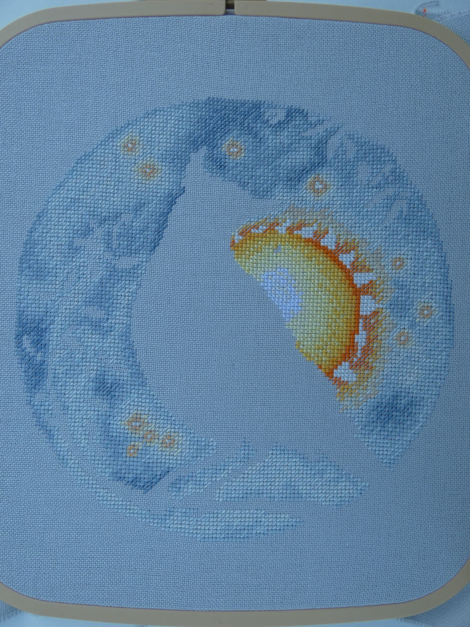 16 сентября 2021 Всем привет! Сегодня начну с прошлого отчета, так сказать. Принесла показать то, что получилось (или скорее не очень) с фотографированием прототипа. Подняла я мужа в субботу в 7.30 утра со словами, что надо прям срочно ехать и делать фотки с вокзалом, пока погода подходит и вообще. Серега рукоделию человек не чуждый, к таким прибабахам относится с пониманием, поэтому мы конечно же поехали. Нам одновременно повезло и нет. У нас по субботам проходит фестиваль "Столица закатов". Около вокзала забабахали огромную сцену, и там происходит действо с песнями плясками и салютом под вечер. И это минус, потому что все загородительные сооружения, да и сама сцена, вечно лезли в кадр. А повезло с тем, что с самого утра всю улицу перекрыли для автомобилей, что создало нам возможность пробовать и тут, и там, и на проезжей части. А еще был офигенный туман, закрывающий весь противоположный берег, что в целом редкость. А сам вокзал сиял на солнышке. Не могу сказать, что прям довольна фотками, ибо в голове все было в несколько раз круче, мы такие мечтатели. А день был яркий и замечательный. А теперь немного о вышивках. Меня еще не отпустили финиши, поэтому на этой неделе тоже только они, зато вот на следующей. Ой спойлер Там, где просыпается солнце финиш! Какое-то время назад я оставила птичку в призрачном состоянии, было так: , А потом чуть больше недели назад мне кааааак стрельнет, вот эту точно надо завершать. Ну надо, так надо. Сначала была голова. И это, скажу я вам, просто боль. Это мелко группки по 2-3-4 крестика. Не люблю такое, активно не люблю. А когда только оно, это просто слезы. Но голова, по счастью, небольшая и закончилась, слава богу. Остальное тело вышивалось разумно. Да были небольшие группы, была рябь, но все достаточно логично. Цвета прекрасны особенно. Была пара моментов, когда я не сильно поняла, зачем тут два сизых, сильно похожих, можно было и одним обойтись, но по большому счету без претензий к туловищу. А голова Ад, тут без вариантов. Ну а потом случился бэк. Он везде счетный, кроме глаза. Шился несложно. Понятно, почему много, это ж перышки, поэтому не раздражал. Да кого я обманываю, меня в целом бэк редко бесит. Белый двойной и тут заменила на Перле 12 от Финки. И после последней черточки я поняла, что птица прям крутая. И все эти головные трудности забыты и наверное стоят того. Снежинка старт и финиш! Волшебная страна FLK-243 Вышила оленя и ощутила, что мне не хватило бисерных малышек. Он настолько приятный тактильно и внешне получился, что сразу пошла в запасы и начала новый процесс. У ВС нет названий, но хочется дать, поэтому эту деревяшку я сразу назвала снежинкой. Какая же она красивая получилась. Здесь всего 4 цвета, геометрический простейший узор, а результат шикарный. Тут все было хорошо, схема отличнейшая: захочешь, не запутаешься. Набору ставлю 5 с плюсами. Летучая мышь финиш! Везде сейчас появляются не только осенние разработки, но связанные с Хэллоуином. Я люблю все эти темы, они меня вдохновляют на подвиги. Иначе и не назовешь внезапное желание дошить игрушку. Все мы помним, что вышивать я очень люблю и умею, а вот с сшивать или шить разговор совсем другой. Руки перемещаются из подмышек к талии и чуть за спину. Но когда меня это останавливало? Правильно - никогда! было так: Малыш легкий в отшиве, заполнять крупные куски одним цветом тут и уметь нече