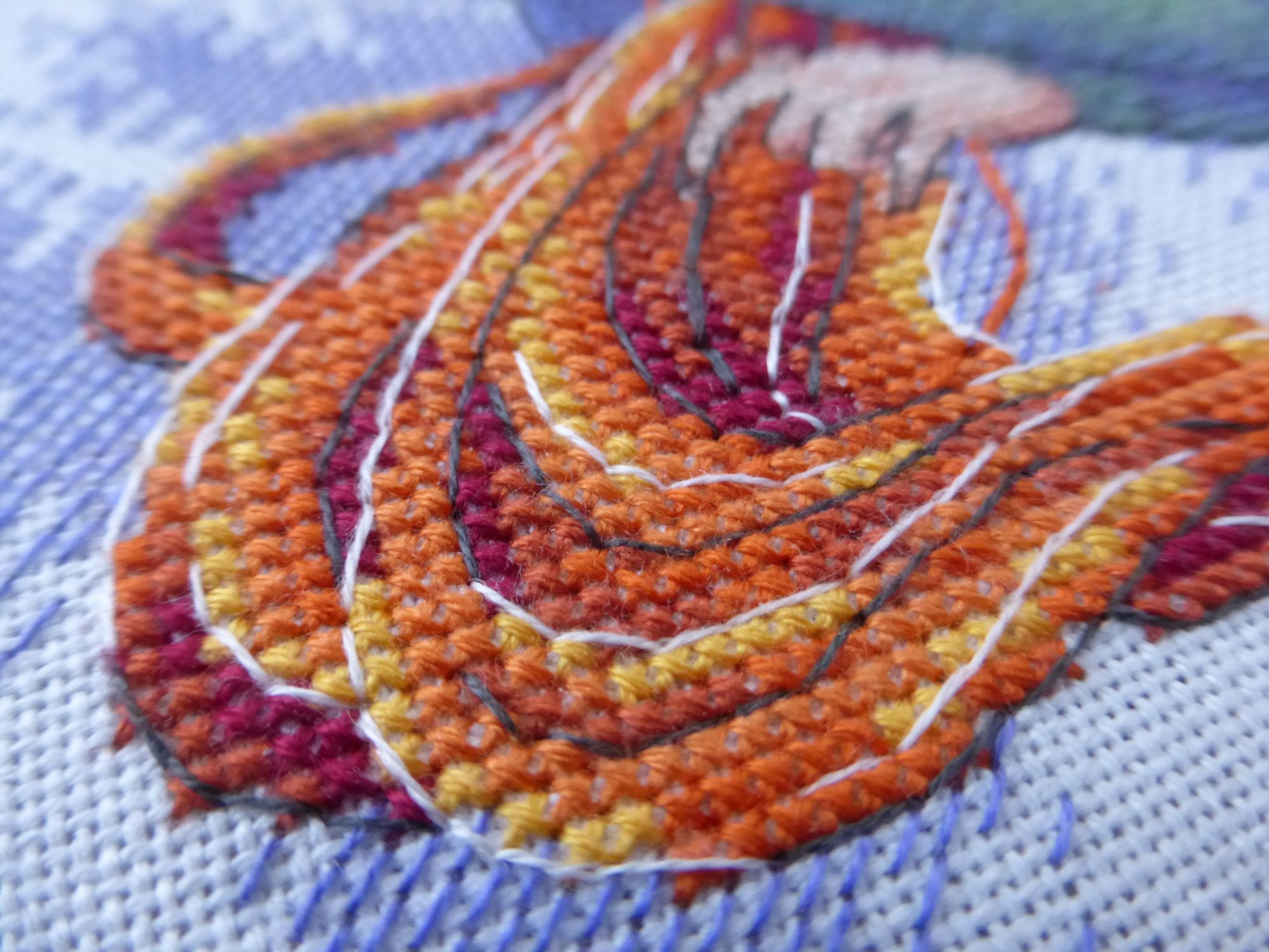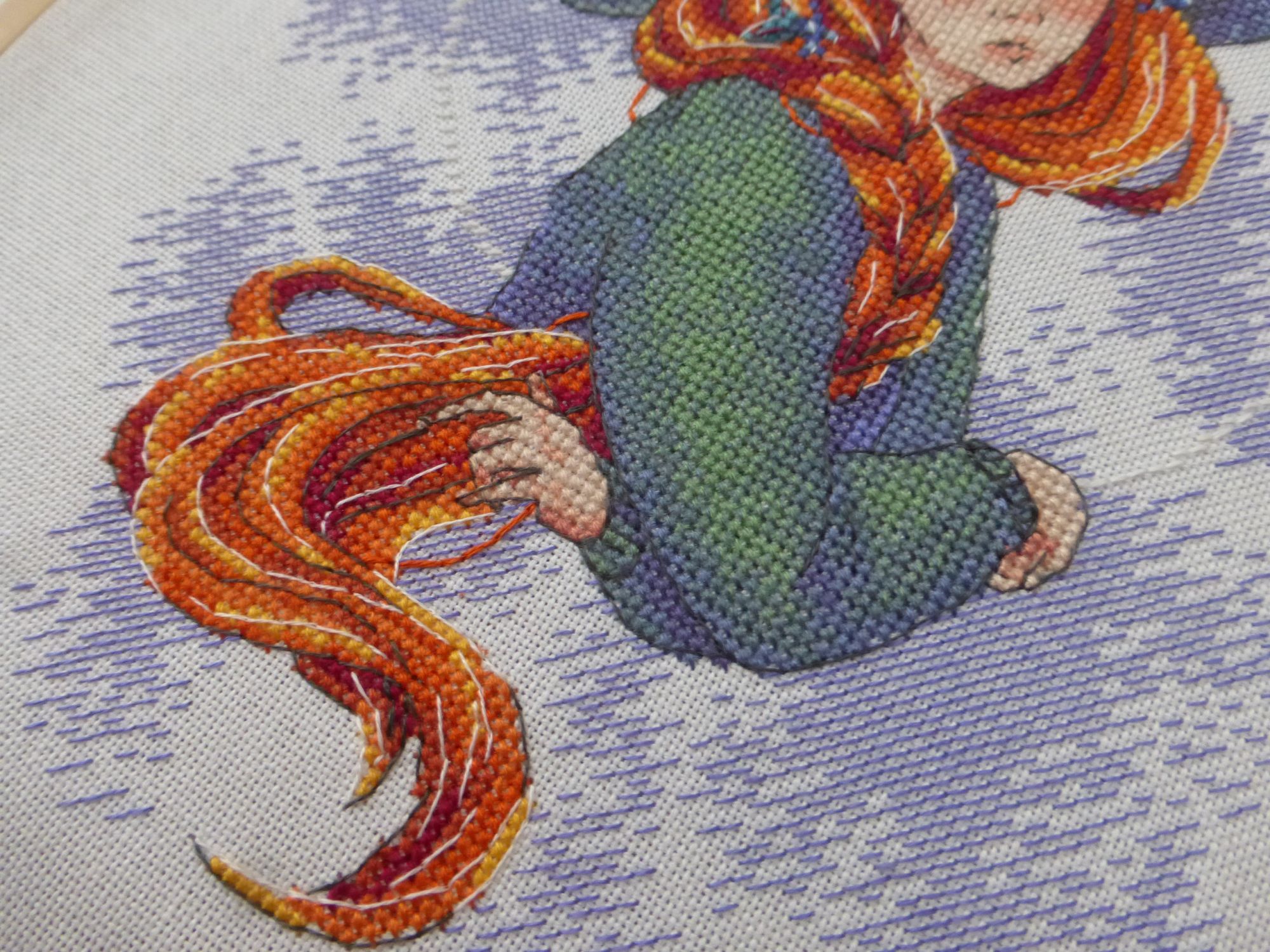9 декабря 2021 Всем привет! Наглая мордочка финиш! Было Я уже писала в прошлом отчете, что нитки дрянь. Вот принесла иллюстрацию этого факта. Нитки в наборе есть двух видов. Сильная скрутка, как голубая здесь, она ощупь как швейная, иногда неприятно "резала" палец при вышивании. Таких в наборе 4 штуки. А второй тип - это невесть что, этакая развалюшка. То ли скручена не до конца, то ли раскрутилась уже. Она не в катышках, но как будто бы потрепанная, крестики получаются отчасти лохматые. Часть из этих ниток рвалась. Особенно серая, которая на фотке. Остальные были чуточку лучше. Шить такими никакого удовольствия. Результат неплохой, мне нравится. Но, когда нет кайфа в процессе по причине не очень хорошей комплектации, то и от финиша его нет. И еще один момент. Место пришивания бисера указано просто точкой в углу клетки, поэтому пришивала, как рука ляжет и по-моему не весь. Тут предполагается гирлянда, которая прицепилась к коту. По ключу бисер пришивается белыми нитками. Ага к голубой-то гирлянде. Я сначала решила прям голубой и пришивать, по ходу бэка, но получился отстой. Все распустила, а бисер пришила мононитью. Так гораздо лучше. Задумчивая финиш! Было Внезапно процесс кончился. Так бывает. Вжууух и готово. Мне здесь очень нравятся волосы. Они очень классные, хоть и интересного сочетания цветов. В рыжем в целом не ждешь желтый или бордовый, но гармонично ж в итоге. Я довольна. Осталось замутить какую-нибудь фотосессию интересную для нее. @Molly21 Маш, "зуб" убрала, думаю что с ним делать. Пусть будет пухлый рот, пока я в раздумьях. Может быть так и останется. А вообще Дашины схемы для меня удобные. Это, конечно, не Ланкевич с ее идеальными в моем понимании схемами, но очень неплохо. Если что-то у нее интересное будет еще, буду брать без проблем. Уже есть Смауг, но он на 111 тыщ крестиков. Я его боюсь, но хочу, потому что в отшиве он великолепен! ))) На этом прощаюсь. Увидимся Lakis, Lucia-del-Umago, Katrin2511 и 47 других сказали спасибо Поделиться сообщением Ссылка на сообщение
