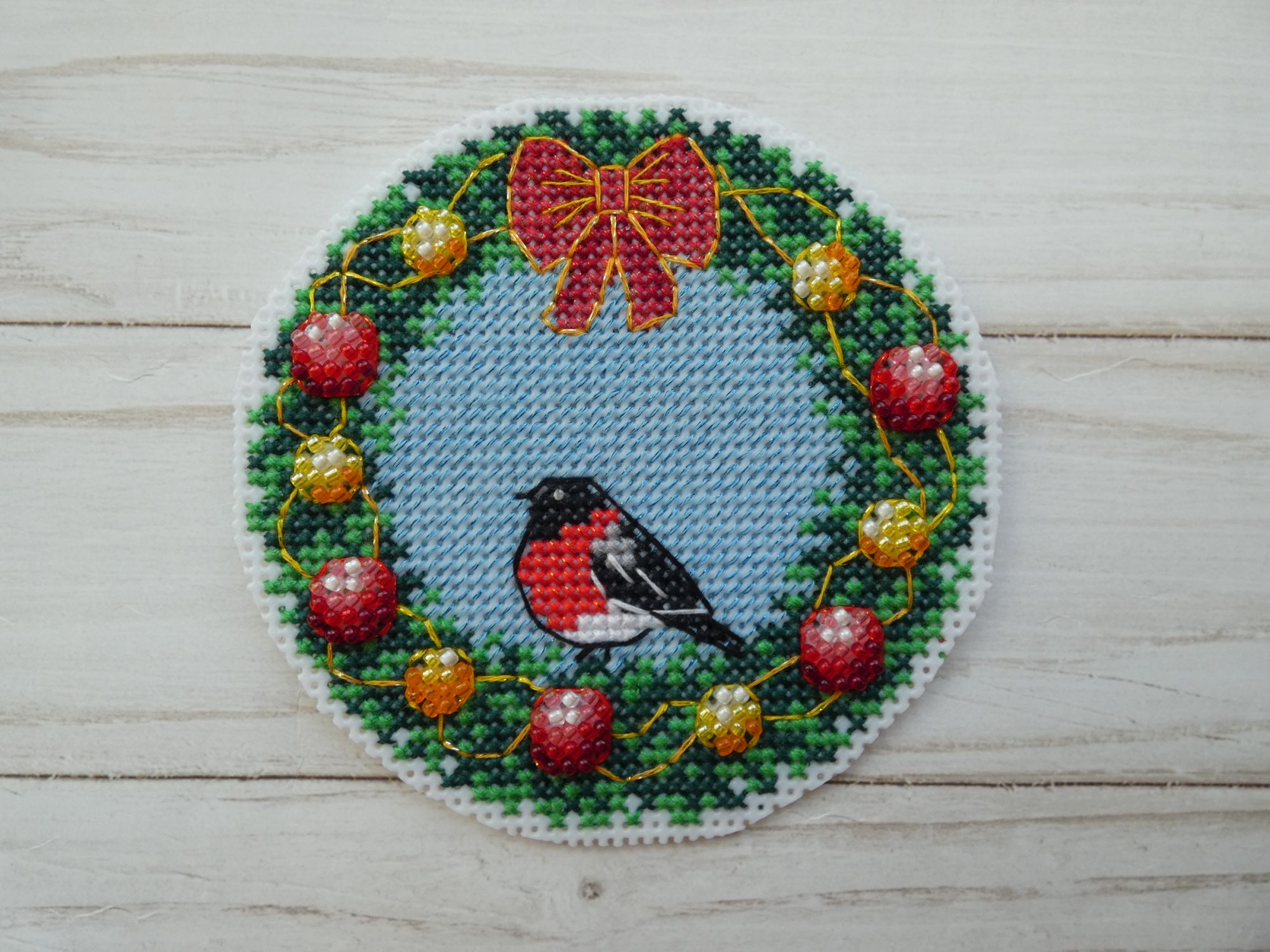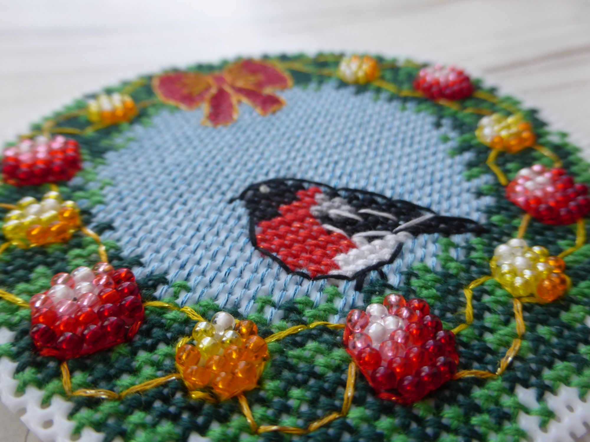 17 марта 2022 Всем привет! Долго не было настроения и желания что-то выкладывать, но вышивка из моей жизни не пропала, поэтому вот мой небольшой отчет. Rabbite Ride старт и финиш! Mill Hill MH18-4106 Люблю маленький МХ нежной любовью. Жаль, что совсем немного дизайнов попадают в самое сердце. Этот кролик один из тех, кто влюбил в себя с первых секунд. И пусть я увидела его в чьем-то видосе, с темной съемкой краем глаза, но была уверена, что он прекрасен. И он именно такой. Во всех отношениях чудесный! Обожаю его всем сердцем своего малыша-дурашку. Вышивался легко. Шахматка бисера и ниток в наборах МХ редко оставляет меня равнодушной. Светлый и радостный дизайн. Мама занята! старт и финиш! по схеме Елены Рощупкиной, размер 114х99 крестиков, 25 цветов Этот дизайн мне принесли показать примерно все, кто хоть немного знаком с моими предпочтениями в вышивке. Я еще сопротивлялась какое-то время, но потом решила, а чего это я? И купила. Эта история не обо мне, а точнее не совсем обо мне. Я никогда не попадала в такую ситуацию. Дети не ломились, я могла в любом месте дома сказать, что хочу побыть сама с собой, и они шли мне на встречу в большей части случаев. Это скорее о моих мальчишках. Степка последнее время полюбил закрываться в туалете на долгое время. Даже получил "партийную" кличку - Туалетный утенок. Активный. А мелкого это жутко бесит. И вот эти три мелких пчеленка в моем случае - три стадии бешенства Левки, когда он пытается прорваться в туалет. А точнее достать оттуда брата. Шилось скучно. Очень скучно. Прямо максимально. Не было полета и хихиканья. Ну разве что только, когда малышей шила. Вот они замечательные. Бэк странный, но наверное логически объяснимый. И непривычные цвета, точнее их сочетание, взято для желтых полосок. Но это скорее не минус, а плюс. Елочная игрушка. Веночек старт и финиш! Овен 1362 Неожиданный для меня процесс правда? Но так получилось, что я его выиграла в новогодней лотерее на встрече нижегородских вышивальщиц. В натуральном виде меня он никак не вдохновлял. А потом что-то на меня накатило, и вышло то что вышло. Из оригинального набора здесь по схеме вышита зелень венка и снегирь, остальное импровизация. Шары сразу в моей голове были бисерными. Ну а как иначе - они же должны быть выпуклыми. А кто лучше бисера даст объем?! Бисер подбирала из закромов, искала наиболее близкий к цвету ниток в наборе. И нашла. Дальше мне не нравился серый фон крестом. Решила сделать его полукрестом, чтобы были разные планы и немного облегчить конструкцию. Потом поменяла цвет на голубой, он более праздничный. Ага праздничный, значит дмс Этуаль с блеском будет отлично смотреться. Этуаль... А почему бы не добавить его примерно везде тогда. Новый год же. Гулять так гулять. Заменила бэк на него тоже. Один цвет идеально совпал с предложенным в ПНК. Последним под раздачу попал бант. Унылый и серый с длинными вялыми концами превратился в яркий и озорной бордовый. Цвета опять же подбирались, исходя из цветов в наборе, чтобы была гармония. Результатом довольна. Не знаю, когда будет следующий отчет. Все сложно. И очень хочется обнять @Татуся и Оксану @росомашка . Juliay, Isinka, _Katrin_ и 60 других сказали спасибо Поделиться сообщением Ссылка на сообщение