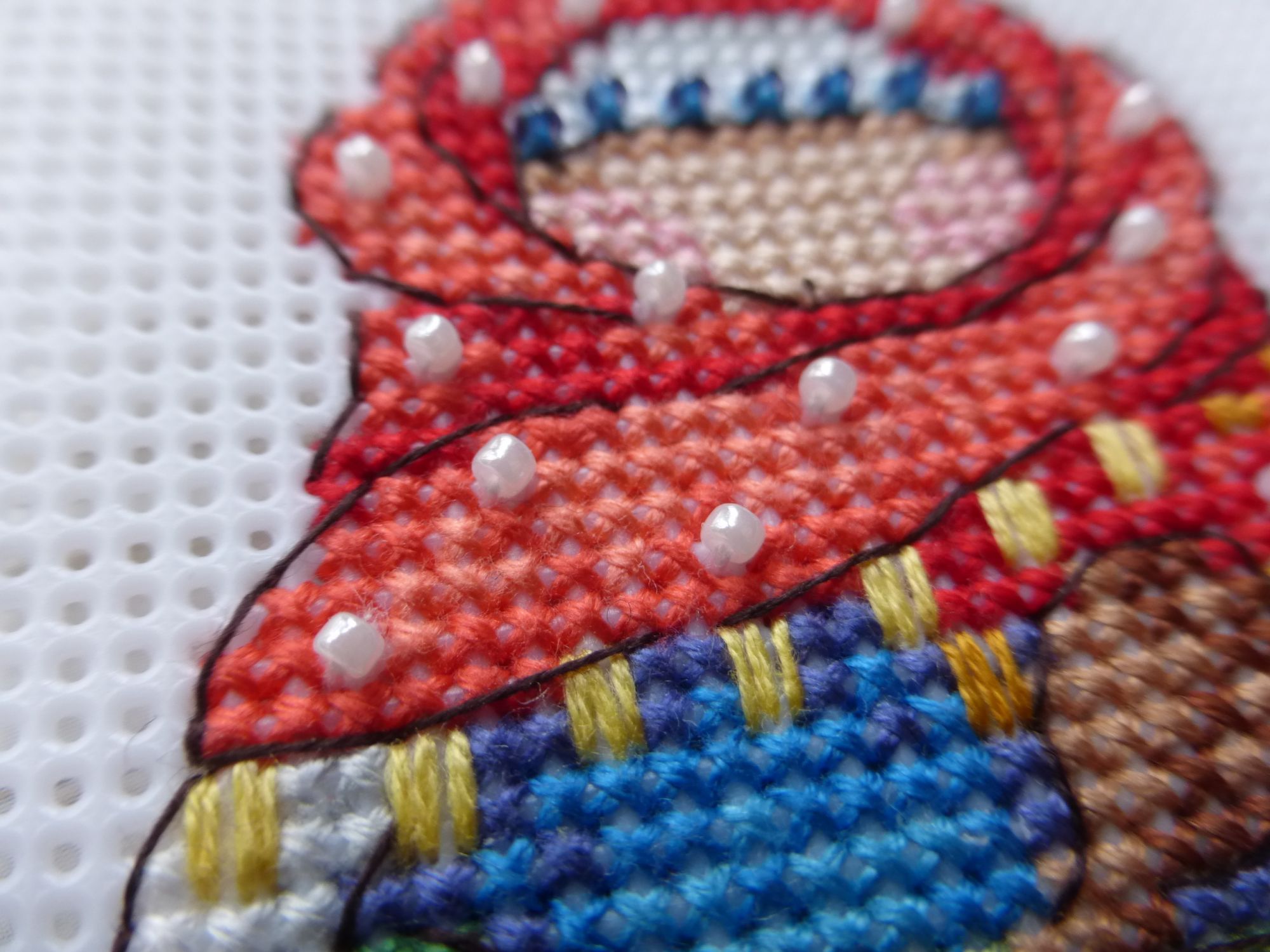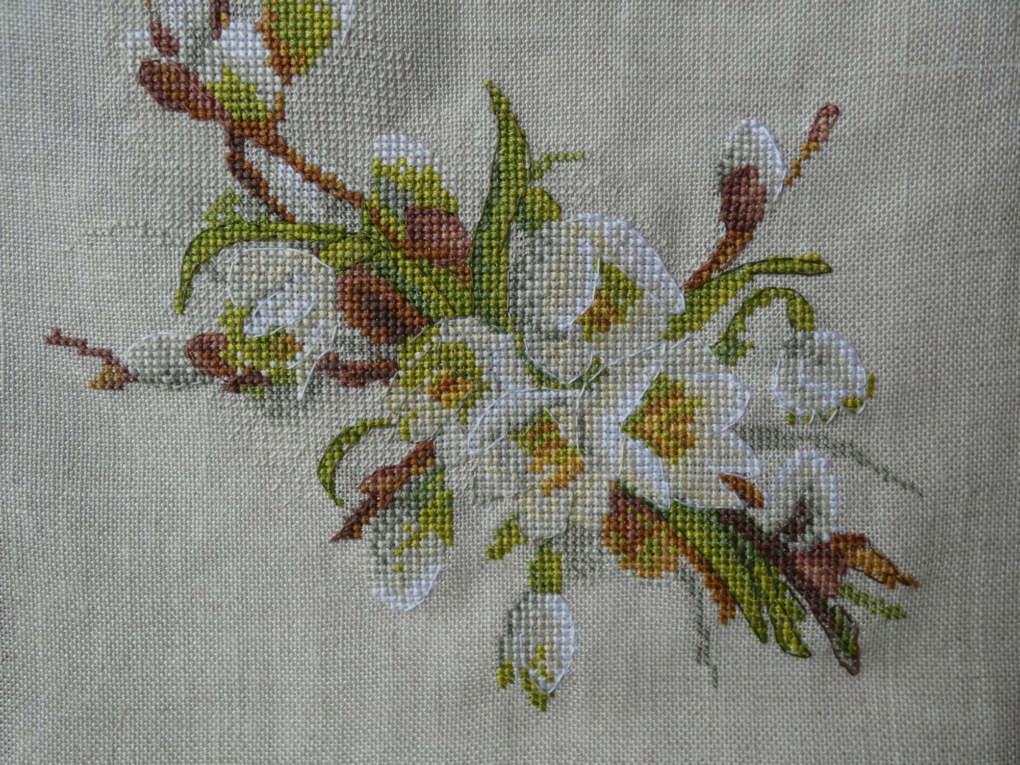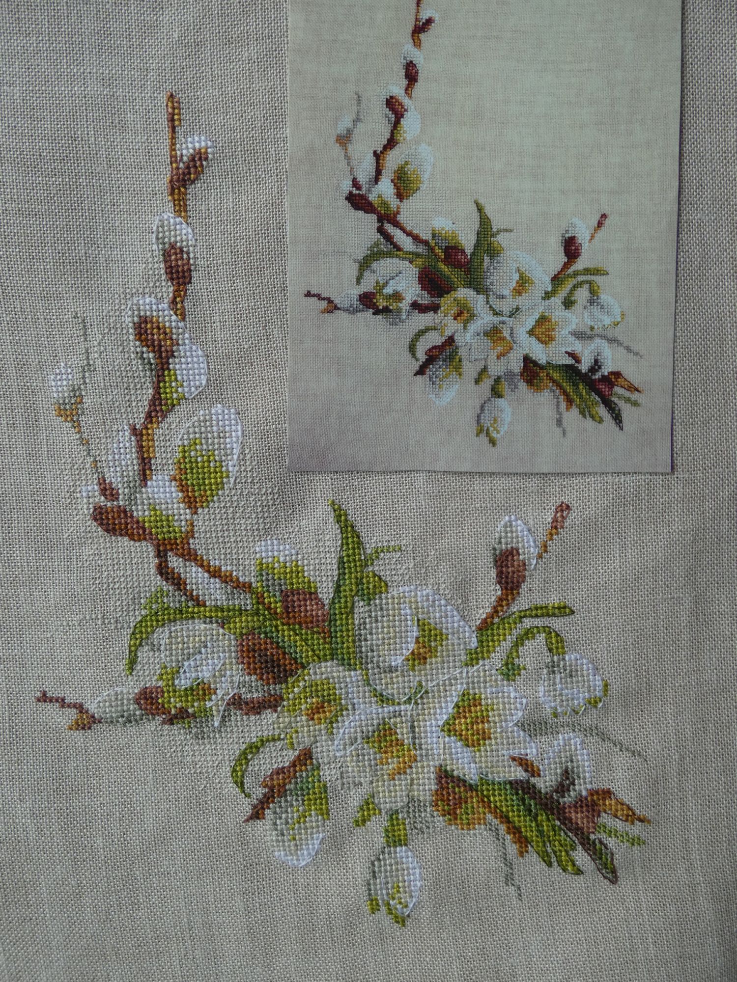 28 апреля 2022 Всем привет! На той неделе не получилось отчитаться. Работа поглотила все свободное и несвободное время. А после нее сил хватало только уйти "в домик" и тихонько вышивать в уголке. В связи с этим у меня аж три финиша. Но о них чуть ниже, а пока немного НН и цветочков. Воробьишка финиш! Две недели назад он только приподнял голову. А потом я не могла оторваться. Он просто летел. Мне безумно понравился подбор цветов для этого парня и вообще весь его деловой и нахохленный вид. Он вырос буквально на глазах за 5 дней. Несмотря на общий позитив, у меня все-таки есть и вопросы к дизайнеру. Первый - это, на мой взгляд, чересчур частая смена нитки в его спичечных ножках. Учитывая бэк, это сомнительное решение оставить столько цветов и блендов. По 2-3 крестика - ну такое себе. Второй - это значки для Саги. Да-да, бывает и для программы неудачный выбор. Это прям классика из наборов, когда значок 8 шьется ниткой под номером 7. Ненавижу такое, конечно, же накосячила и пришлось распарывать. Хорошо, что немного. Но все это такая ерунда, когда смотришь на него. Он великолепен, прекрасен, харизматичен. А дизайнер определенно заслуживает плюсов и ставится на заметку, как годный. ПтЫца вывела погулять. И он не только красив, но и фотогеничен. Даже теряюсь, где ж ему лучше: среди "травы" или на фоне офигенного кирпича. Цветение весны финиш! Я хотела его закончить к маю, я это сделала. Было Потихоньку, когда планшет садился, я брала набор от МИ и штопала. Шло несложно, даже бэк редко где перекрывал значки. Но не могу сказать, что это была любовь, как со многими моими процессами. Мне категорически не нравится, как вольно Марья ведет себя с цветопередачей на обложке. Контрастнее, насыщеннее, а иногда и вообще по ощущениям другой цвет. Но они себя классно обезопасили: везде на наборе крупно написано, что фирма может менять цвета, если не будет ущерба для цветового решения. С точки зрения МИ, но ведь должно устраивать прежде всего нас. И это меня бесконечно удивляет. Мы же вышивальщицы визуалы и естественно ориентируемся на обложку. Зачастую обложка хуже вышивки, но с МИ бывает и по-другому. Мне в этом дизайне понравился именно контраст темных веточек вербы с очень светлыми цветами. А по факту вышло не очень. Я недовольна, хоть девочки и говорят, что все отлично. И даже лучше, чем на картинке. Хочу дать ей еще один шанс, устрою ей фотосет в деревне на майские, как и хотела изначально. Потому что эта картинка, как с дороги на речку, когда только-только начинает цвести ива и распускается ветреница. Из ощутимых плюсов - остатки приличные, много ниток осталось. Из ощутимых минусов, помимо вкусовщины, о которой я плакалась выше, это фон в 1 нить полукрестом в цвет основы. Практически фишка МИ. И все бы ничего, но нитка рвалась, а на таком полукресте это особенно бесяче. Ангел музыки старт и финиш! по схеме Евгении Колесниковой, размеры в собранном виде - 11,5*9 см Я большой поклонник этих ангелочков. После первого шахматного, я сразу купила несколько штучек и буду вышивать их в течение этого года. Весной мой взор пал на этого. Степка как раз заканчивает музыкалку. Я решила таким образом отметить это, не побоюсь пафоса, эпохальное событие. Шился максимально легко, проработка отличная. Возможно мне было легко еще и потому, что я шью их обычно тоненькими и маленькими иголочками Пони 28 номера. Они лег