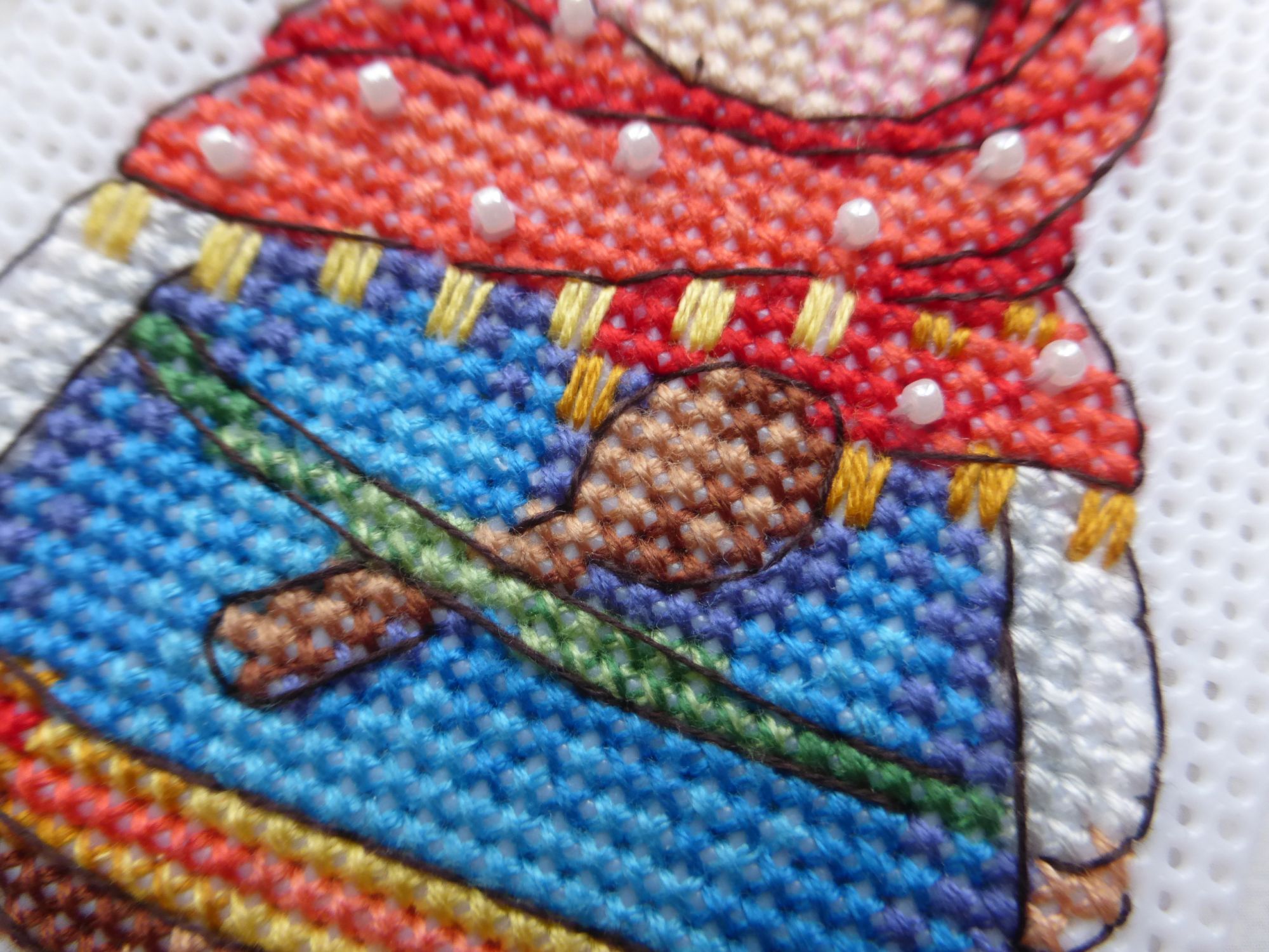 5 мая 2022 Всем привет! Холодно и даже снежок идет, например сейчас. Стараемся выходить из дома, когда солнечно. Получаем кучу эмоций и радости. Мир вокруг нас прекрасен. Движение на озеленение гаечек продолжается. Вектор настроения финишного не изменился. Меня это бесконечно удивляет. Надо что-нибудь небольшое стартануть для поддержания баланса моей темы. Мелодия ночного города финиш! Старт апреля 2020 года. Я очень его хотела. Влюбилась сразу, как только он был нарисован. Не видела больше ни на чем, кроме серого Белфаста. Потому что сумерки, потому что дождь. Тогда было так. Надо сказать, что это непростой дизайн. Особенно в части, где город. Казалось бы, что может быть сложного в полукресте? Однако была и частая смена нити, и бленды, которые не так-то просто закрепить в отличие от солида. И очень, очень много цветов. В некоторых местах я даже не понимала, зачем здесь два цвета по 3 полукрестика, когда их и не различить особенно. А самое легкое место - это бэк. Ну вот серьезно. Он счетный, идешь себе тихонечко и домики рисуешь. Ничего сложного, а вот полукрестики бррр. Итог хорош и атмосферен. Хотела бы я что-то изменить? Наверное нет. Мне бесконечно нравится этот стиль в разработках и сама идея в акварелях. Я рада, что у меня есть еще 2 дизайна из этой серии. И когда-нибудь я за них точно возьмусь. Буду лишь надеяться, что в них меньше извращений, так как они были нарисованы значительно позже моего саксофона. Русские обереги. Магниты В этом наборе я осилила вторую обережку. Всего-то год прошел с первой куколки. Вышиваю преимущественно на рукодельных встречах. Но вот ведь парадокс - редко когда это удается сделать. Тем не менее она вышита. И само собой не без извращений. Что это будет в итоге, зачастую и сама не знаю, когда начинаю вышивать. Точно была уверена только в белых горошках на платке, уже потом к нему присоединился синий бисер. И как-то совсем внезапно приняла решение сделать бахрому. Сначала думала про настоящую с висюльками, даже попробовала, но не понравилось. В итоге получилось что-то бэковое. Интересно было прокалывать пластик в между клетками, не очень это люблю делать. А здесь и пластик какой-то мягкий особенно, что усложняло ситуацию. Но вот она готова, и обережка классная. Sleepy Monday (Сонный понедельник) Старт апреля 2021 года. Мой маленький малыш, мой Левка по утрам. Тогда вышила самое-самое. Трудно было приступить к фону, ведь зайчик уже был в наличии. Как приступила - не оторвать. По факту вышивается небольшим количеством цветов и рисунок у подушек неявный, но как же мне нравится результат и процесс. Вышивается очень легко, логичными большими кусками, нитку меняю нечасто, что для Светиных схем не очень характерно. Осталось совсем чуть-чуть, чтобы еще одна гаечка стала зеленой. Этот милейший зайка явный претендент. Если ничего не отвлечет. На этом прощаюсь и хочу весны. Теплой и солнечной. Киньте в нас ей кто-нибудь из южан пожалуйста. Гало4ка, nata2017, Людмила Мизина и 47 других сказали спасибо Поделиться сообщением Ссылка на сообщение