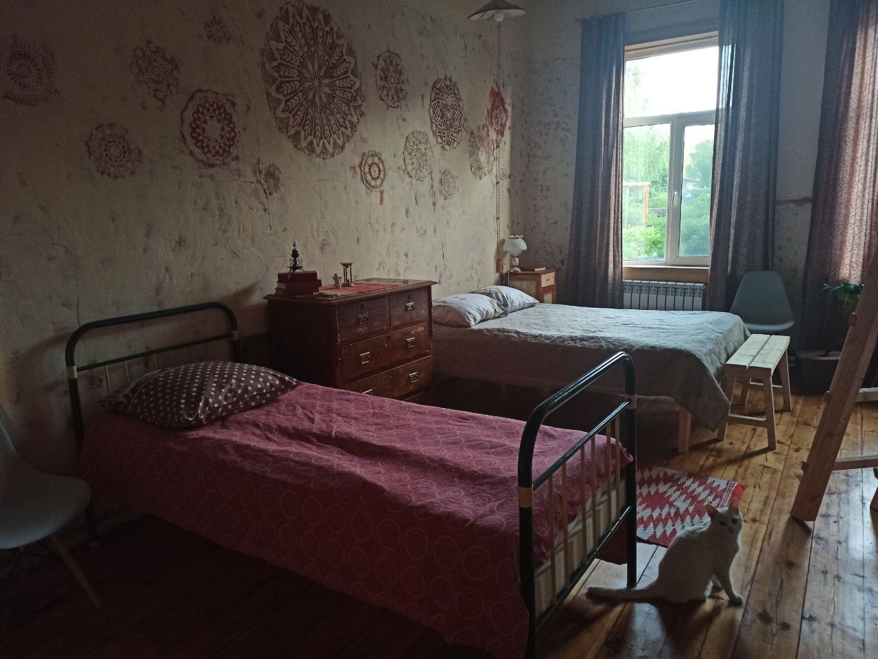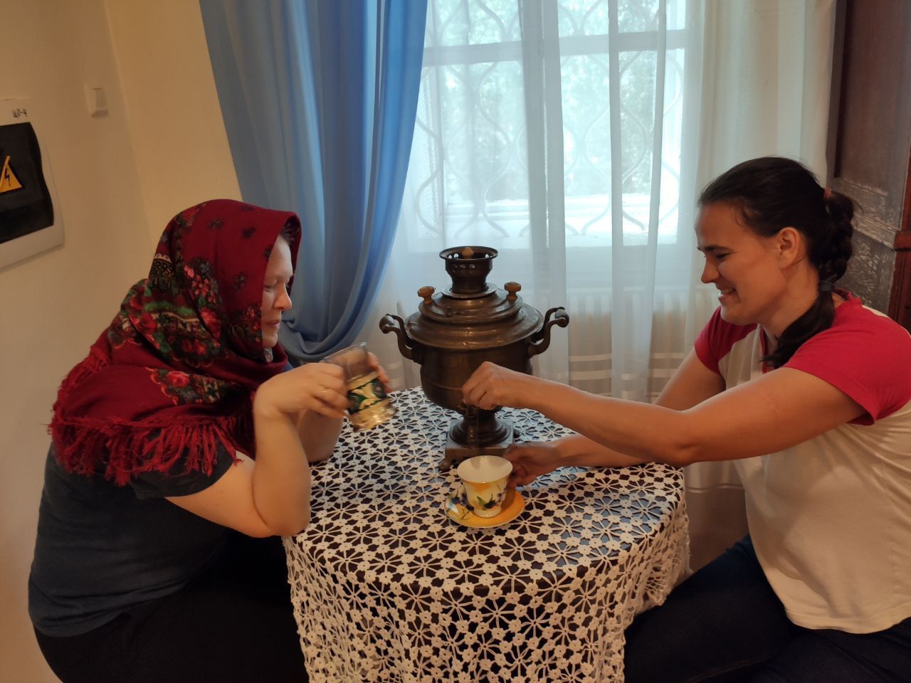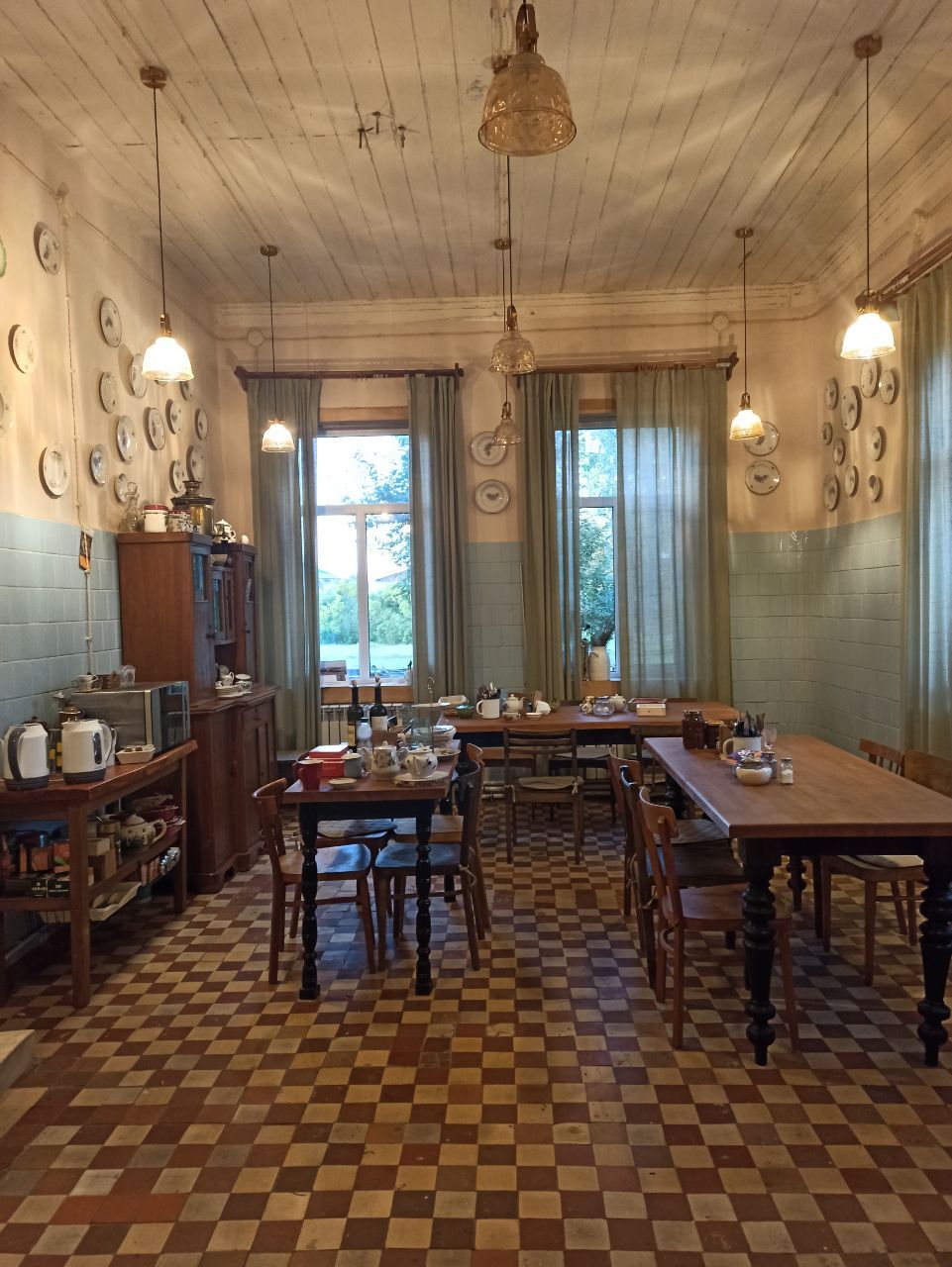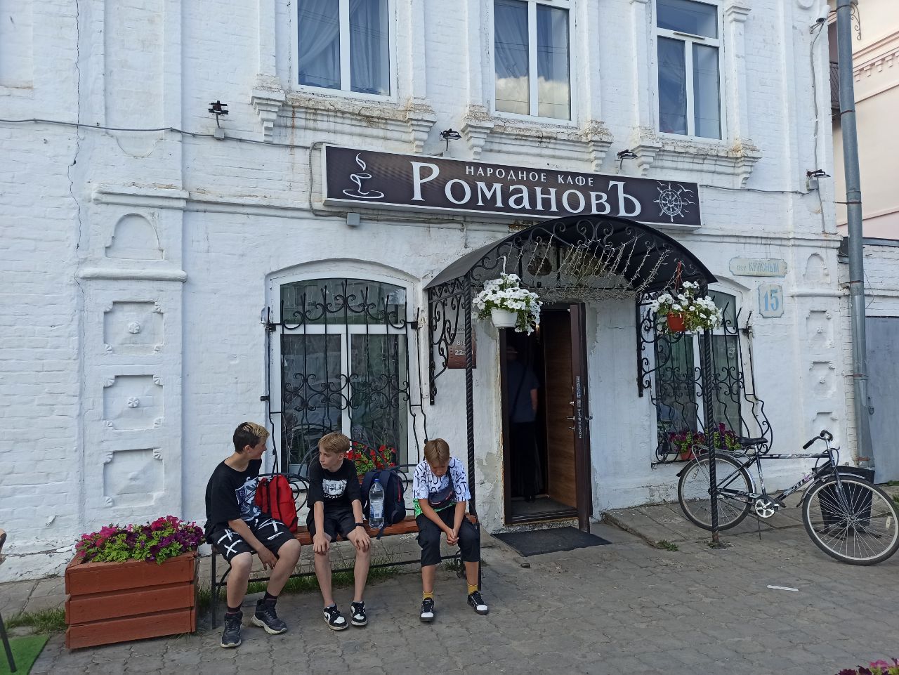 8 августа 2022 Сольвычегодск Паромная переправа до Сольвычегодска живо мне напомнила нашу отмель у Шуховской башни на Оке, даже железка какая-то из деревьев торчала. У меня вообще на протяжении путешествия были различной тяжести флэшбэки из прошлого. )))) Вообще здесь так интересно устроены переправы, что те разы, когда мы переправлялись через реки, все машины магическим образом утрамбовывались на паром. Ну кроме той, кто вдруг решила переправится в самый последний момент. Плывешь, а навстречу тебе идеальная картина дорожного тупика и прекрасной жизни. Тепло, закатное солнце освещает пристань, и дети прыгают в Вычегду с конструкций для весенней высокой переправы. Остановились мы в Сольвычегодске на 2 дня. Нужна была дневка, чтобы чуток перевести дух и настроиться на следующие забеги. Местом дислокации был выбран во всех смыслах чудесный гостевой дом. Как-то несколько лет назад замечательная девушка Екатерина решила в городке своего детства развивать туризм. И ей это на 100% удалось. За основу взяты здание старой земской больницы, гостевой дом и бараки. И это классное сочетание старины и новодела. Она в содружестве с деревянных дел мастером создала здесь шикарную и гостеприимную атмосферу. Просто посмотрите на эти интерьеры и детали, благодаря которым и возникает то самое впечатление старинного уюта. Все подобрано просто идеально. Столовая находится в бывшем операционном кабине. Большое количество кафеля наводило на мысли, что это не зря, а чтобы легко было что-то отмывать. Собственно предположение подтвердилось. Очень понравилось с какой любовью в углах сделана плитка, повторяя закругленные стены. Они таким образом сделаны для тепла, так как угол закругленный хуже промерзает. Ели непривычную для меня еду. Ребята вечно потешаются надо мной, когда я пробую что-то новое для себя и просто ем в незнакомом месте. С большой осторожностью. И да, мне не стыдно, что щавелевый суп или фарш в листах крапивы я впервые попробовала вот только что. Не очень впечатлило. Еда как еда. И еще варенье из ревеня. Оно было потрясающим. И еще немножечко о лицах. Когда едешь куда-то с подружкой, которая любить фотографировать, то бэкстейджа практически невозможно избежать. Эти фотки называются "с каким лицом я готовлюсь вышивать новый процесс / как мне кажется, с каким лицом я это делаю". Когда мы собирались ехать в Архангельскую область, то прогноз погоды обещал нам разумные для жизни 20-22 градуса. Но безбожно врал. ))) В Сольвычегодске было 28 градусов. Жара удушала. Гуляли в основном после ее закрытия по вечерам, любуясь окрестностями. Вот стоят деревенские домики, а за поворотом Введенский монастырь в стиле "строгановского барокко", а следом купеческие каменные домики. На улицах народу совсем немного. В основном отдыхающие в санатории и вездесущая молодежь, обрывки разговоров которой поднимали настроение. Работник местного магазина, бравый кассир значительного размера, который берет деньги за фотографии с ним. По крайней мере так написано на его коробке. И дом, который особенно меня впечатлил. Вот совсем такое не ожидаешь увидеть. Практически дворец в стиле классицизма с историей. Итак, дом купцов Пьянковых. Построен в начале 19 века, в 1810 году купчихой Агриппиной Сергеевной для своих старших сыновей. Получается огромная по меркам города усадьба с портиком с 6 к