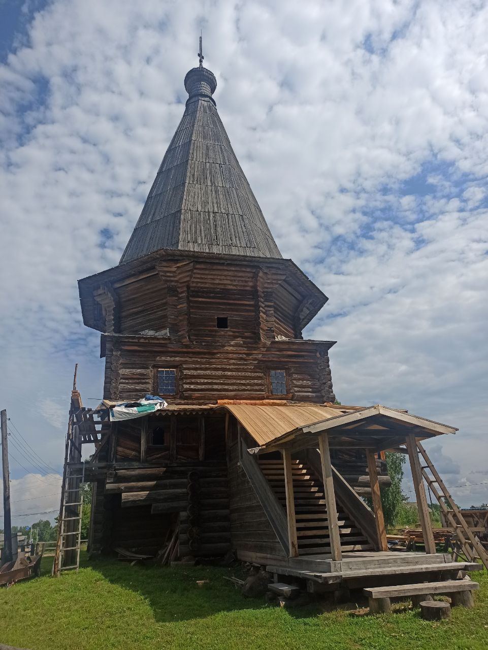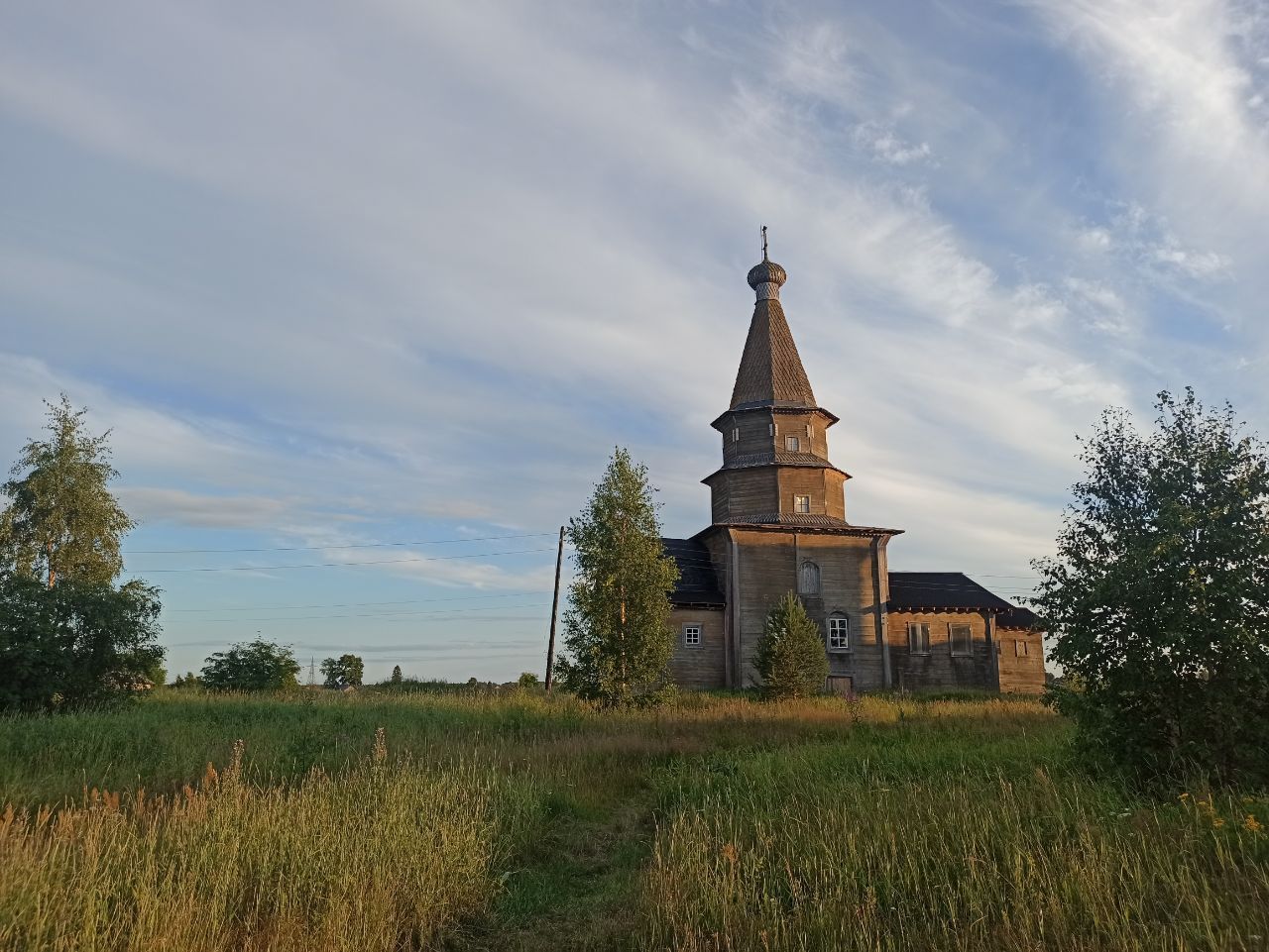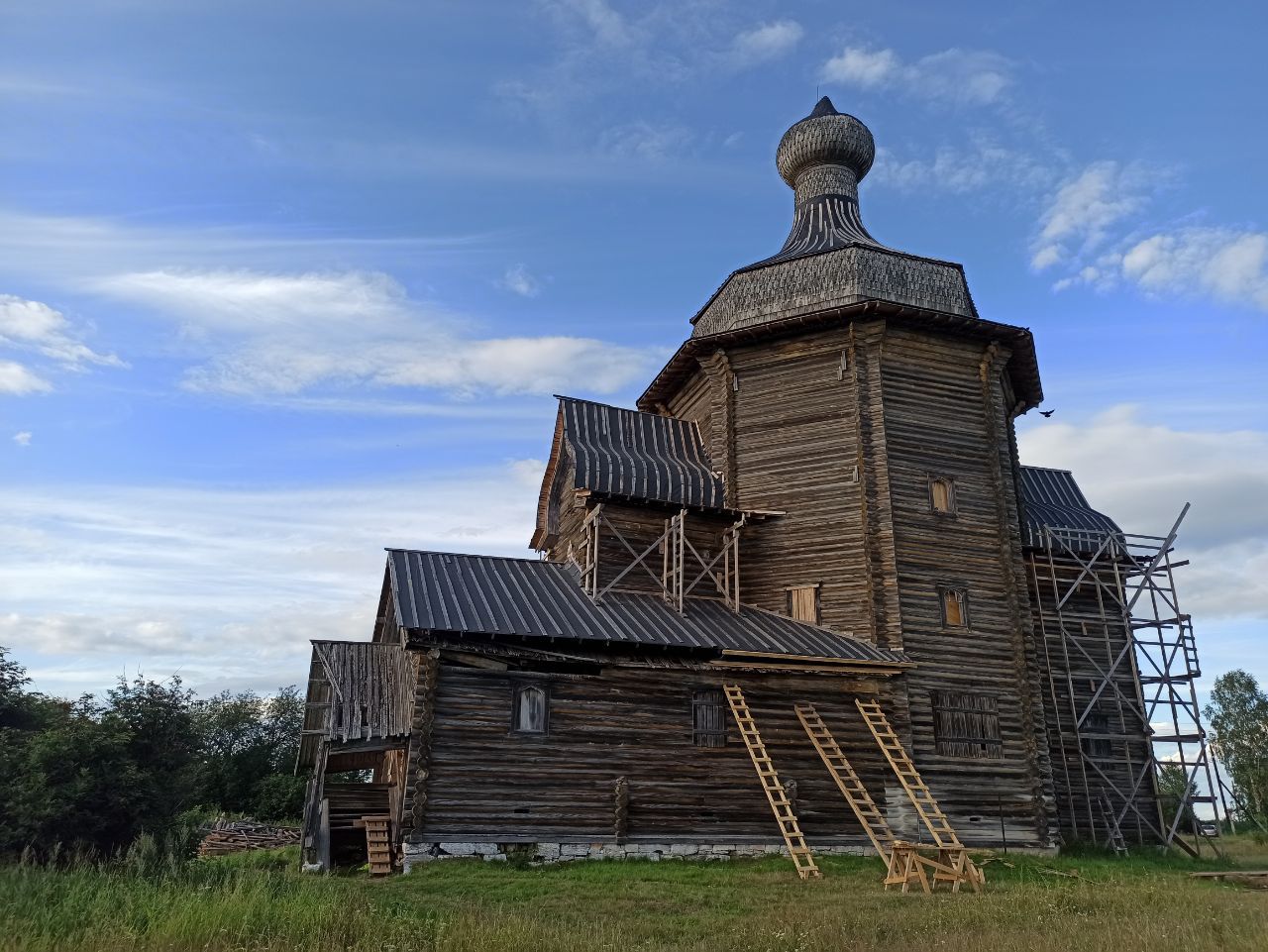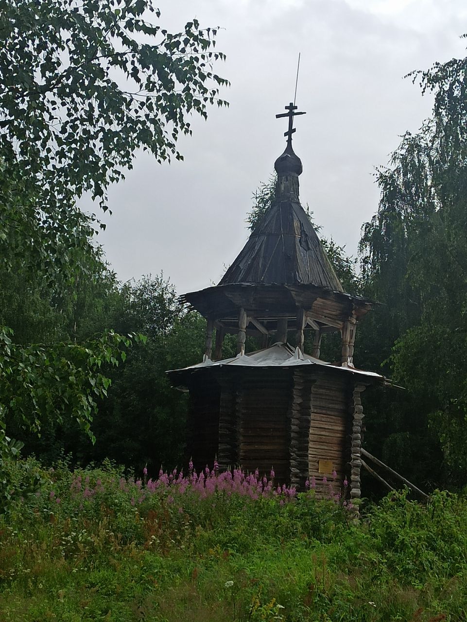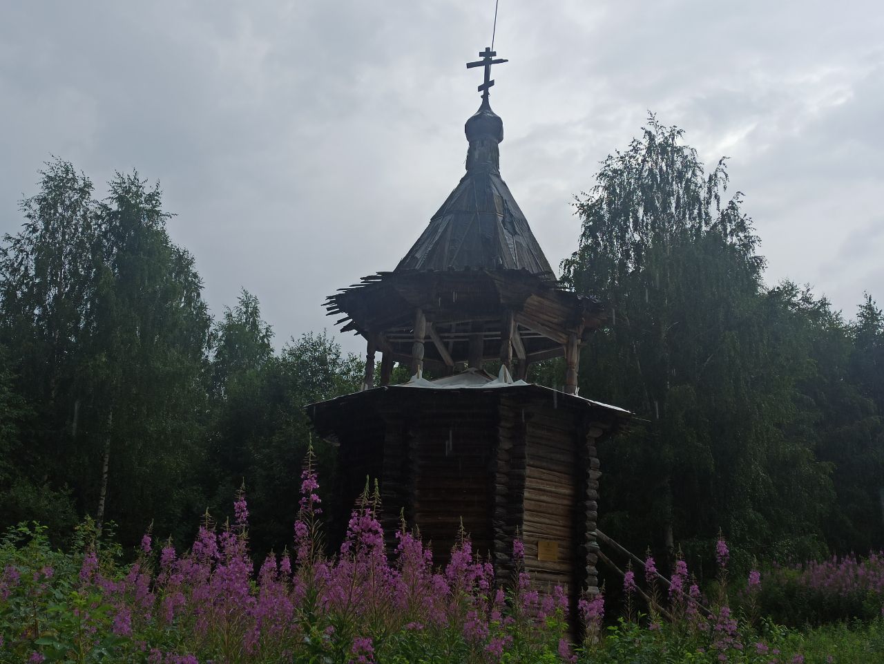 10 августа 2022 Утром выехали из Сольвычегодска, и день обещал быть весьма приятным в плане различных деревянных церквушек и не только. Тогда мы еще не знали, что Север припас для нас приятные сюрпризы и бонусы. Мчим по лесной дороге, а вокруг офигенская природа. Как в таком лесу не остановиться? Правильно - никак! Мох хрустит под ногами, деревья обросли бородками и маленькие кустики с розовыми мелкими цветочками. Вот так я впервые увидела вереск в его среде обитания. Нагулялись и едем дальше, вокруг так живописно. Оля резко: “Стой, там быки, хочу Аське показать”. Где быки? Какие быки? Вроде никаких стад вокруг не наблюдается. А речь была о речных ледоколах. Их я тоже никогда не видела до. Вообще в этой поездке было много всего такого интересненького, что в первый раз. Глядишь на эти сооружения и мирную небольшую речку внизу. Ну и никак не представляется, что она настолько бурная по весне, что может снести мост к чертям, если не предпринять меры и не поставить такие конструкции. Даже самое прикольное место легко испоганят следы людской жизнедеятельности. Верхняя Уфтюга Первая официальная точка пути - село Верхняя Уфтюга. На слух после Великого Устюга воспринимается, как название с проблемами логопедического толка в шипящих. Приехали мы смотреть прекрасную шатровую деревянную церковь Дмитрия Солунского от 1784 года. Восьмерик на четверике, высотой около 45 метров. Считается самой высокой на данный момент из церквей подобного типа. Ранее такой была сгоревшая в 2018 году Успенская в карельской Кондопоге. Подъезжаем, около церкви две девушки с инструментами наперевес сидят у крылечка. Спросили, зачем мы приехали и рассказали, что занимаются ее восстановлением в свободное время. Разрешили зайти внутрь. Внутри очень спокойно, светло, красиво и аскетично. Оля спросила про местный музей. Одна из девушек вызвалась позвонить хранителю музея, и когда та не ответила, предложила проводить нас до ее дома. Бодро запрыгнула на мотоцикл и рукой позвала следовать за собой. Стоит отметить, что приехали мы в Уфтюгу в воскресенье. Законный день отдыха. Тем не менее прекрасная Валентина Владимировна не отказала нам в гостеприимстве и провела занимательную экскурсию. И при этом совсем бесплатно, еще и брать не хотела денег после. Еле уговорили. Музей делит дом с садиком, поэтому вход весьма забавный. Он никой не краеведческий по документам, а просто школьный. И для школьного музея, я вам скажу, - он великолепен. Очень много разных экспонатов и несколько залов. В один из них даже перенесли интерьер целой избы вместе со старинными росписями и утварью. Рассказ плавно перетекал от музейной атрибутики к жизненным ситуациям. Так мы узнали, что одна из девочек у церкви, местная жительница, которая закончила здесь школу с золотой медалью, потом Политех уже не тут, вернулась домой и на свои + пожертвования восстанавливает как может. Или, что Валентину Владимировну укусила гадюка, когда она собирала иван-чай. Случился целый квест с поиском вакцины. Ее по воздуху доставили аж из Архангельска, так как ближе не было. И вообще изготовление вакцины считается не целесообразным, в связи с непростым производством и спец хранением на число реальных укусов. Узнали несколько новых для себя слов. Покатуха - миска для теста. Грядки - место под потолком, куда "высаживали" хлеб в кухонном отсе