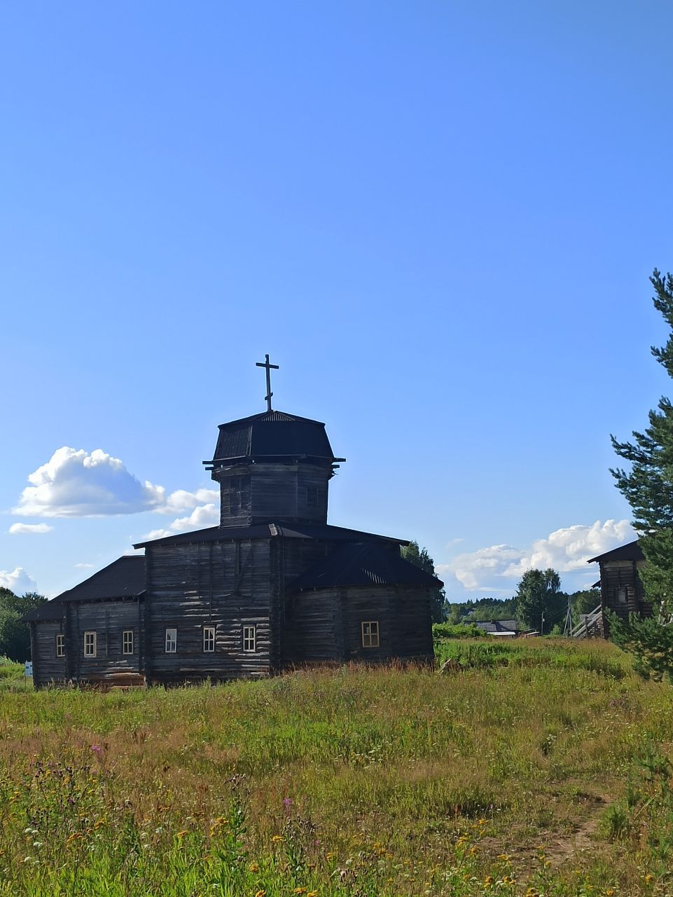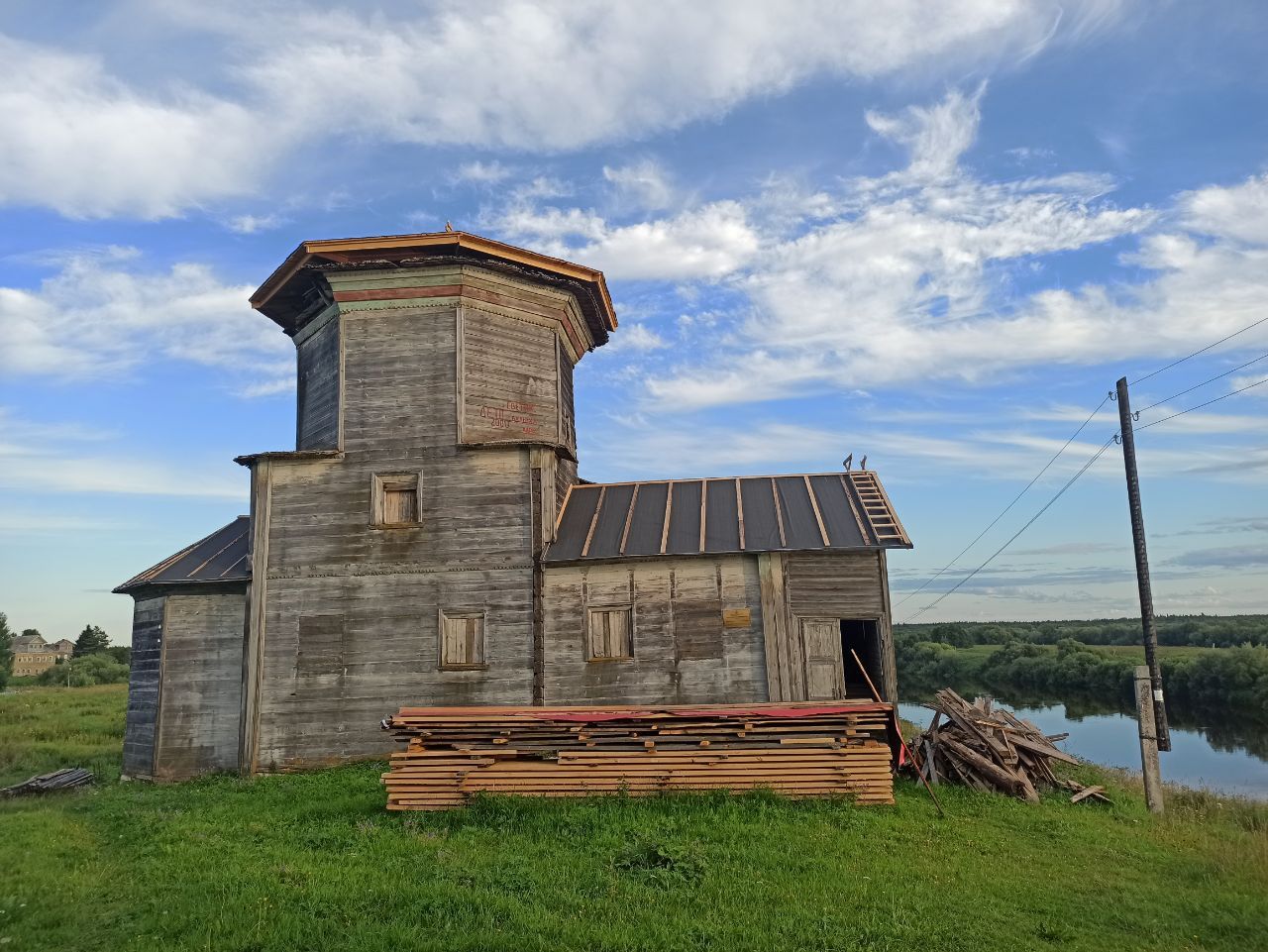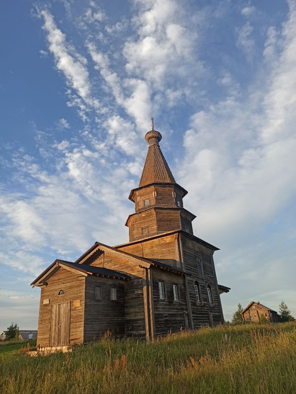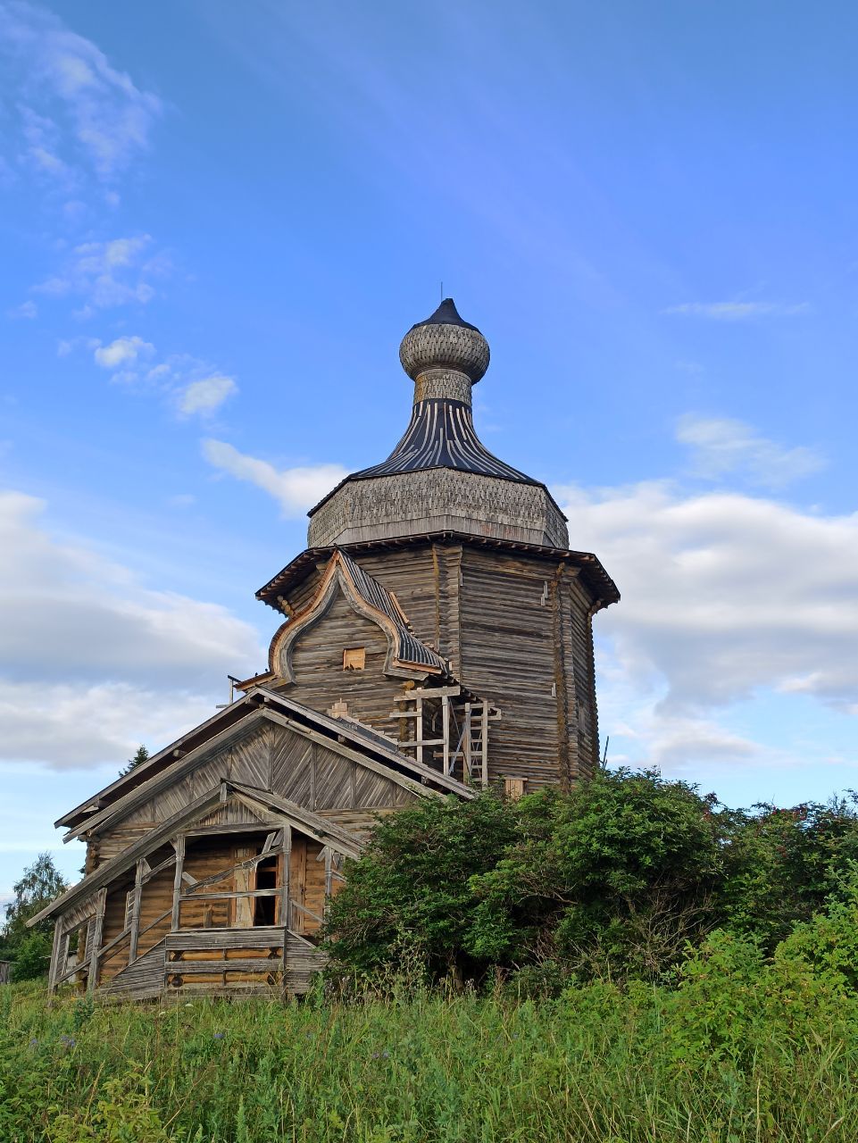 10 августа 2022 Утром выехали из Сольвычегодска, и день обещал быть весьма приятным в плане различных деревянных церквушек и не только. Тогда мы еще не знали, что Север припас для нас приятные сюрпризы и бонусы. Мчим по лесной дороге, а вокруг офигенская природа. Как в таком лесу не остановиться? Правильно - никак! Мох хрустит под ногами, деревья обросли бородками и маленькие кустики с розовыми мелкими цветочками. Вот так я впервые увидела вереск в его среде обитания. Нагулялись и едем дальше, вокруг так живописно. Оля резко: “Стой, там быки, хочу Аське показать”. Где быки? Какие быки? Вроде никаких стад вокруг не наблюдается. А речь была о речных ледоколах. Их я тоже никогда не видела до. Вообще в этой поездке было много всего такого интересненького, что в первый раз. Глядишь на эти сооружения и мирную небольшую речку внизу. Ну и никак не представляется, что она настолько бурная по весне, что может снести мост к чертям, если не предпринять меры и не поставить такие конструкции. Даже самое прикольное место легко испоганят следы людской жизнедеятельности. Верхняя Уфтюга Первая официальная точка пути - село Верхняя Уфтюга. На слух после Великого Устюга воспринимается, как название с проблемами логопедического толка в шипящих. Приехали мы смотреть прекрасную шатровую деревянную церковь Дмитрия Солунского от 1784 года. Восьмерик на четверике, высотой около 45 метров. Считается самой высокой на данный момент из церквей подобного типа. Ранее такой была сгоревшая в 2018 году Успенская в карельской Кондопоге. Подъезжаем, около церкви две девушки с инструментами наперевес сидят у крылечка. Спросили, зачем мы приехали и рассказали, что занимаются ее восстановлением в свободное время. Разрешили зайти внутрь. Внутри очень спокойно, светло, красиво и аскетично. Оля спросила про местный музей. Одна из девушек вызвалась позвонить хранителю музея, и когда та не ответила, предложила проводить нас до ее дома. Бодро запрыгнула на мотоцикл и рукой позвала следовать за собой. Стоит отметить, что приехали мы в Уфтюгу в воскресенье. Законный день отдыха. Тем не менее прекрасная Валентина Владимировна не отказала нам в гостеприимстве и провела занимательную экскурсию. И при этом совсем бесплатно, еще и брать не хотела денег после. Еле уговорили. Музей делит дом с садиком, поэтому вход весьма забавный. Он никой не краеведческий по документам, а просто школьный. И для школьного музея, я вам скажу, - он великолепен. Очень много разных экспонатов и несколько залов. В один из них даже перенесли интерьер целой избы вместе со старинными росписями и утварью. Рассказ плавно перетекал от музейной атрибутики к жизненным ситуациям. Так мы узнали, что одна из девочек у церкви, местная жительница, которая закончила здесь школу с золотой медалью, потом Политех уже не тут, вернулась домой и на свои + пожертвования восстанавливает как может. Или, что Валентину Владимировну укусила гадюка, когда она собирала иван-чай. Случился целый квест с поиском вакцины. Ее по воздуху доставили аж из Архангельска, так как ближе не было. И вообще изготовление вакцины считается не целесообразным, в связи с непростым производством и спец хранением на число реальных укусов. Узнали несколько новых для себя слов. Покатуха - миска для теста. Грядки - место под потолком, куда "высаживали" хлеб в кухонном отсе