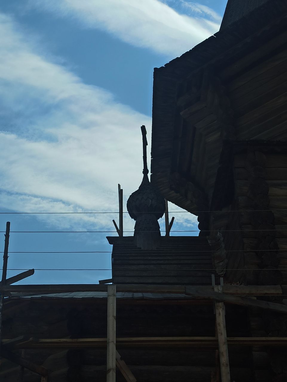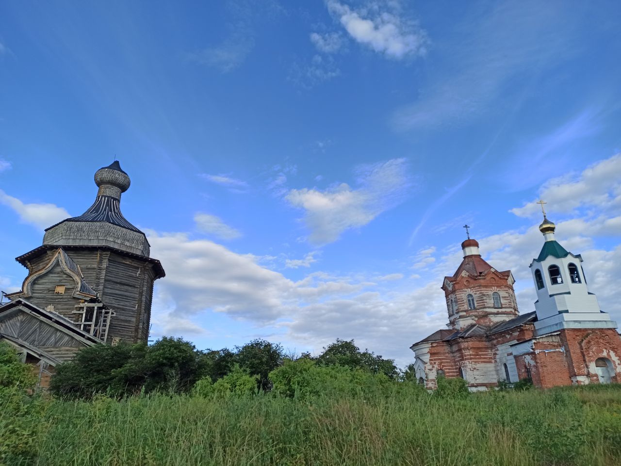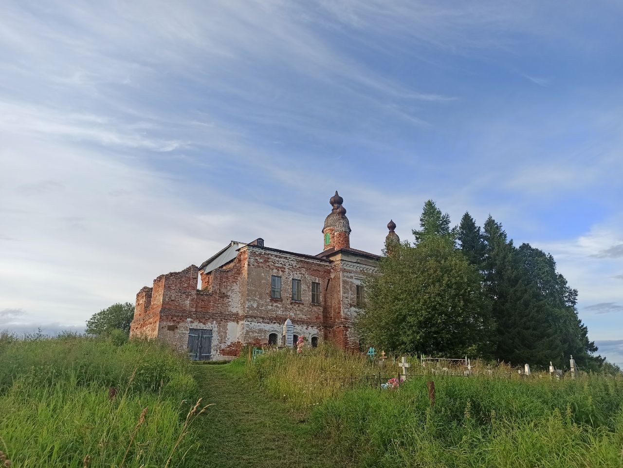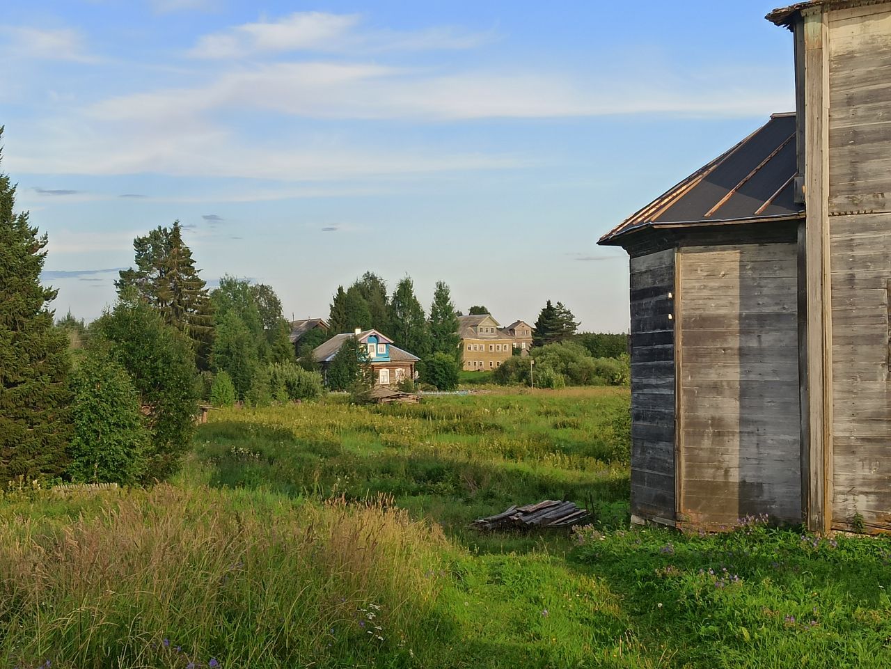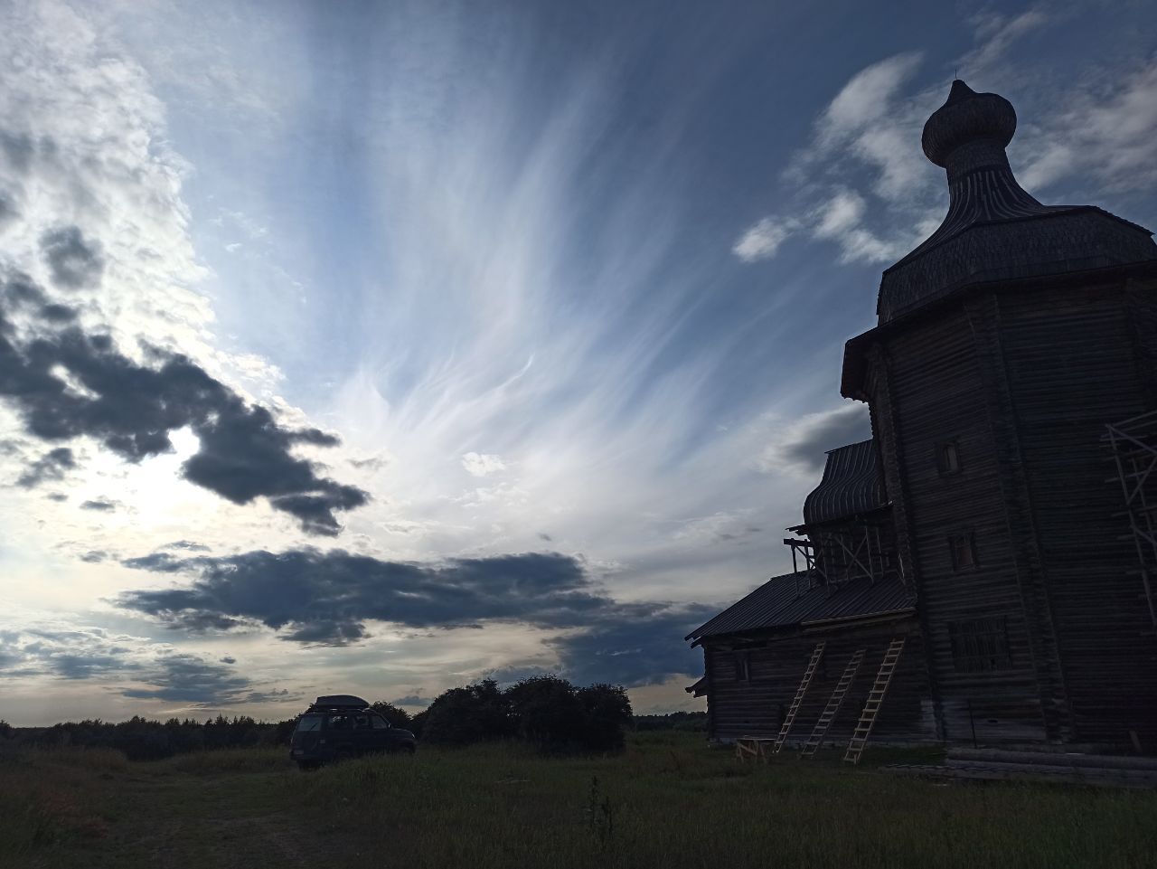 10 августа 2022 Утром выехали из Сольвычегодска, и день обещал быть весьма приятным в плане различных деревянных церквушек и не только. Тогда мы еще не знали, что Север припас для нас приятные сюрпризы и бонусы. Мчим по лесной дороге, а вокруг офигенская природа. Как в таком лесу не остановиться? Правильно - никак! Мох хрустит под ногами, деревья обросли бородками и маленькие кустики с розовыми мелкими цветочками. Вот так я впервые увидела вереск в его среде обитания. Нагулялись и едем дальше, вокруг так живописно. Оля резко: “Стой, там быки, хочу Аське показать”. Где быки? Какие быки? Вроде никаких стад вокруг не наблюдается. А речь была о речных ледоколах. Их я тоже никогда не видела до. Вообще в этой поездке было много всего такого интересненького, что в первый раз. Глядишь на эти сооружения и мирную небольшую речку внизу. Ну и никак не представляется, что она настолько бурная по весне, что может снести мост к чертям, если не предпринять меры и не поставить такие конструкции. Даже самое прикольное место легко испоганят следы людской жизнедеятельности. Верхняя Уфтюга Первая официальная точка пути - село Верхняя Уфтюга. На слух после Великого Устюга воспринимается, как название с проблемами логопедического толка в шипящих. Приехали мы смотреть прекрасную шатровую деревянную церковь Дмитрия Солунского от 1784 года. Восьмерик на четверике, высотой около 45 метров. Считается самой высокой на данный момент из церквей подобного типа. Ранее такой была сгоревшая в 2018 году Успенская в карельской Кондопоге. Подъезжаем, около церкви две девушки с инструментами наперевес сидят у крылечка. Спросили, зачем мы приехали и рассказали, что занимаются ее восстановлением в свободное время. Разрешили зайти внутрь. Внутри очень спокойно, светло, красиво и аскетично. Оля спросила про местный музей. Одна из девушек вызвалась позвонить хранителю музея, и когда та не ответила, предложила проводить нас до ее дома. Бодро запрыгнула на мотоцикл и рукой позвала следовать за собой. Стоит отметить, что приехали мы в Уфтюгу в воскресенье. Законный день отдыха. Тем не менее прекрасная Валентина Владимировна не отказала нам в гостеприимстве и провела занимательную экскурсию. И при этом совсем бесплатно, еще и брать не хотела денег после. Еле уговорили. Музей делит дом с садиком, поэтому вход весьма забавный. Он никой не краеведческий по документам, а просто школьный. И для школьного музея, я вам скажу, - он великолепен. Очень много разных экспонатов и несколько залов. В один из них даже перенесли интерьер целой избы вместе со старинными росписями и утварью. Рассказ плавно перетекал от музейной атрибутики к жизненным ситуациям. Так мы узнали, что одна из девочек у церкви, местная жительница, которая закончила здесь школу с золотой медалью, потом Политех уже не тут, вернулась домой и на свои + пожертвования восстанавливает как может. Или, что Валентину Владимировну укусила гадюка, когда она собирала иван-чай. Случился целый квест с поиском вакцины. Ее по воздуху доставили аж из Архангельска, так как ближе не было. И вообще изготовление вакцины считается не целесообразным, в связи с непростым производством и спец хранением на число реальных укусов. Узнали несколько новых для себя слов. Покатуха - миска для теста. Грядки - место под потолком, куда "высаживали" хлеб в кухонном отсе