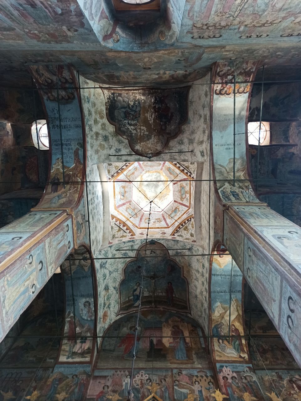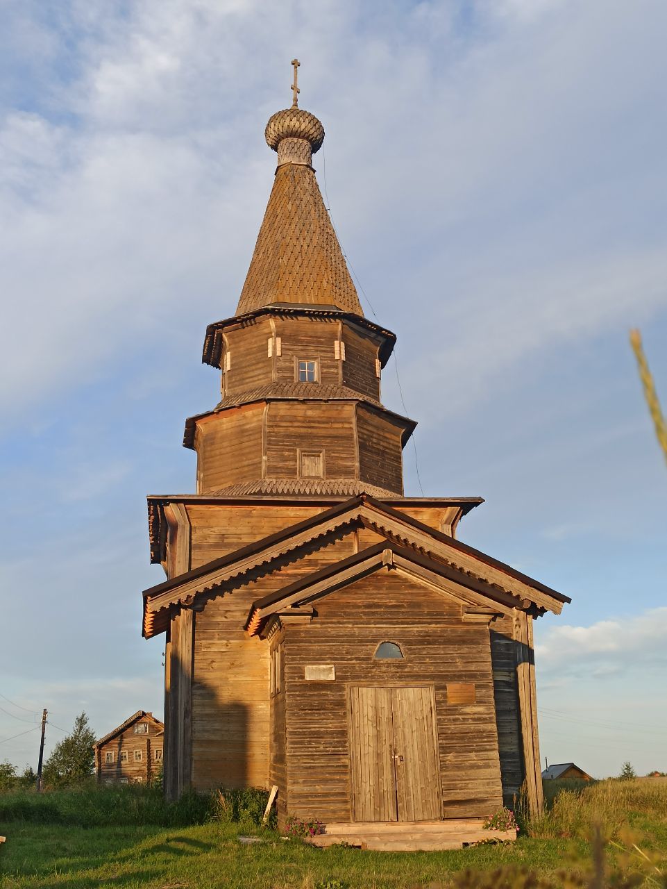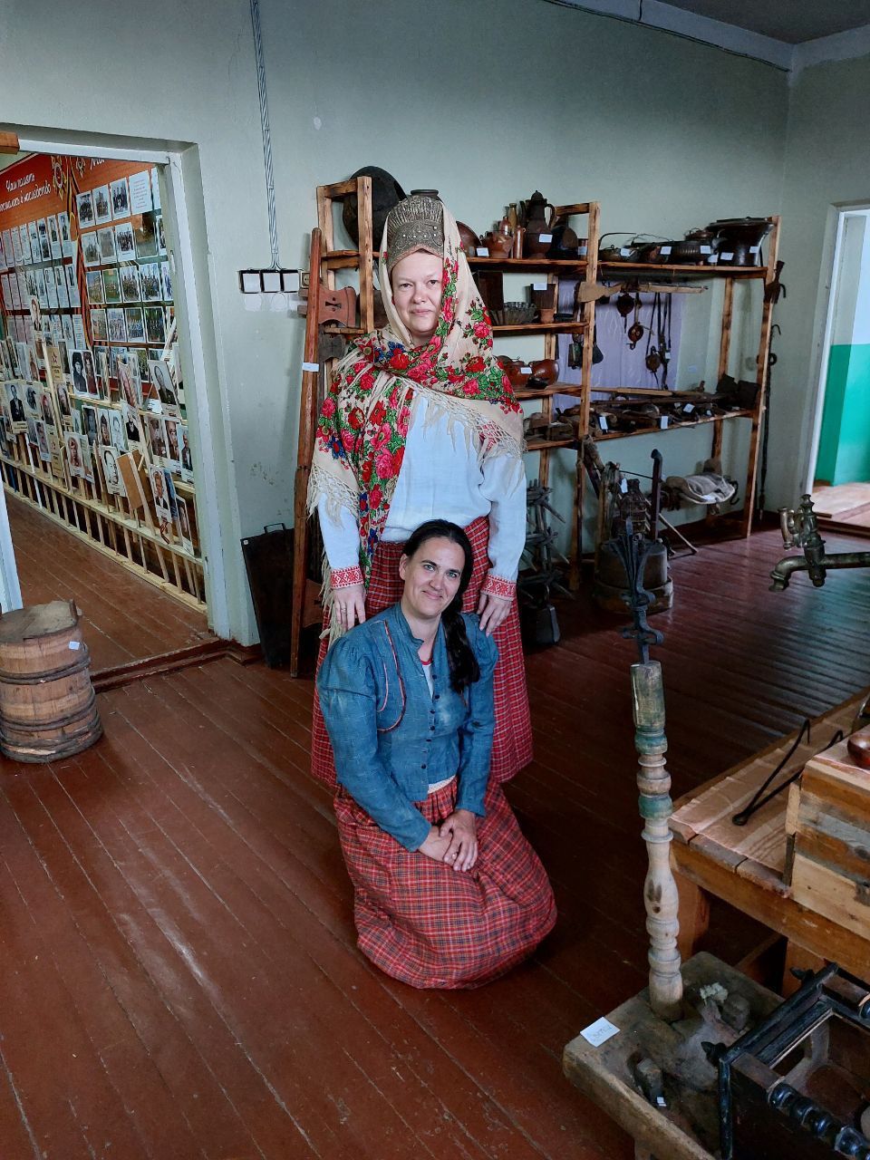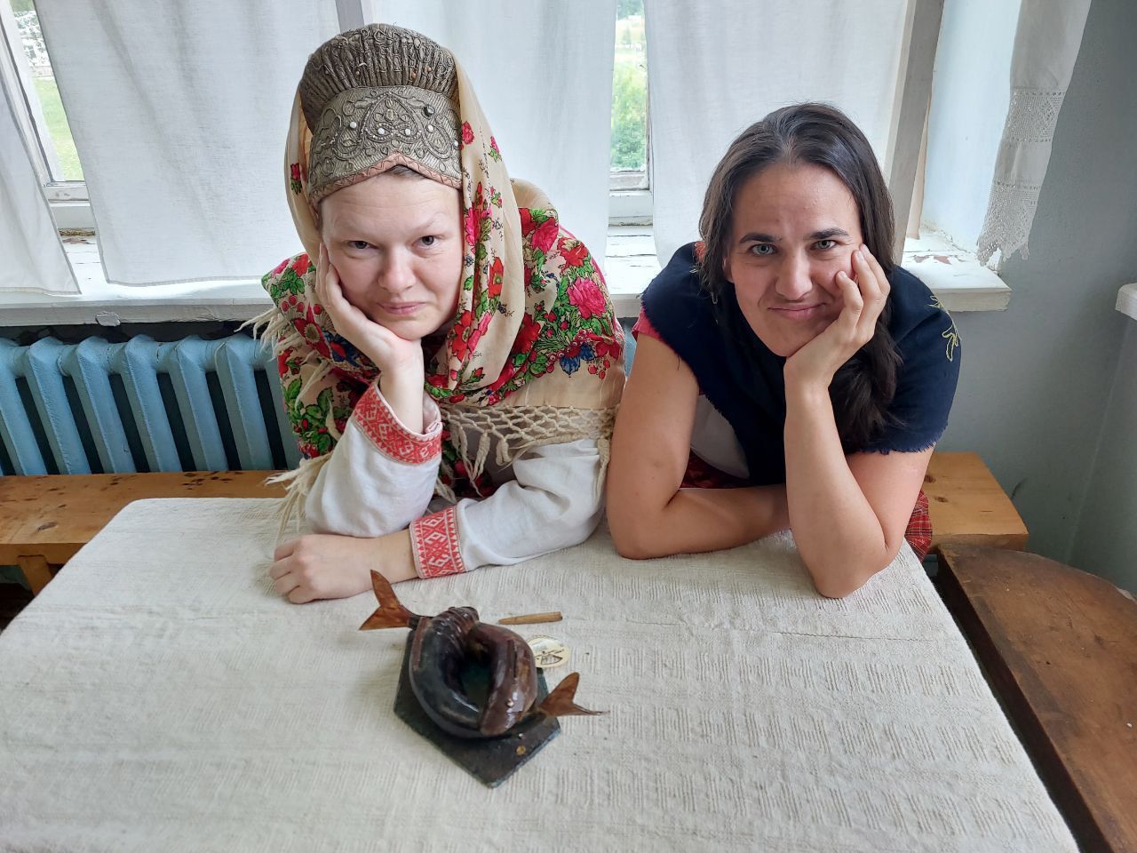 10 августа 2022 Утром выехали из Сольвычегодска, и день обещал быть весьма приятным в плане различных деревянных церквушек и не только. Тогда мы еще не знали, что Север припас для нас приятные сюрпризы и бонусы. Мчим по лесной дороге, а вокруг офигенская природа. Как в таком лесу не остановиться? Правильно - никак! Мох хрустит под ногами, деревья обросли бородками и маленькие кустики с розовыми мелкими цветочками. Вот так я впервые увидела вереск в его среде обитания. Нагулялись и едем дальше, вокруг так живописно. Оля резко: “Стой, там быки, хочу Аське показать”. Где быки? Какие быки? Вроде никаких стад вокруг не наблюдается. А речь была о речных ледоколах. Их я тоже никогда не видела до. Вообще в этой поездке было много всего такого интересненького, что в первый раз. Глядишь на эти сооружения и мирную небольшую речку внизу. Ну и никак не представляется, что она настолько бурная по весне, что может снести мост к чертям, если не предпринять меры и не поставить такие конструкции. Даже самое прикольное место легко испоганят следы людской жизнедеятельности. Верхняя Уфтюга Первая официальная точка пути - село Верхняя Уфтюга. На слух после Великого Устюга воспринимается, как название с проблемами логопедического толка в шипящих. Приехали мы смотреть прекрасную шатровую деревянную церковь Дмитрия Солунского от 1784 года. Восьмерик на четверике, высотой около 45 метров. Считается самой высокой на данный момент из церквей подобного типа. Ранее такой была сгоревшая в 2018 году Успенская в карельской Кондопоге. Подъезжаем, около церкви две девушки с инструментами наперевес сидят у крылечка. Спросили, зачем мы приехали и рассказали, что занимаются ее восстановлением в свободное время. Разрешили зайти внутрь. Внутри очень спокойно, светло, красиво и аскетично. Оля спросила про местный музей. Одна из девушек вызвалась позвонить хранителю музея, и когда та не ответила, предложила проводить нас до ее дома. Бодро запрыгнула на мотоцикл и рукой позвала следовать за собой. Стоит отметить, что приехали мы в Уфтюгу в воскресенье. Законный день отдыха. Тем не менее прекрасная Валентина Владимировна не отказала нам в гостеприимстве и провела занимательную экскурсию. И при этом совсем бесплатно, еще и брать не хотела денег после. Еле уговорили. Музей делит дом с садиком, поэтому вход весьма забавный. Он никой не краеведческий по документам, а просто школьный. И для школьного музея, я вам скажу, - он великолепен. Очень много разных экспонатов и несколько залов. В один из них даже перенесли интерьер целой избы вместе со старинными росписями и утварью. Рассказ плавно перетекал от музейной атрибутики к жизненным ситуациям. Так мы узнали, что одна из девочек у церкви, местная жительница, которая закончила здесь школу с золотой медалью, потом Политех уже не тут, вернулась домой и на свои + пожертвования восстанавливает как может. Или, что Валентину Владимировну укусила гадюка, когда она собирала иван-чай. Случился целый квест с поиском вакцины. Ее по воздуху доставили аж из Архангельска, так как ближе не было. И вообще изготовление вакцины считается не целесообразным, в связи с непростым производством и спец хранением на число реальных укусов. Узнали несколько новых для себя слов. Покатуха - миска для теста. Грядки - место под потолком, куда "высаживали" хлеб в кухонном отсе