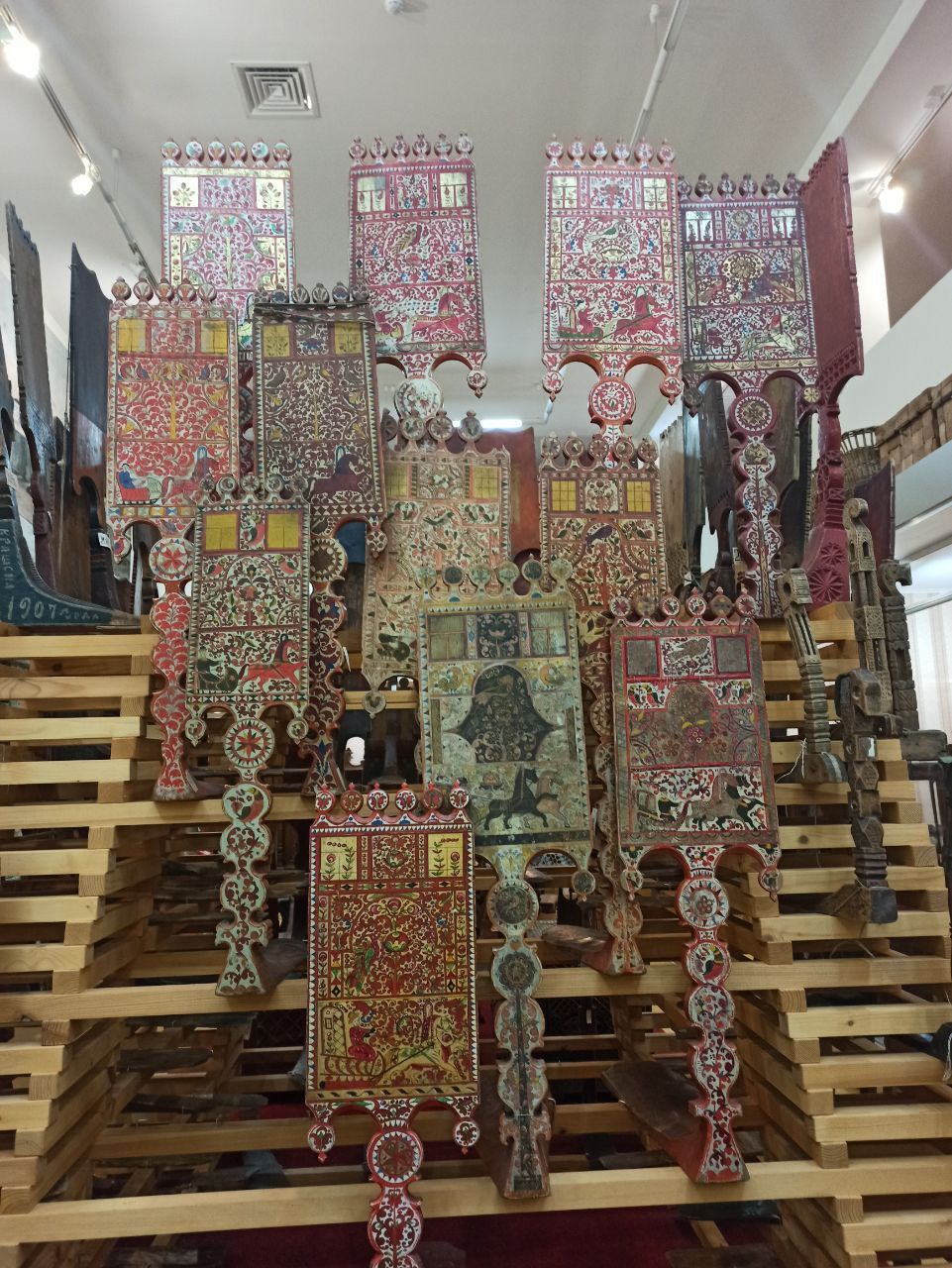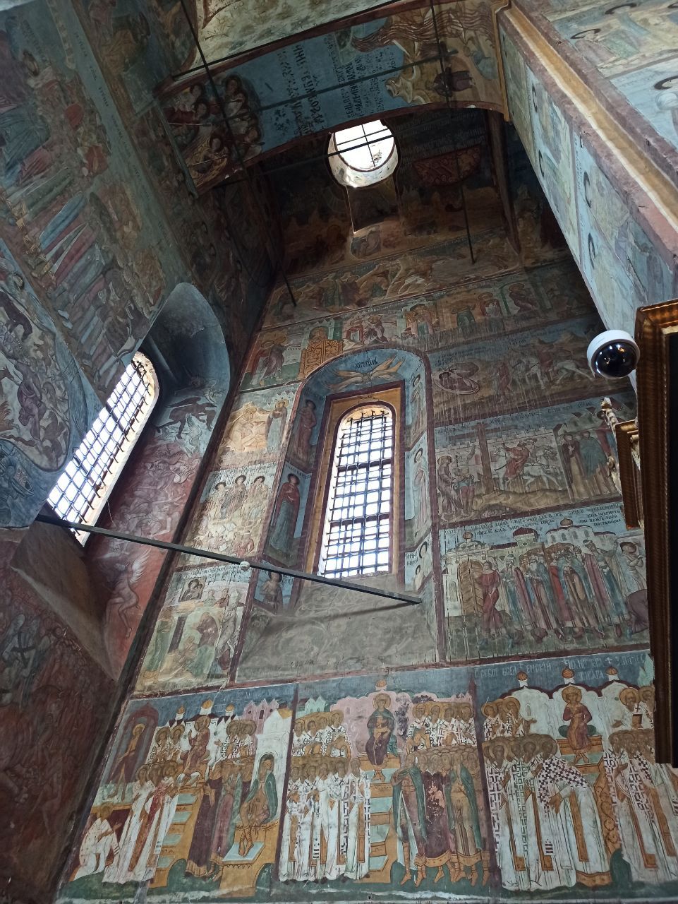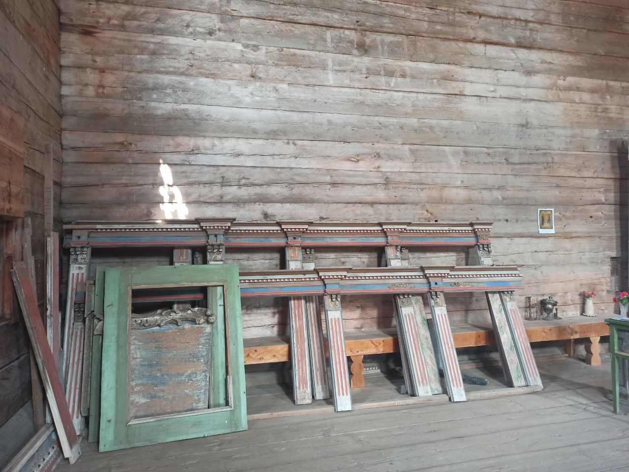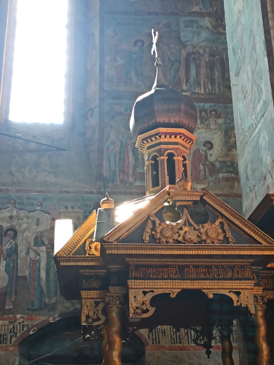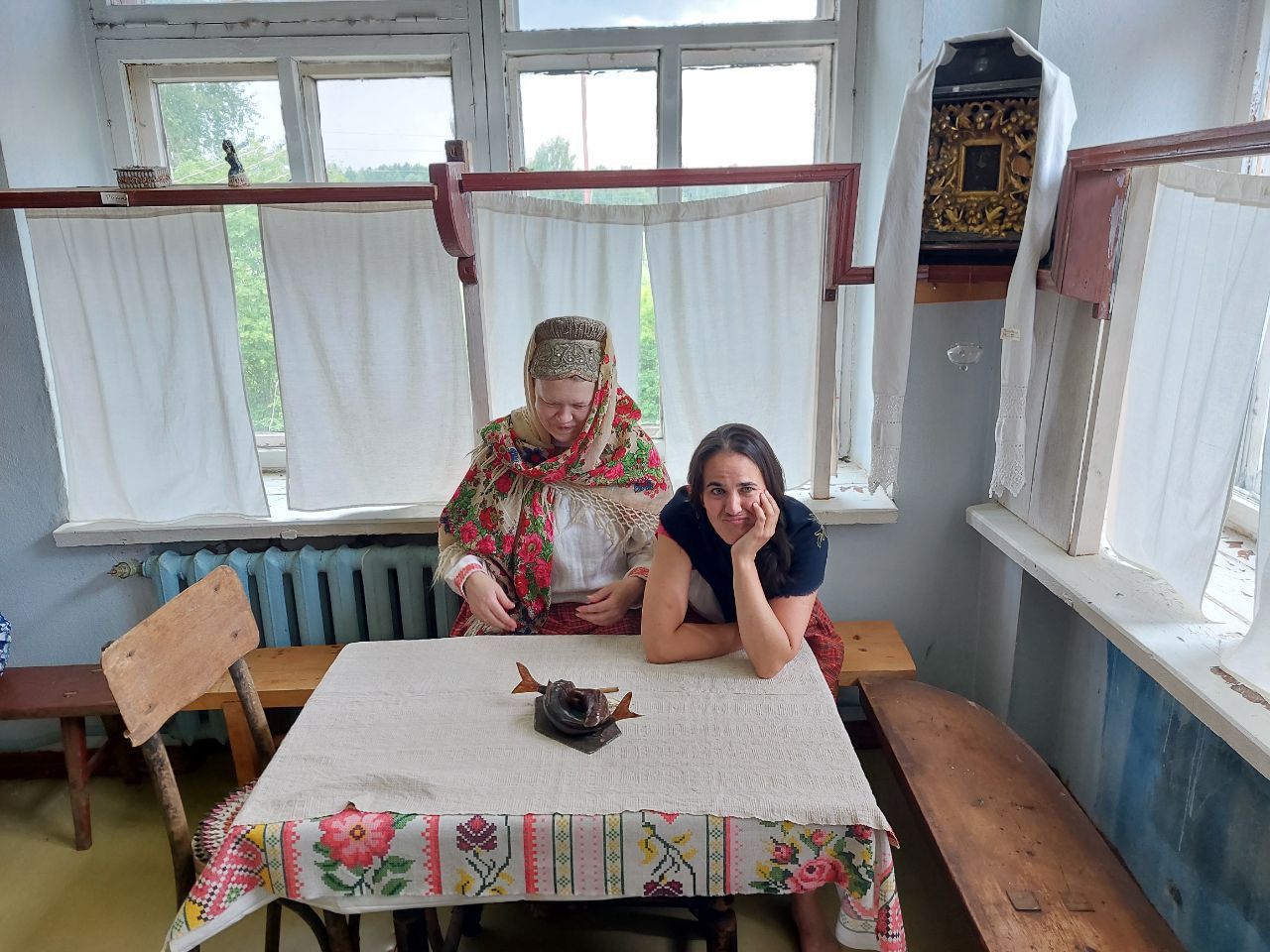 10 августа 2022 Утром выехали из Сольвычегодска, и день обещал быть весьма приятным в плане различных деревянных церквушек и не только. Тогда мы еще не знали, что Север припас для нас приятные сюрпризы и бонусы. Мчим по лесной дороге, а вокруг офигенская природа. Как в таком лесу не остановиться? Правильно - никак! Мох хрустит под ногами, деревья обросли бородками и маленькие кустики с розовыми мелкими цветочками. Вот так я впервые увидела вереск в его среде обитания. Нагулялись и едем дальше, вокруг так живописно. Оля резко: “Стой, там быки, хочу Аське показать”. Где быки? Какие быки? Вроде никаких стад вокруг не наблюдается. А речь была о речных ледоколах. Их я тоже никогда не видела до. Вообще в этой поездке было много всего такого интересненького, что в первый раз. Глядишь на эти сооружения и мирную небольшую речку внизу. Ну и никак не представляется, что она настолько бурная по весне, что может снести мост к чертям, если не предпринять меры и не поставить такие конструкции. Даже самое прикольное место легко испоганят следы людской жизнедеятельности. Верхняя Уфтюга Первая официальная точка пути - село Верхняя Уфтюга. На слух после Великого Устюга воспринимается, как название с проблемами логопедического толка в шипящих. Приехали мы смотреть прекрасную шатровую деревянную церковь Дмитрия Солунского от 1784 года. Восьмерик на четверике, высотой около 45 метров. Считается самой высокой на данный момент из церквей подобного типа. Ранее такой была сгоревшая в 2018 году Успенская в карельской Кондопоге. Подъезжаем, около церкви две девушки с инструментами наперевес сидят у крылечка. Спросили, зачем мы приехали и рассказали, что занимаются ее восстановлением в свободное время. Разрешили зайти внутрь. Внутри очень спокойно, светло, красиво и аскетично. Оля спросила про местный музей. Одна из девушек вызвалась позвонить хранителю музея, и когда та не ответила, предложила проводить нас до ее дома. Бодро запрыгнула на мотоцикл и рукой позвала следовать за собой. Стоит отметить, что приехали мы в Уфтюгу в воскресенье. Законный день отдыха. Тем не менее прекрасная Валентина Владимировна не отказала нам в гостеприимстве и провела занимательную экскурсию. И при этом совсем бесплатно, еще и брать не хотела денег после. Еле уговорили. Музей делит дом с садиком, поэтому вход весьма забавный. Он никой не краеведческий по документам, а просто школьный. И для школьного музея, я вам скажу, - он великолепен. Очень много разных экспонатов и несколько залов. В один из них даже перенесли интерьер целой избы вместе со старинными росписями и утварью. Рассказ плавно перетекал от музейной атрибутики к жизненным ситуациям. Так мы узнали, что одна из девочек у церкви, местная жительница, которая закончила здесь школу с золотой медалью, потом Политех уже не тут, вернулась домой и на свои + пожертвования восстанавливает как может. Или, что Валентину Владимировну укусила гадюка, когда она собирала иван-чай. Случился целый квест с поиском вакцины. Ее по воздуху доставили аж из Архангельска, так как ближе не было. И вообще изготовление вакцины считается не целесообразным, в связи с непростым производством и спец хранением на число реальных укусов. Узнали несколько новых для себя слов. Покатуха - миска для теста. Грядки - место под потолком, куда "высаживали" хлеб в кухонном отсе