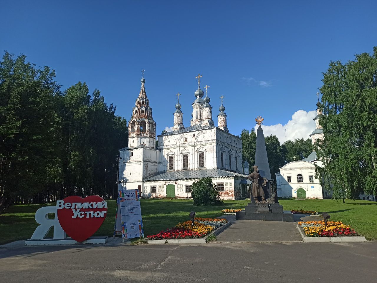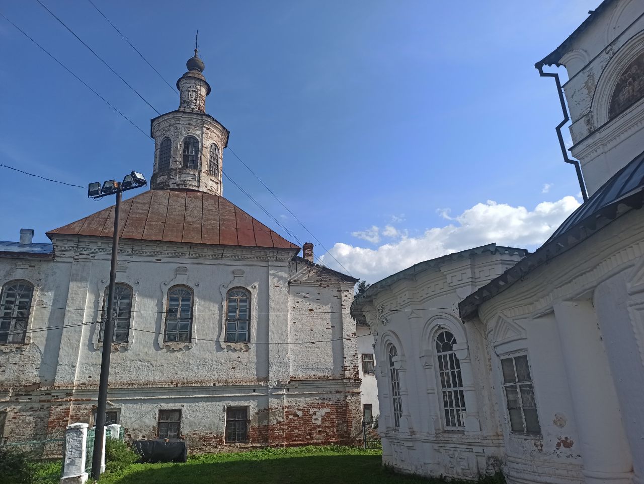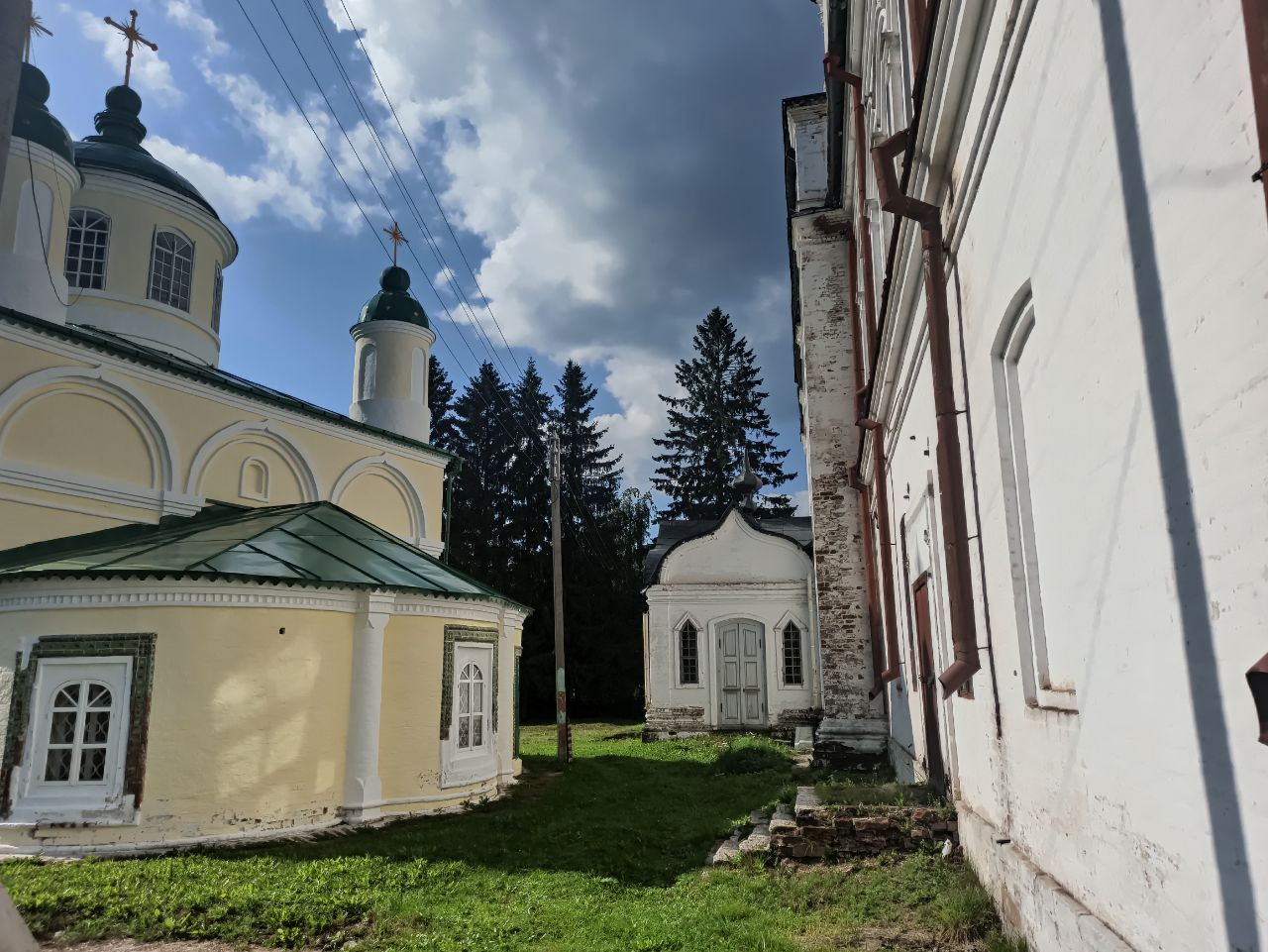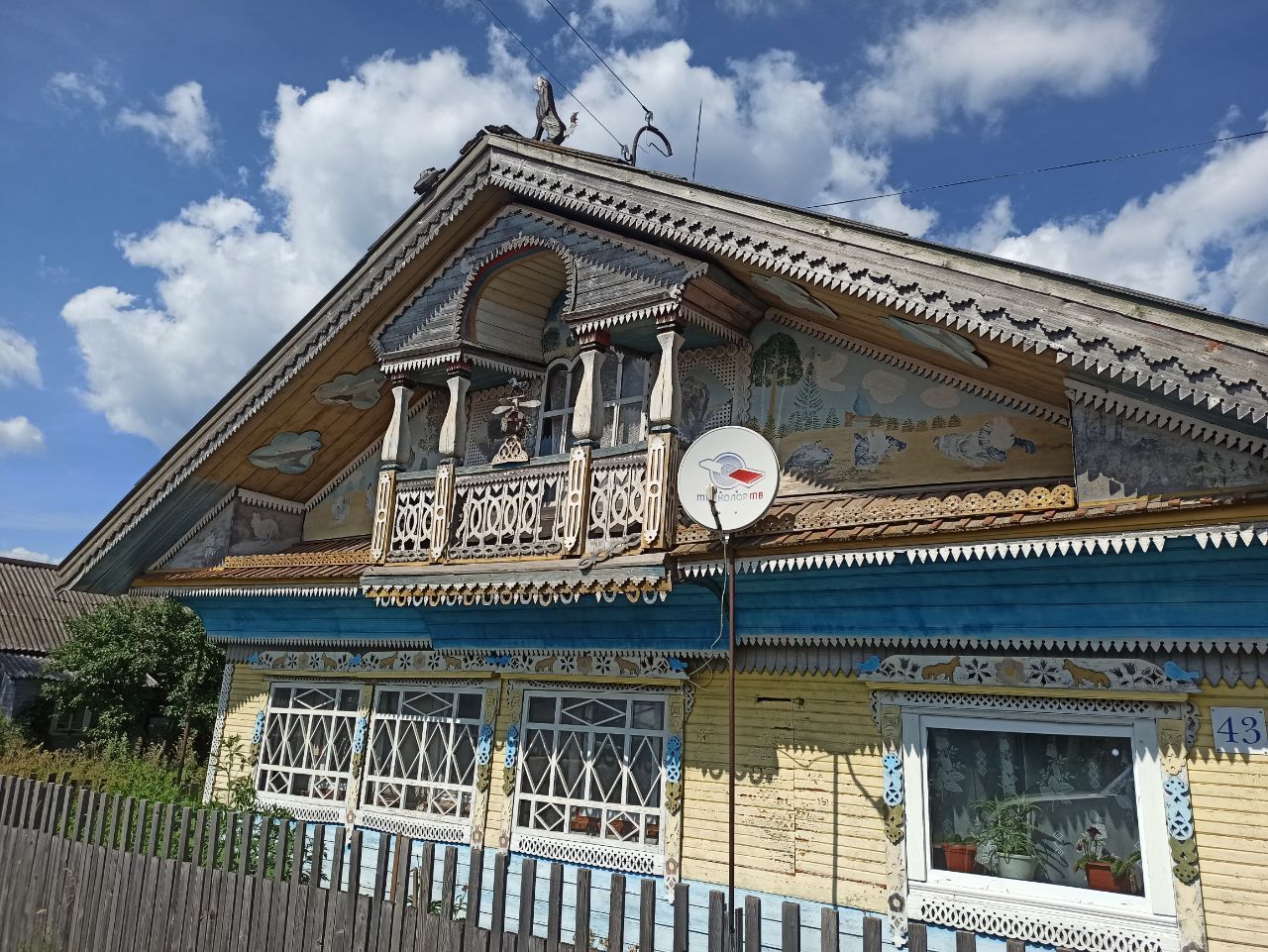 8 августа 2022 Продолжаем разговор )) Не сказать, что у нас в области, особенно на даче, ощущается нехватка иван-чая, как класса, но чем дальше на север, тем его больше. В разы больше. Он буквально заполоняет пространство вдоль дороги, делая ее обочину девчачьей - розовенькой. И это незабываемое впечатление. Окружающее реально начинается запечатляться именно через призму иван-чая. И это прекрасно! Еще мох и лишайники. Как тут не влюбиться?! Едем мы в Устюг, глазеем по сторонам, и внезапно Оля спрашивает: "Как у нас со временем? Тут точка стоит на карте - церковь, которую мы из Устюга видим все время, да и еще я хотела бы на исток Северной Двины глянуть." Просто у нас впереди паром до Сольвычегодска, который был точкой ночевки, а мы, девочки, не очень посмотрели, что там и сколько там до него. Такое всегда немного подбешивает Женю. После быстрого обмена мнениями о недостатках друг друга )))), сворачиваем с маршрута и едем смотреть Троице-Гледенский монастырь. А посмотреть есть на что. Основан он очень давно в 12 веке и назван в честь города Гледена, предшественника Великого Устюга, который исчез с лица земли еще в 15 столетии. Город, не монастырь. Как и все церковные общины того времени, он долгое время имел большое хозяйство, занимался торговлей и был довольно богат. Но нет ничего постоянного - грянула церковная реформа Петра, и жизнь монастыря пошла под уклон. Забавный факт из истории: за время своего существования он был сначала мужским, а потом женским. Позже в нем были и больничные дела, и даже держали заключенных пересыльных. Сейчас здесь музей, а значит можно зайти внутрь и за скромную плату посмотреть своими глазами на уникальный барочный иконостас, который ожидаешь увидеть скорее где-то в католической Европе. И там действительно есть на что подивиться. Деревянный, резной, позолоченный, да еще и с зеркалами. Удивительной красоты резьба, выполненная мастерами из Тотьмы, Вологды и Устюга на народные пожертвования. Долгое время комплекс был закрыт, окна выбиты, крыша прохудилась. Внутри обосновалась колония голубей со всеми вытекающими последствиями. Но потом было решено привести его в порядок. Так вот по словам бабулечки, которая продавала билеты на вход, как отмыли иконостас от помета, так и ахнули: повреждения были минимальными. И это ли не чудо, как тогда умели строить. Надо сказать, что стоит он в прекрасном месте. Церковные постройки в принципе всегда "забивали" себе зачетные локации, за редчайшим исключением. И тут высокий пригорок - вокруг просторы, и вниз убегают деревья с иван-чаем наперегонки. Плюс погода была абсолютно открыточная с облачками, которые как специально вставали в кадр выгодным ракурсом. Мы eще на пути до монастыря приметили интересную резьбу на домах деревни под боком. Обратно поехали немного другой дорогой по ней и не прогадали. Вдруг вырос перед глазами вот такой дом. Я подобное видела у нас в Пурехе, показывала здесь в том году. И не сразу замечаешь все детальки. А кое-что вообще только Женя увидел - как первый этаж прячется внутри резной фальшстены. Очень симпатичный домик. Впрочем, как и пурехские, лично для меня такое to much, перегружено сильно. Дальше было слияние рек Юг и Сухона, а также начало прекрасной Северной Двины. Я вообще очень нежно отношусь к речным слияниям. Они у меня в крови по территориальной принадлежности, ра