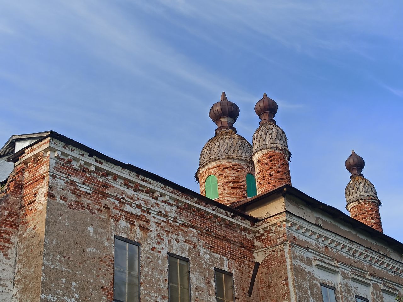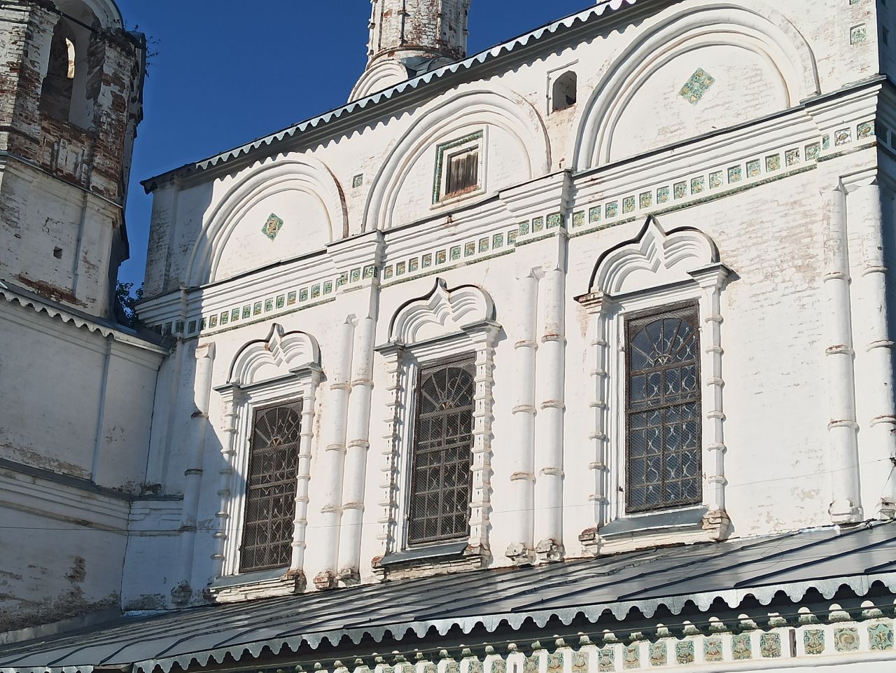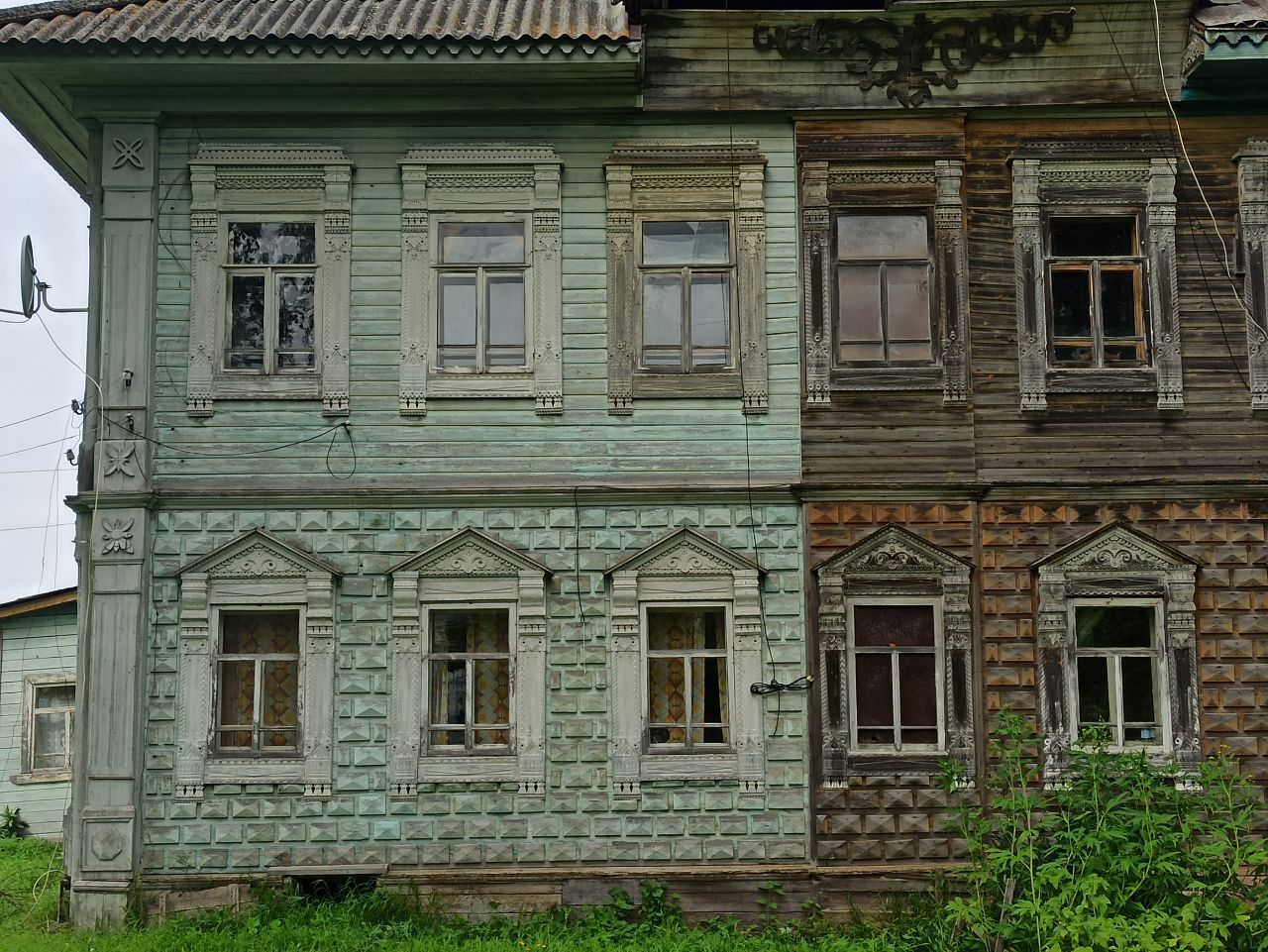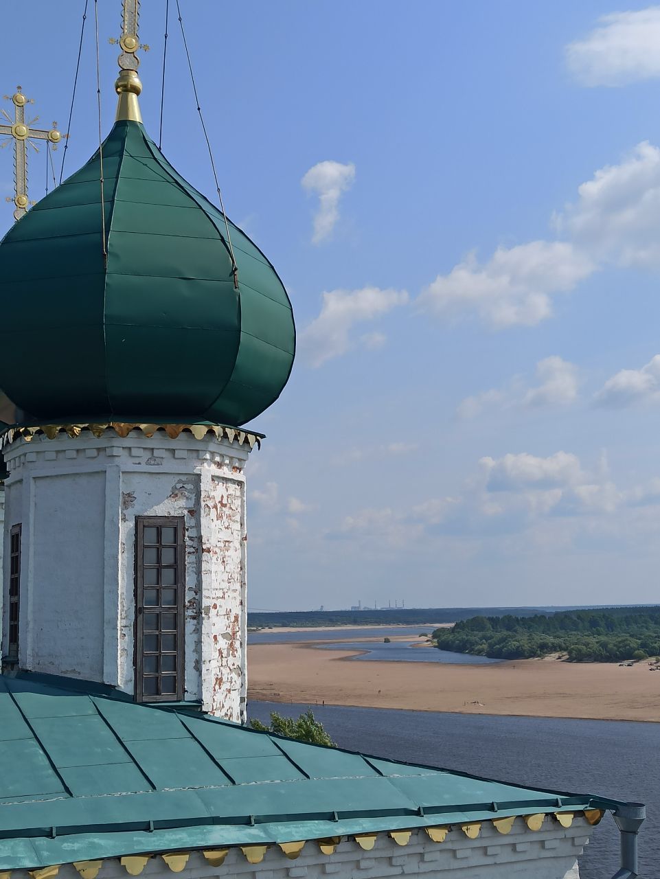 8 августа 2022 Продолжаем разговор )) Не сказать, что у нас в области, особенно на даче, ощущается нехватка иван-чая, как класса, но чем дальше на север, тем его больше. В разы больше. Он буквально заполоняет пространство вдоль дороги, делая ее обочину девчачьей - розовенькой. И это незабываемое впечатление. Окружающее реально начинается запечатляться именно через призму иван-чая. И это прекрасно! Еще мох и лишайники. Как тут не влюбиться?! Едем мы в Устюг, глазеем по сторонам, и внезапно Оля спрашивает: "Как у нас со временем? Тут точка стоит на карте - церковь, которую мы из Устюга видим все время, да и еще я хотела бы на исток Северной Двины глянуть." Просто у нас впереди паром до Сольвычегодска, который был точкой ночевки, а мы, девочки, не очень посмотрели, что там и сколько там до него. Такое всегда немного подбешивает Женю. После быстрого обмена мнениями о недостатках друг друга )))), сворачиваем с маршрута и едем смотреть Троице-Гледенский монастырь. А посмотреть есть на что. Основан он очень давно в 12 веке и назван в честь города Гледена, предшественника Великого Устюга, который исчез с лица земли еще в 15 столетии. Город, не монастырь. Как и все церковные общины того времени, он долгое время имел большое хозяйство, занимался торговлей и был довольно богат. Но нет ничего постоянного - грянула церковная реформа Петра, и жизнь монастыря пошла под уклон. Забавный факт из истории: за время своего существования он был сначала мужским, а потом женским. Позже в нем были и больничные дела, и даже держали заключенных пересыльных. Сейчас здесь музей, а значит можно зайти внутрь и за скромную плату посмотреть своими глазами на уникальный барочный иконостас, который ожидаешь увидеть скорее где-то в католической Европе. И там действительно есть на что подивиться. Деревянный, резной, позолоченный, да еще и с зеркалами. Удивительной красоты резьба, выполненная мастерами из Тотьмы, Вологды и Устюга на народные пожертвования. Долгое время комплекс был закрыт, окна выбиты, крыша прохудилась. Внутри обосновалась колония голубей со всеми вытекающими последствиями. Но потом было решено привести его в порядок. Так вот по словам бабулечки, которая продавала билеты на вход, как отмыли иконостас от помета, так и ахнули: повреждения были минимальными. И это ли не чудо, как тогда умели строить. Надо сказать, что стоит он в прекрасном месте. Церковные постройки в принципе всегда "забивали" себе зачетные локации, за редчайшим исключением. И тут высокий пригорок - вокруг просторы, и вниз убегают деревья с иван-чаем наперегонки. Плюс погода была абсолютно открыточная с облачками, которые как специально вставали в кадр выгодным ракурсом. Мы eще на пути до монастыря приметили интересную резьбу на домах деревни под боком. Обратно поехали немного другой дорогой по ней и не прогадали. Вдруг вырос перед глазами вот такой дом. Я подобное видела у нас в Пурехе, показывала здесь в том году. И не сразу замечаешь все детальки. А кое-что вообще только Женя увидел - как первый этаж прячется внутри резной фальшстены. Очень симпатичный домик. Впрочем, как и пурехские, лично для меня такое to much, перегружено сильно. Дальше было слияние рек Юг и Сухона, а также начало прекрасной Северной Двины. Я вообще очень нежно отношусь к речным слияниям. Они у меня в крови по территориальной принадлежности, ра