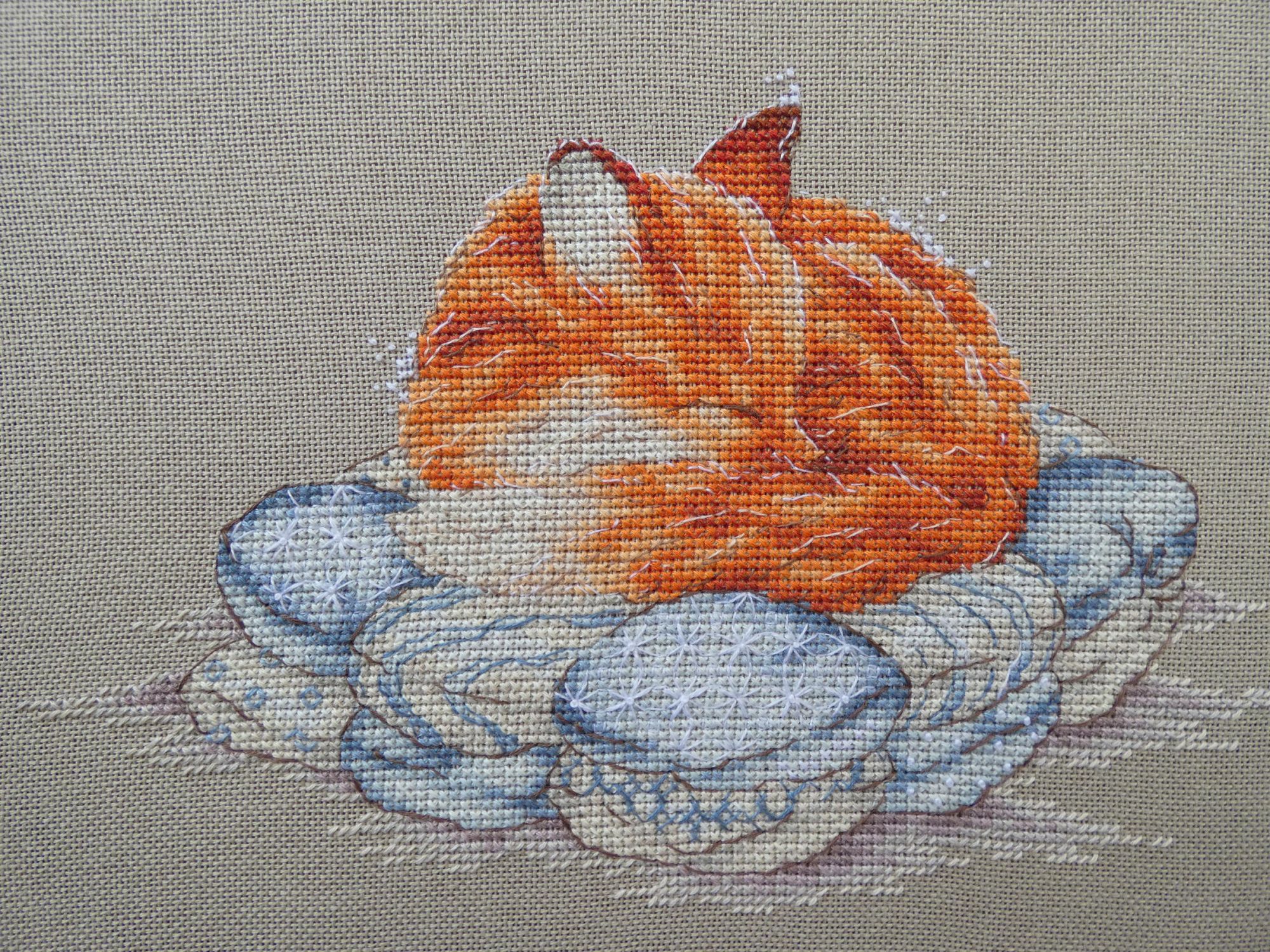 8 сентября 2022 Всем привет! Сегодня будет только вышивка и только новая. Я ж обещала старты, так что поехали. Правда некоторые сразу и финиши, но это уже тонкости формулировок. )))) Лоскутное одеялко старт и финиш! по схеме VikDollin, размер 118х79 крестиков, 27 цветов Мне этот лисенок давно нравился, поэтому когда Вика (дизайнер) попросила меня для нее на ФР его вышить, я не стала даже сопротивляться. Крестики шьются замечательно. Лис угадывался даже без бэка, да и одеяло вышивалось очень приятными цветами. Дальше начался бэк, а с ним и проблемы. Во-первых, когда вышивка такая однородная, то есть рыжее на рыжем с рыжем, то сложно найти сходу место для бэчинок. Все время приходится считать, а бэк еще и несчетный. Не очень такое люблю, но терпимо. Во-вторых, некоторые цвета бэка были не отличимы. На рыжем 945 (цвета светлой кожи) и белый выглядят абсолютно одинаково. Два из трех коричневых тоже. В-третьих, замечательный блэкворк на одеяле, который и зацепил взгляд изначально, просто теряется на светлом-голубом. Из вязи превращается в снежинки. Я, конечно же, обо всех своих расстройствах написала дизайнеру. Она хочет кое-что исправить. Например, цвет одеяла сделать темнее, чтобы блэкворк выделялся. Лисенка же ждет чудесная судьба - быть центром ловца для снов. Буду очень ждать, как он оформится. Harvest Barn старт и финиш! Mill Hill MH18-1821 Вышила лисенка и так захотелось чего-то маленького и осеннего, что МХ буквально сам прыгнул в руки. Очень люблю этих малышей. Набор с амбаром не шибко новый, а значит бисера в нем предостаточно. Это почему-то в новых стали экономить и делать наборы скорее ниточными, что грустно. Весь эффект пропадает. Шьется в 3 нити, но где надо было немного крестиков и бисер этим же цветом пришивать, я шила в 2. И вряд ли кто-то найдет эти места. Даже я уже забыла. Больше всего нравится тыковка. Она классно светится, когда на нее попадает свет. Как положено изнутри. Эта серия мини-шармиков одна из лучших у фирмы, на мой вкус конечно же. Цветочная улочка старт! по схеме Яны Архиповой, 178х110 крестиков, 44 цвета Эта схема тоже начата для дизайнера к ФР. Я уже отшила определенное количество ее схем, в том числе мой любимый Речной вокзал, и могу сказать, что она совершенствуется. Схемы определенно становятся лучше и проще в отшиве. Здесь у меня яркий и красочный сюжет, с большим количеством цветов. Впрочем, это обусловлено акварельностью картинки. Идет довольно быстро и в крестиках, и в бэке. Немного останавливают мой резвый бег - дурацкие пятнышки двух цветов вокруг композиции. Не люблю крепиться столько раз, чтобы не было протяжек. В остальном все отлично. На этом все, увидимся. Любушка1985, makalicha1970, Хозяйка смешных зверей и 46 других сказали спасибо Поделиться сообщением Ссылка на сообщение
