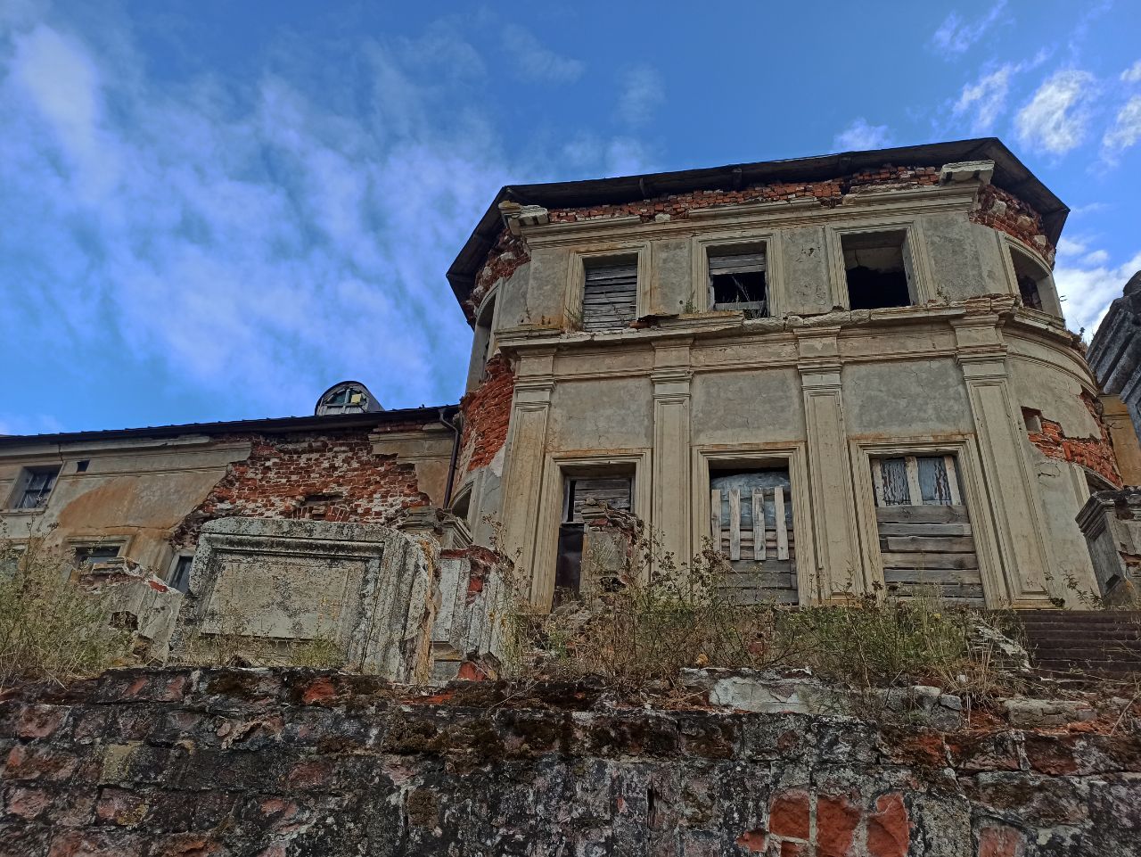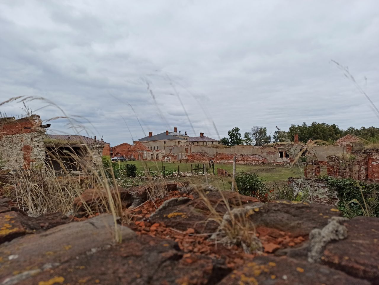 15 сентября 2022 Всем привет! Начало сентября - не самое свободное время. Шьется много чего, но принести хорошие продвижения можно только в основном процессе этой недели. Цветочная улочка За окном уже осень, да и дождь с завидным постоянством начинает наигрывать свою мелодию. В эти моменты особенно хорошо шьется яркими и солнечными цветами. Получаются воспоминания о жарком лете со множеством деталей. Пестром и позитивном. Был один домик За неделю к нему присоединилась еще и цветочная лавка. Больше всего мне понравилось шить полосатую крышу, а меньше всего полукрест. Я его люблю, но здесь он шел хуже крестиков по общему настроению. Но я все равно рада, что финиш уже близко. В субботу погода обещала без осадков. Мы решили съездить в место, куда очень давно собирались, но по самым разным причинам никак не могли доехать. Усадьба Приклонских-Рукавишниковых Об этой усадьбе я знала давно. Периодически попадались в сети фотографии от приятелей или наших местных блогеров. Казалось бы садись и вперед, но есть нюансы. Главный из них - это не самая простая дорога. Асфальт заканчивается за 6 км от нее. Далее идет грунтовка по полям, которую моментально размывает на ямы при любой погоде, кроме сухой. Нам очень повезло, что до выходных дождей практически не было. Также встречаются ямы, провалы, а сама дорога одним боком часто поднимается выше ее второго бока. Легко сползти вниз. В большинстве отзывов написано, что лучше внедорожник или пешком. Пешком красиво конечно, но далековато. Получается, что осень, зима и весна для большей части любителей подобных усадеб становится практически недоступной. Примерно в км от главных строений жители Подвязья, что под боком, поставили табличку с просьбой для туристов - оставлять машины здесь, а не ехать через деревню. Почему бы не прогуляться. Тем более, что в этом месте находится первое здание комплекса. Бывшая кузница. Ее построили в стороне, чтобы не слышать шум и гам, который всегда здесь присутствует. До нее еще не дошли руки владельцев усадьбы, так что вокруг борщевик и паутина. Впрочем, внутрь попасть можно. Прошли деревню, и сразу начинаются виды. Высокий берег Оки покоряет с первого взгляда. Над головой низкое серое небо, пейзаж оживляют васильки, да самолетик в небе. Он как будто бы специально ждал нас, чтобы показать нам фигуры высшего пилотажа. Летал практически над головами. Надо ли писать, что мальчишки были в восторге?! Именно здесь мы решили, что прогулка нам не может не понравится. Вход на территорию через сторожку. Там можно оплатить свой проход и пообщаться с новым владельцем усадьбы. Общение по желанию, естественно. Мы пожелали. Усадьба является памятником федерального значения, поэтому разваливалась долгие годы. А сейчас стало возможным передать такие места в руки частников, которые потихоньку приводят все в порядок. Так случилось и здесь. Многие ругаются за небюджетный вход - 500р со взрослого, дети бесплатно. Я не вижу в этом никакой крамолы. Просто большинство не понимает, сколько нужно денег даже на поддержание чистоты и выкос пространства. Не говоря уже о самих реставрационных работах. Пишут в отзывах, что в парки Спб гораздо дешевле, но и поток существенно выше. Но это тоже как-то не учитывается, видимо. Концепция восстановления усадьбы, которая была представлена на Европейском научно-промышленном 