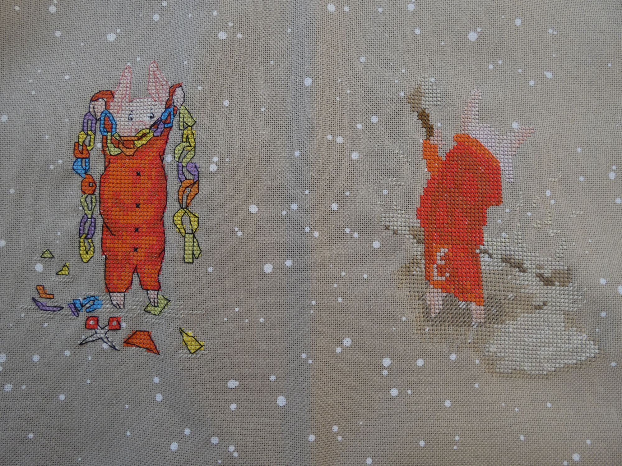 8 декабря 2022 Всем привет! Старт января 2021 года. Тогда мне казалось, что я быстро вышью всех поросят, оформлю в флажки и буду радоваться. Но, как вы понимаете, не сложилось. Поросенок тусил 2 года один. Было так. А недавно, что-то тихонечко тренькнуло в голове, и я решила, что пора. Правда вот честно сама не знаю, будет ли это один товарищ с лопатой или я подтяну остальных. Увидим. Надо сказать, что этот процесс иногда меня ставит в тупик. С одной стороны он мега легкий. Огромные заливки одним цветом, но при этом есть дроби. На фига? Не понятно. И дрова меня убили просто. На скрине есть контраст, ну, какой-никакой, но есть. А вышила и куча блеклого чего-то, чего даже бэк не смог поправить. Добавила темную нитку сверху, чтобы хоть как-то затемнить и сделать малюююсенький объем. А дальше все было, как в тумане. Хотя чего это я удивляюсь. Декабрь же! Время запойно шить бисерные деревяшки. Как обычно куча удовольствия в процессе, и классный результат. Снегирь старт и финиш! Волшебная страна FLK-381 Олень в синем старт и финиш! Волшебная страна FLK-227 Сегодня очень коротко, но уж как есть. Увидимся. vasilisa-1977, makalicha1970, Маса и 46 других сказали спасибо Поделиться сообщением Ссылка на сообщение