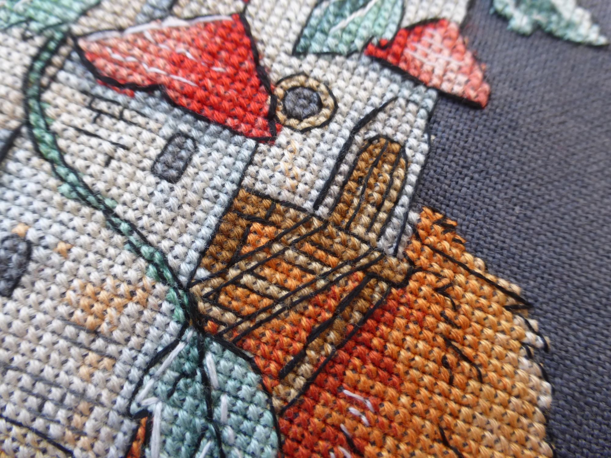 1 декабря 2022 Привет всем! Кажется у меня беда - сломалась стартовалка. Безумно хочется чего-то начать, даже подбираю ткани и нитки, а потом пуффф, и магия не срабатывает. Срочно надо тащить ее в ремонт. А пока эта моя суперсила отдыхает, ее замещает другая. Не менее приятная че уж, но все-таки хотелось бы без перекосов под конец года. Лиса-хранитель дома финиш! Подошел к финишу мой проект по обеспечению меня жилплощадью. И я скрестила уже все, что только можно, чтобы простой закончился. Я уже буквально вся в крестик сложилась - должно помочь! Теперь про саму схему. Не могу назвать Викторию Ивченко легким для меня автором. Дело даже не в сложности схемы какой-то, а непонятной для меня перегрузки конструкций. Прежде всего это касается бэка, потому что с крестиками в целом все нормально. Итак бэк. Большая его часть вышивается черным 310, но в некоторых местах предлагается сделать шерсть почти невидимым серым. Да, я оставляю вероятность незаметности этой нитки тому, что у меня темная основа, но в принципе не понимаю, на фига он здесь? Чуть-чуть на спине. Ой, кстати заметила на фото, что серый распорола, но не сделала черным. Надо исправить. И на попе немного предлагалось тоже. Если это блики света, но он как-то странно падает на лису под разными ракурсами. Мое самое любимое - бэк в 3 нити. И не абы где, а в стенах здания и свесе крыши. Причем не просто аккуратный, а через большие площади дизайна с шагом в половину клетки, чтобы уж точно нельзя было сделать разрыв и закрепиться как-то. Этот бэк начал провисать прямо в пяльцах с хорошей натяжкой. Я естественно спорола его к чертям и сделала в 2 нити и как хотелось. Не думаю, что в мультяшном сюжете это сильно повлияло на результат. А им я осталась довольна. Особенно выбором основы. Гриффиндор! Рон финиш! Выглядит он вполне себе масштабно, но это обман зрения. В парне всего 3к крестиков. Это все чудодейственная работа Линды. Схема отличная, претензий нет. Сделала только одну замену: фрузелки на бисер. Отчасти потому, что фрузики бы потерялись на этой основе. Я же хотела засохших соцветий. Для этого у меня хранится железная коробочка, в которой держу бисер россыпью, по-моему от ягодного набора Чаривны. Оттуда и цепляю примерно подходящие цвета для вот таких небольших бисерных вкраплений. Мечты под луной финиш! Смотрите, кого еще я сегодня принесла. Да готовеньким, а не полуфабрикатом. Моя большая любовь с первого взгляда. Я умею держать долгую паузу. Мы с ним никак не могли воссоединиться полностью аж с 2017 года. Волчок не доставлял мне никаких проблем. Лежал и ждал смирно, шился максимально легко. А в итоге вообще спас мой разум на этой неделе, когда я приходила с работы выжатая, как лимон. Штопать, не задумываясь, одним цветом - это было то, что мне нужно. Теперь мы вместе. Осталось найти подходящий моему принцу задник и обниматься каждый день. Хорошая вышла история любви. Кстати, ниток осталось вагон. НН продолжает сверкать и днем, и ночью. Увидимся. irisheckin, TheSunniestDay, Забава_ и 45 других сказали спасибо Поделиться сообщением Ссылка на сообщение