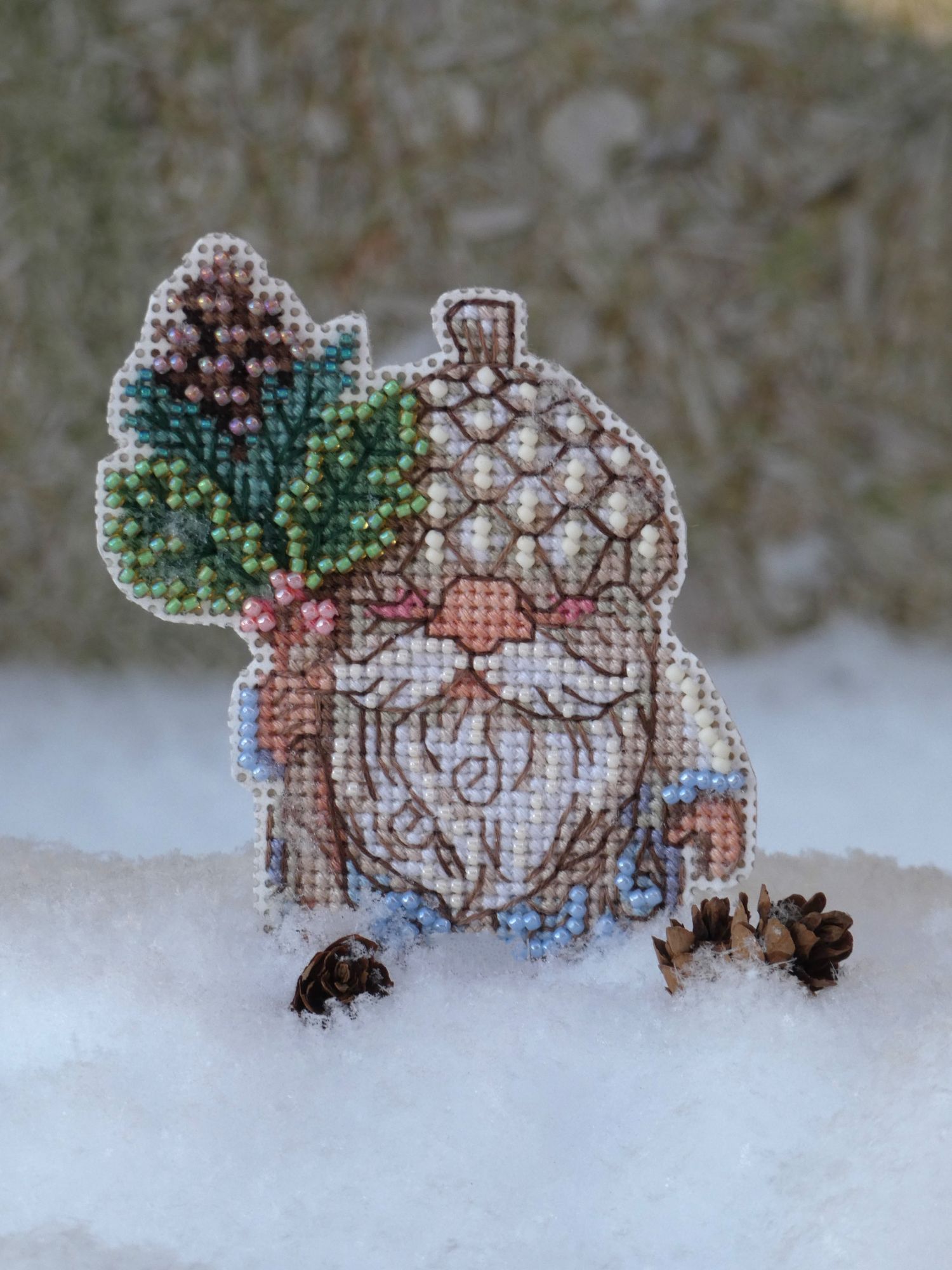 18 января 2024 Всем привет! Кто разошелся: стартует и финиширует, тот я. Все потому, что хочется бисера и небольших дизайнов, которые и дают такой результат. Голубая ель старт и финиш! по схеме vetlanka, размер 74x74 крестика,5 цветов DMC,1 цвет Gamma Сloud,3 вида бисера Toho. Я люблю многие из дизайнов, которые разрабатывает Светлана. Несколько штук уже вышиты с большим удовольствием. Странно бы было, если бы я прошла мимо вот этой прелести. Тем более изначально она была бесплатной. Самым трудным здесь был, пожалуй, выбор основы. Кому-то не нравится, если дизайн вышивают примерно все, а меня это радует. Есть реальная возможность определиться, на чем не хочешь вышивать. До своего отшива я успела посмотреть варианты на рекомендуемой, на темно- и ярко-синей, на светло-голубой вживую. В итоге остановилась на Мурано, 674 Амстердам. На мой взгляд, эта ткань идеальная. В саму разработку внесла ряд изменений. Не стала вышивать крестики нитками по ключу саму елку. Лень было делать все эти закрепки, поэтому взяла мультиколор ДМС примерно похожих цветов. В этом дизайне имхо не критично точное соответствие. Бисерную арку наоборот сделала цветами по ключу, но полукрестом и отзеркалила, чтобы своды смотрели друг на друга. Крупные трежерсы тоже рекомендованные, остальной бисер из запасов. Подбирала, как мне нравится. Красный был обязательным, под него остальное. Елка без красных шариков для меня не нарядная. Дизайн очень простой и очень быстрый. Вышивала с большим удовольствием. Acorn Gnome Старт и финиш! Mill Hill JS20-2314 После НГ также в руки прыгнул гномик от МХ. Желудевый. )))) Он мне понравился больше всего из серии подобных. Спасибо Свете @svetikx за возможность вышить оригинал. Вышивалось весело и быстро. Изначально, казалось, что очень мало в нем бисера. А потом как вышила, как попришивала его. Так гномик и заблестел весь. В наборах МХ магия не крестик/бэк, а крестики/бисер. И это истинная правда. И немного морозного НН напоследок На этом все, увидимся. Juliay, malenta, росомашка и 45 других сказали спасибо Поделиться сообщением Ссылка на сообщение