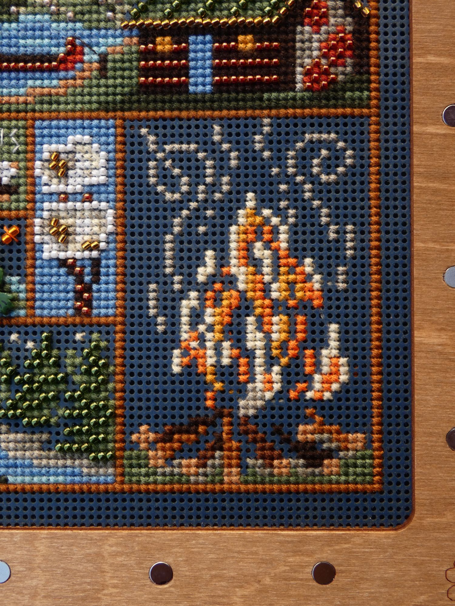 21 марта 2024 Всем привет! Немного пропала, также немного и шью. Но кое-чего есть показать. Коты-рыбаки Было Продолжаю крестовый поход к минус еще одному старенькому процессу. Идет весьма неплохо, если по нитке в день. Все больше появляется упоротых мордах, которые меня неизменно радуют. Бэк на удочках шью, как мне хочется. В схеме он тоже весьма условный, так что решила не заморачиваться и придерживаться только в важных местах, где появляются дополнительные выпуклости. )) В одном из котов немного ошиблась, у меня улыбка на клетку выше, чем надо. Посмотрела на него, он все равно прекрасен, решила не исправлять. Осталось 4 логических куска, и будет финиш. Это здорово! А дальше нет бы взять еще один процесс из старенького. Не-а. Нужен новый. Cabin Fever старт! Mill Hill MH14-0205 Я уже шила подобные сэмплерные зарисовки МХ. Их удобно шить кусочками. Да, и просто соскучилась. Зацените, какой тут бисерочек. Очень яркий и контрастный, а в итоге будет офигенный результат. Шью не очень быстро. Любуюсь магией вышивальщиц, когда к крестикам добавляется бэк бисер. Здесь какой-то нереально красивый светло-сиреневый бисер, который очень сложно сфотографировать, но он балдежный совершенно. Причем, впервые елки бисерятся не обычным зеленым петитом с малиновой серединкой, а этим прекрасным. Живьем восторг, конечно. И каждый раз вспоминаю, как я не люблю шить в 3 нити, но здесь зачем-то это делаю. ))) На этом прощаюсь, увидимся. Marusya1978, Kattrielle, АлёNка и 40 других сказали спасибо Поделиться сообщением Ссылка на сообщение