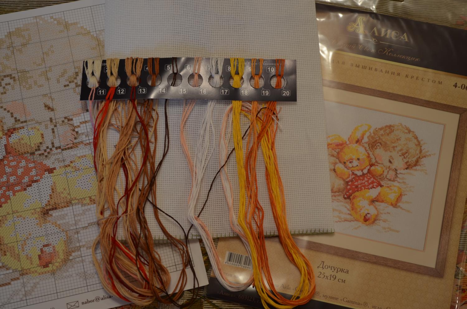 29 июля 2014 Начала вышивать Дочурку от Алисы. Вот что вышито на данный момент. Первый раз вышиваю Алису. И опять убеждаюсь, что не люблю цветные глянцевые схемы. А еще ниточки для меня длинноваты (привыкла к ЗР). В результате постоянно путаются и завязываются в узелки. Некоторые узелки с изнанки успеваю заметить слишком поздно, уже далеко ушла. И еще какая-то не понятная странность, почему-то многих цветов есть пастмы в два раза короче. Я сначала подумала, что это относится к тем цветам, которыми вышиваются крестики в одну нить. Но оказалось, что не все цвета, где есть такие довески, есть крестики в одну нить и наоборот. В общем, загадка этих обрезков для меня осталась не раскрытой. kleona, ОльгаТольна, Elena_F и 8 других сказали спасибо Поделиться сообщением Ссылка на сообщение