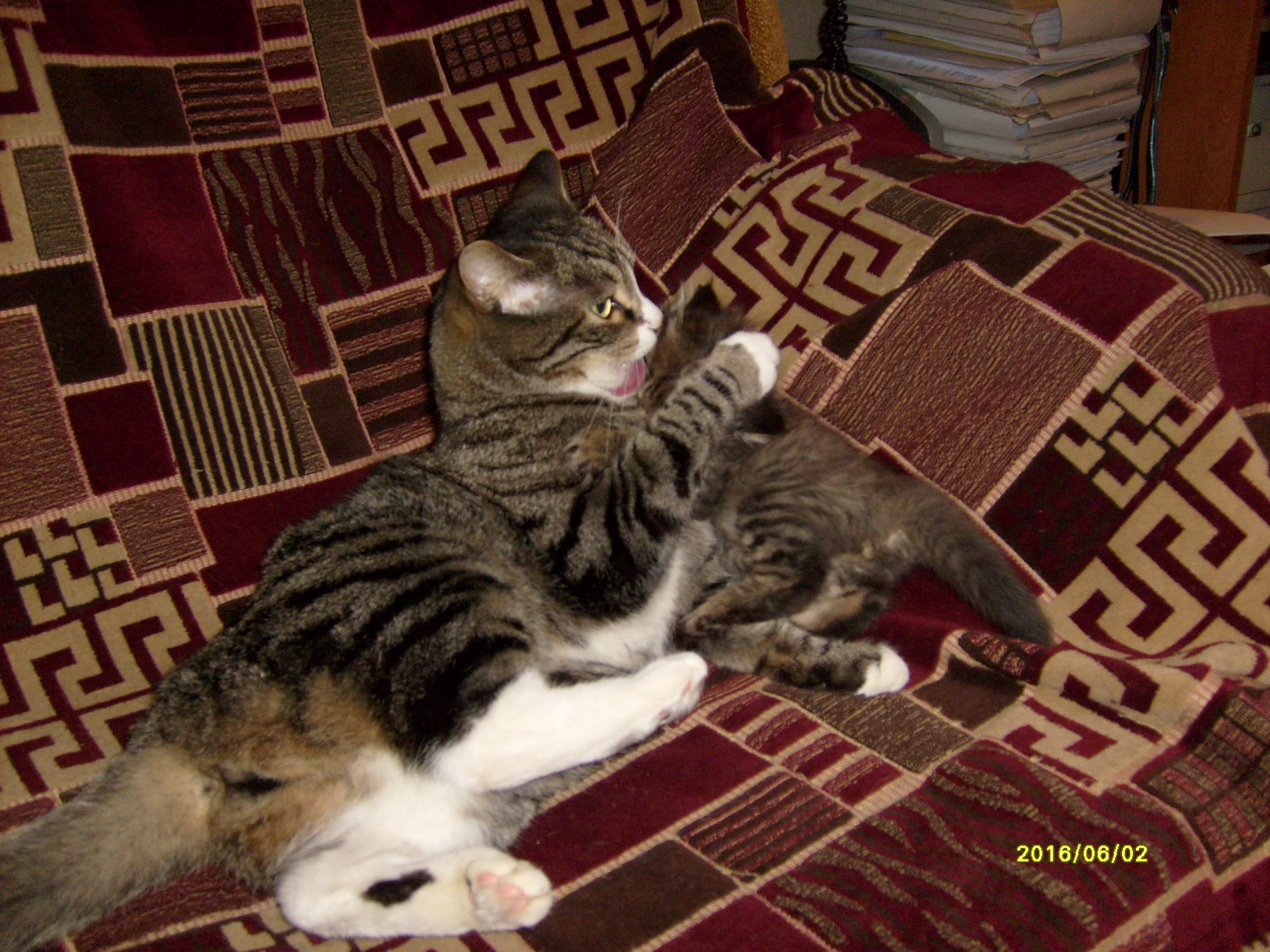 4 июня 2016 3 часа назад, Mary_NN сказал: У нас из старшего поколения остался Яша, был еще до этого перс и сибирский кот,к сожалению они уже были старенькие ,когда мы брали Яшу и покинули этот мир ((.когда брали Яшу сибиряк и перс приняли его благосклонно,война была у нас когда к персу привели взрослого сибиряка,нам его подбросили по дверь со сломанной ногой 2 января. Вот перс его естественно не принял, была война,шипение под дверью и драки,перс его так и не принял до конца дней,чуть что шипел и злобно рычал. Тут мне кажется зависит от породы и от пола. Конечно,приводя взрослого кота к взрослому коту вряд ли они будут счастливы )а с котенком попроще,хотя когда к Яше привели Каспера он тоже шипел первые 3 дня и прятался под кровать,сейчас уже ничего ,спустя неделю П.с на фото сразу три красавца,сибиряк Василий,перс Брендон и Яша У нас мохнатые появляются котятами. Причем долгое время жили вместе брат и сестра (стерилизованные) Яша и Маруся. Яшка умер на 16 году жизни, рак и лечение доставляло только новые страдания (ужасно трусливый, любой новый человек и у кота истерика), появившаяся после Яши Шкода (сняли с дерева) продлила Марусе жизнь на четыре года. Хотя Маруся ее и не приняла. Но шкодливый котенок заставлял двигаться, исключение место для кормления и туалет. А так иди и бойся, что тебя представят оленем, а себя охотящимся барсом. Вовчика принесли (он сам подобрал меня на улице: прицепился к брюкам) тетки его обшипели, а потом до Шкоды дошло, что "игрушка" живая: сама бегает, можно таскать в зубах, можно вылизывать. А вот к Тайсону другое отношение: еле терпит. Вроде и рычать перестала, но и вылизывать не собирается. Stefany, Mary_NN, АриЯ и 4 других сказали спасибо Поделиться сообщением Ссылка на сообщение