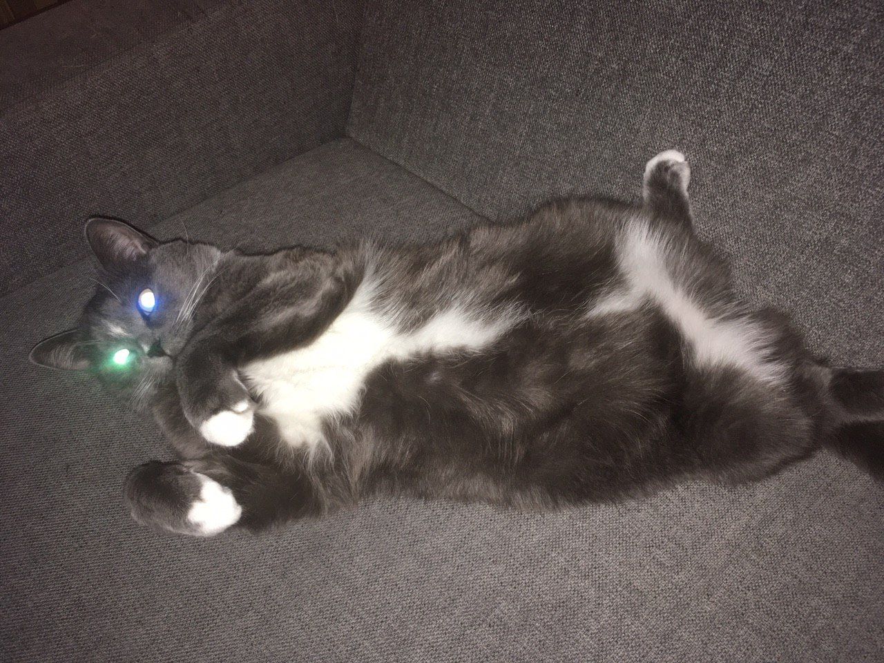 16 июня 2020 Купила новую котеточку, побольше и покрасивее, а то старую уже пообдирали. Раньше в качестве лежанки она только Ришу (черного) привлекала. А новую и Кузя заценил. Сегодня Риша пришел полежать, а там занято, упс. В итоге пытался и так и сяк уместиться, получилось с трудом: Лапа все равно не влезла) nogres, Маняша, Хозяйка смешных зверей и 29 других сказали спасибо Поделиться сообщением Ссылка на сообщение