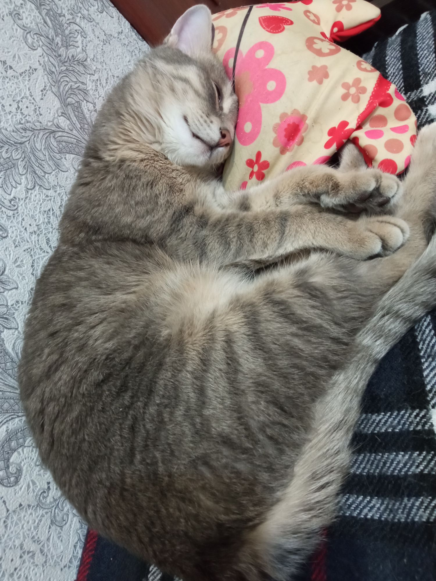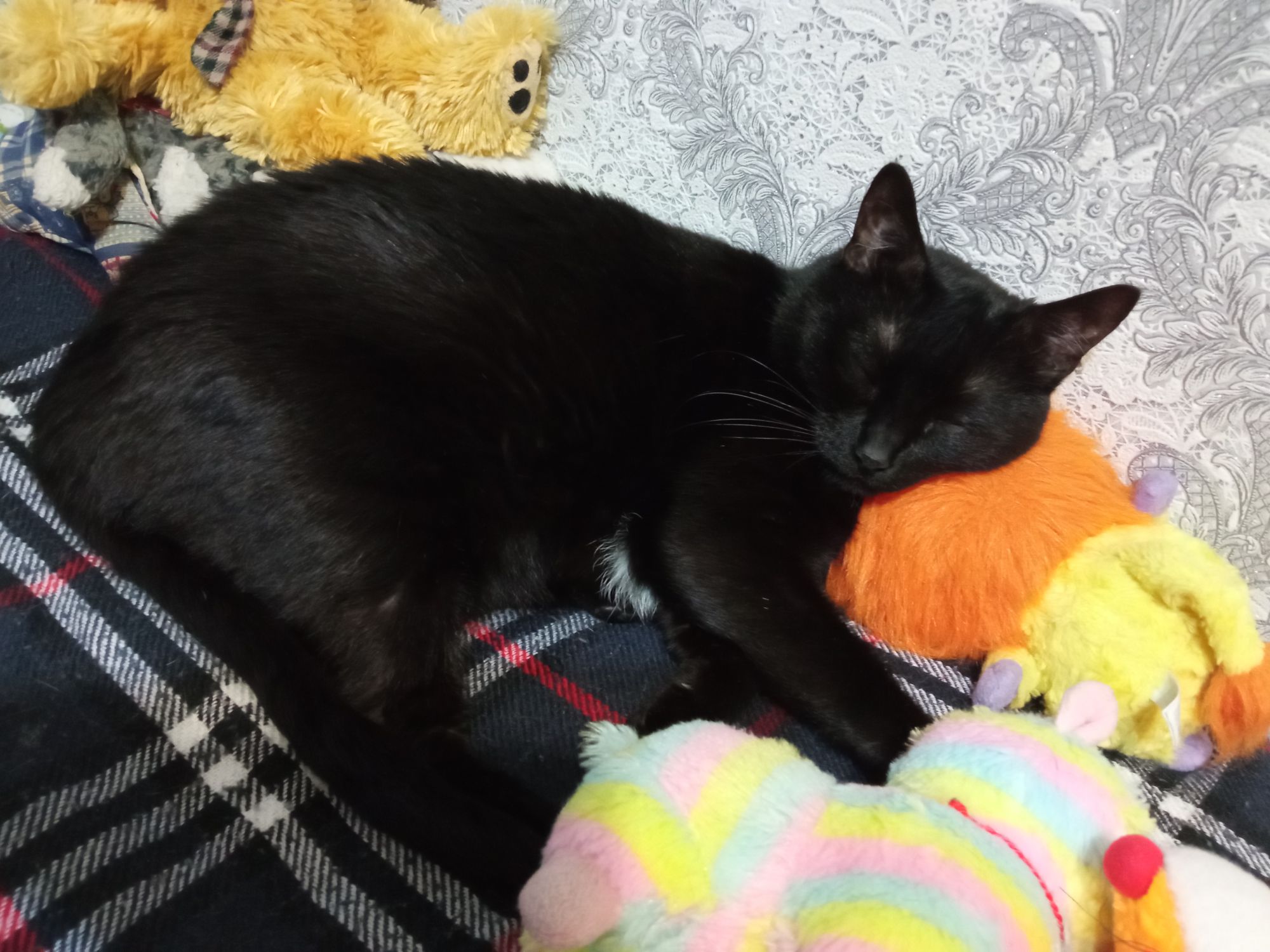 7 марта 2021 Это наш Кузя, я про него давно писала в этой теме. Кузя прожил с нам 15 лет и ушел в июне этого года. Он долго боролся, но рак печени не дал шансов. Ушел у нас на глазах. Рядом с его могилкой посадили сирень. Вспоминать тяжело и еще тяжелее было представить на его месте кого то другого. Мы и не думали брать Кузе замену. Но судьба распорядилась иначе. И вот в конце августа подруга старшего сына попросила покормить только что подобранного котика, пока она в отьезде. Мы поехали вечером в пустую квартиру, а там.... сидит в туалете на пальто орущее существо, грязно-серого цвета, под хвостом, извините, какахи присохли, кучки по полу. И глядят на нас два молящих глаза - голубой и карий. Девушка его прям перед отьездом подобрала на дороге, успела только в ветеринарку сьездить, где ему сделали снимок - перелом бедра. Она через 3 дня возвращалась, но разве мы могли оставить его одного? Привезли домой, на следующий день в ветеринарку - опять снимок и сразу же забрали на операцию. Вот такого отдали. Еще и кастрировали сразу. В бедре спица, блох выводили, а мыть его нельзя после операции, в ушах клещи, проблемы с ЖКТ, кальцевироз , стоматит. Шкурка вся серая от блошиных испражнений. Постоянного из него этот "мак" сыпался. Спал с нами на подушке сразу. Иногда придет ночью, воротник в какаках - измазал, пока зарывал свои дела. Мордочку в воротнике положит на руку - спит. Так ему удобно. Два месяца в воротнике, пока не вынули спицу и шов не зажил. Было ему 6-7 месяцев. Никто его не искал, никто не откликнулся. А котик явно домашний был - лоток сразу и на все дела. Что с ним был до того, как его подобрали, откуда травмы - страшно представить и стараемся не думать. Сейчас она наш - любимый, роднулька, самый красивый, ласковый Томас Альбус Дамблдор. Очень скучает один, вернее - скучал. Потому что есть теперь у него подруга и сестра, и дочка, и головная боль - Зосильда Белль, а в просторечие Зося (она же Пипидастр, она же Чередилка) Сегодня ей 4 месяца. И 2 месяца как она у нас дома. Опять же девушка сына нам ее "покинула". Но мы рады - пришлась ко двору, с Томасом сразу же подружилась. А он оказался такой папа нежный. вот такая теперь у нас семья. Пумочка-13, Г@лина, снежик и 48 других сказали спасибо Поделиться сообщением Ссылка на сообщение