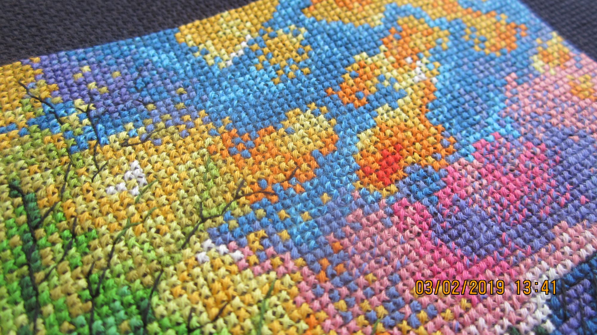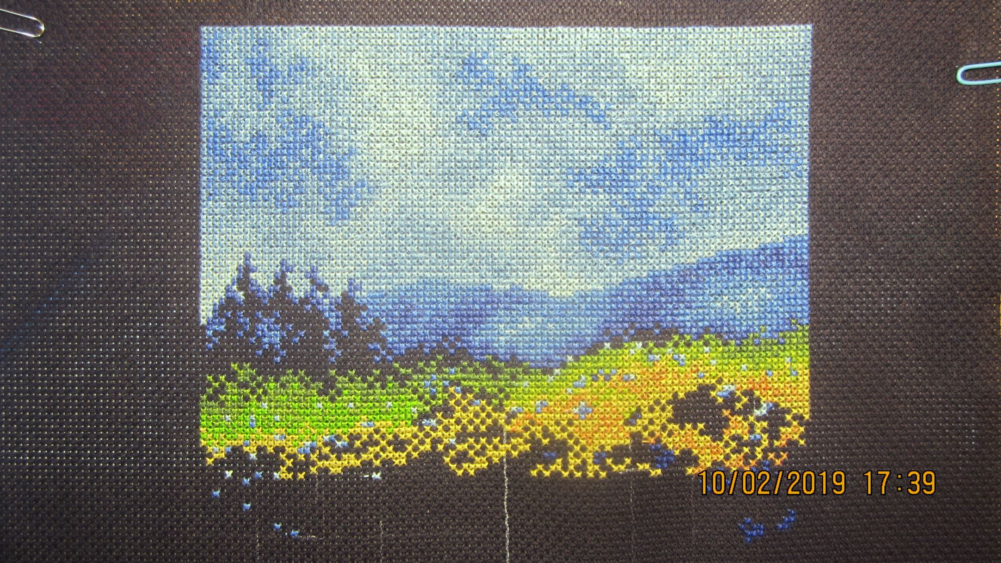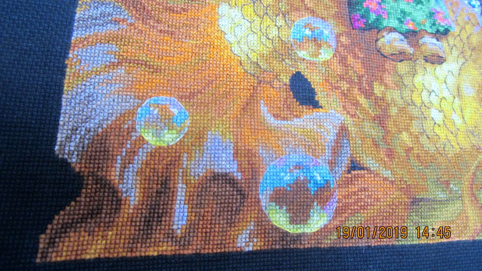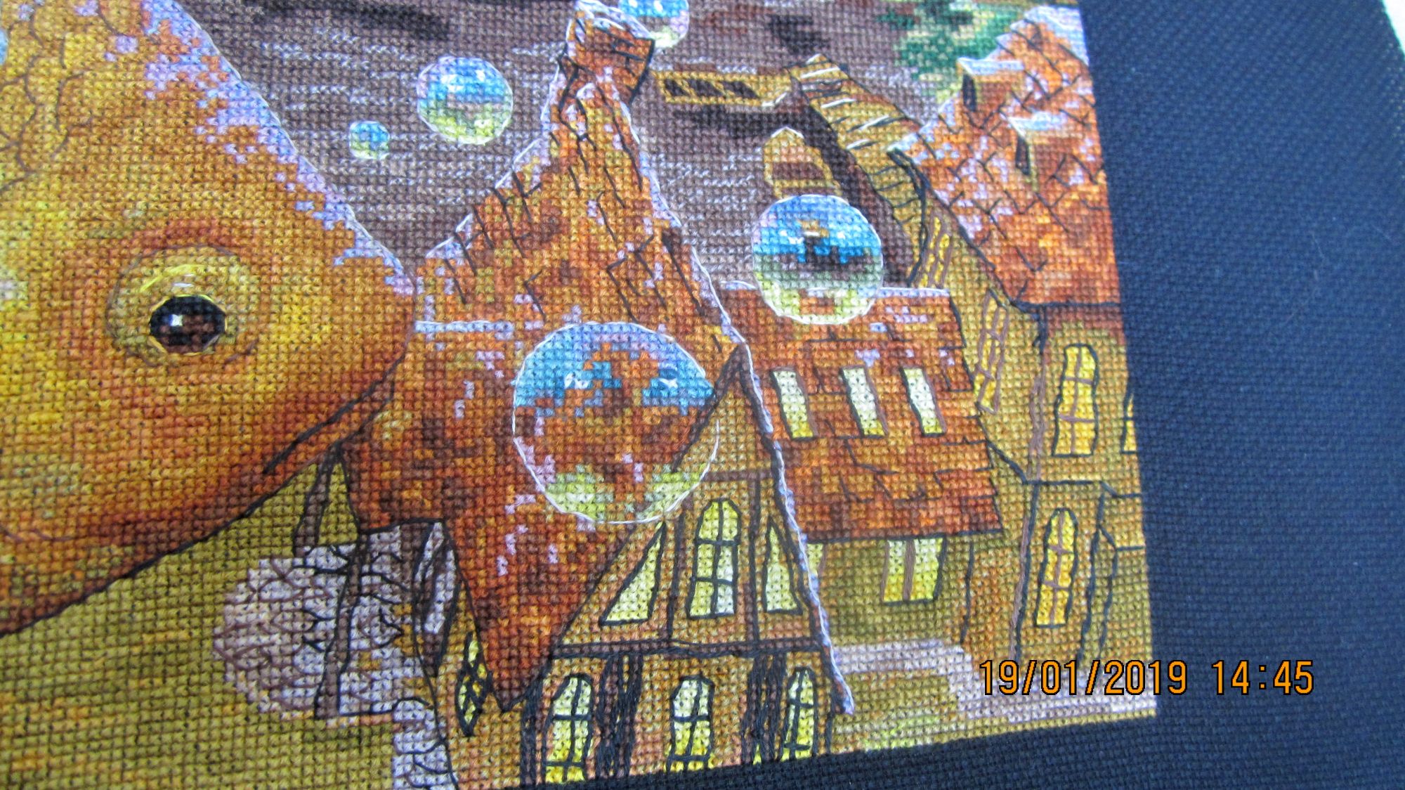 19 января 2019 Вот и закончился очередной процесс :(. Вместо фр.узелков приклеила стразы. В вечернем освещении они сияют, как настоящие звезды. В процессе вышивки использовала маркер белого цвета для разметки. Как обычно, по завершении, постирала готовую вышивку в холодной воде. Маркер смылся, но.... после того как все высохло...о ужас! ...он появился вновь :(. На помощь пришла смекалка :), закрасила проявившиеся белые полосы карандашом для подводки глаз. Он мягкий и на черной канве он не виден. Повезло :)! maria7909, nogres, sunny981 и 3 других сказали спасибо Поделиться сообщением Ссылка на сообщение