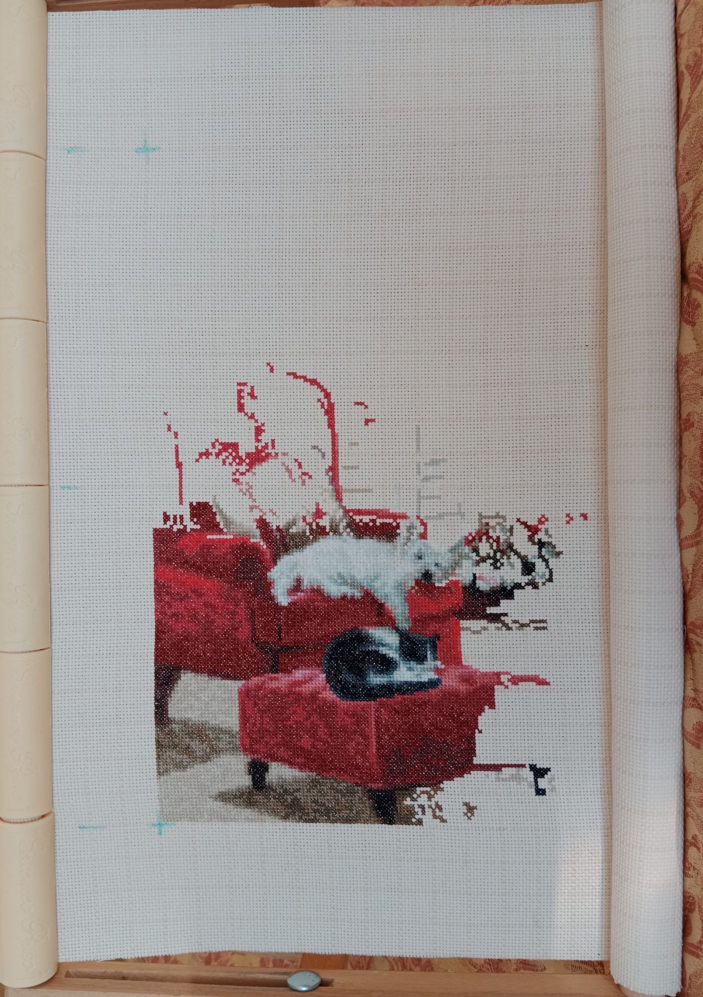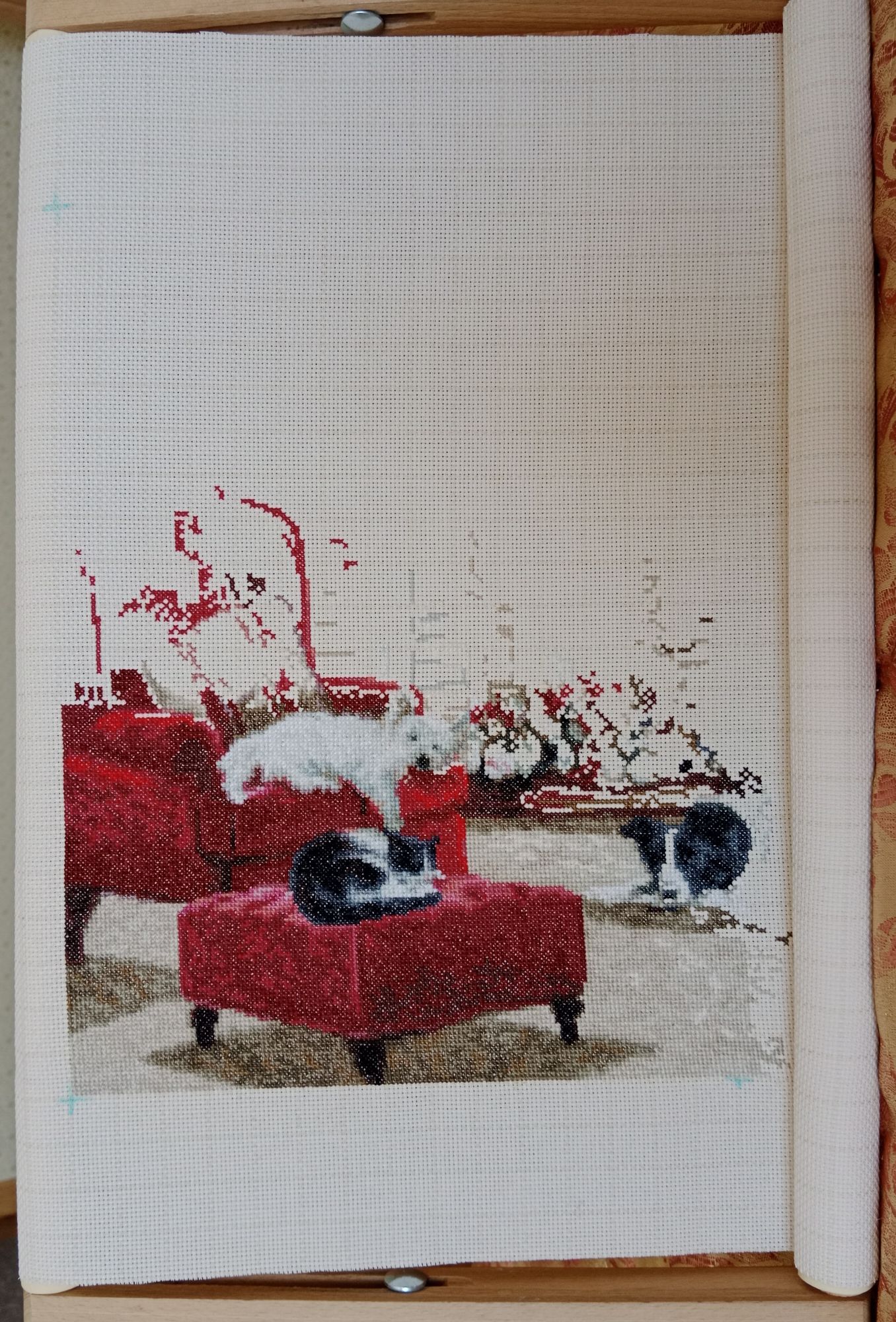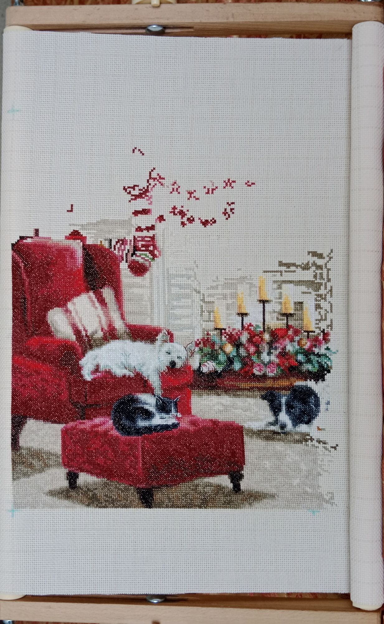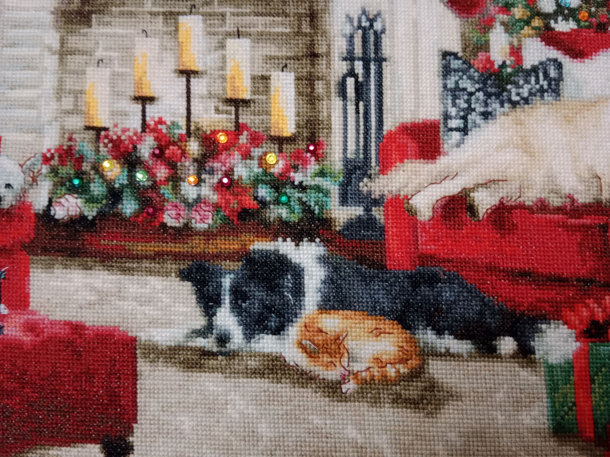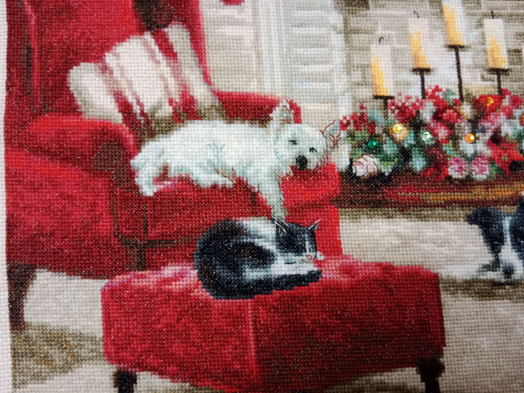 26 февраля 2023 19 часов назад, doboninasveta сказал(а): Начала набор от Luka-S BU5013 "Домашние питомцы". Не отпускает меня новогодняя тема :), да и очень радостно вышивать яркие красные тона. Вышиваю по Saga, а не с бумажной схемы. Немножко из-за этого промахнулась... Решила вышивать сюжет под 90°, переворачивала схему и нечаянно нажала на "трансформацию", а заметила что что-то не так на третий день вышивки. Переделывать не стала, вышивка и в таком виде тоже хороша. Готовность 34%. Перекликается с похожим новогодним интерьером в стиле прованс... Тоже красота будет!)) doboninasveta сказал(а) спасибо Поделиться сообщением Ссылка на сообщение