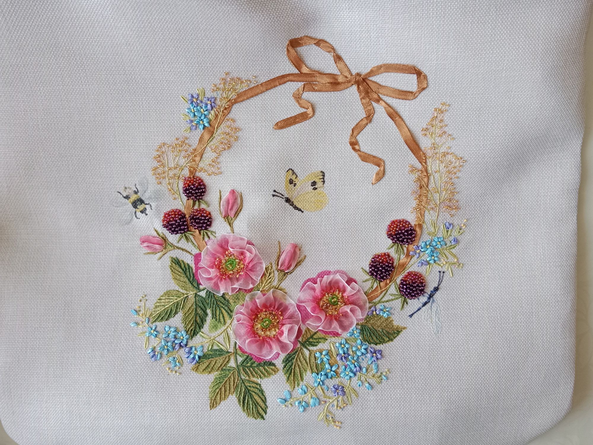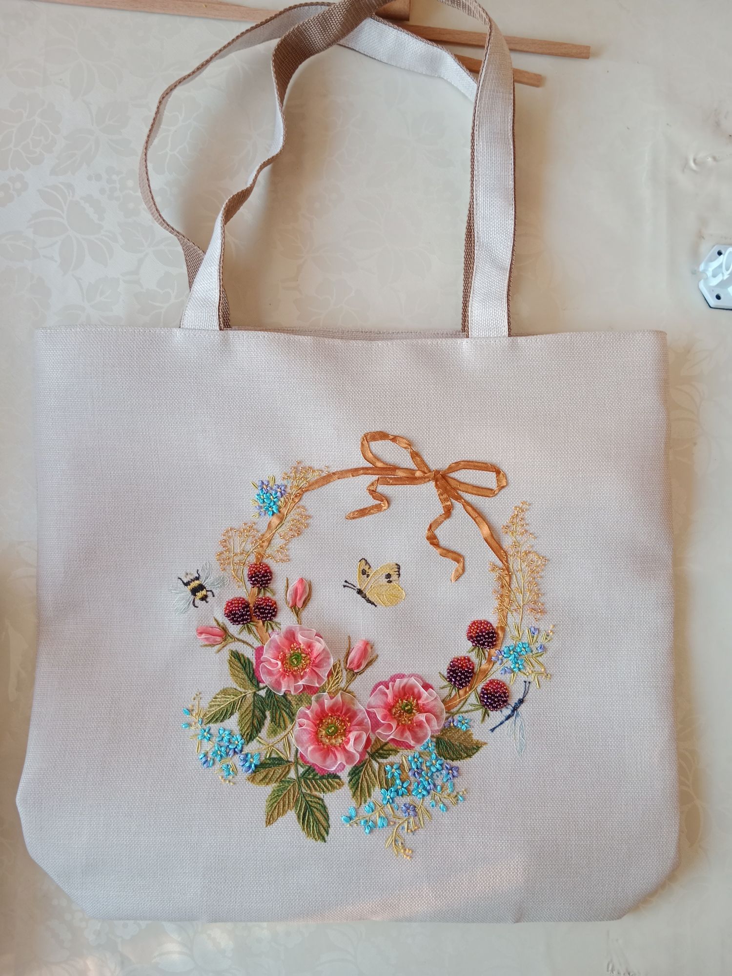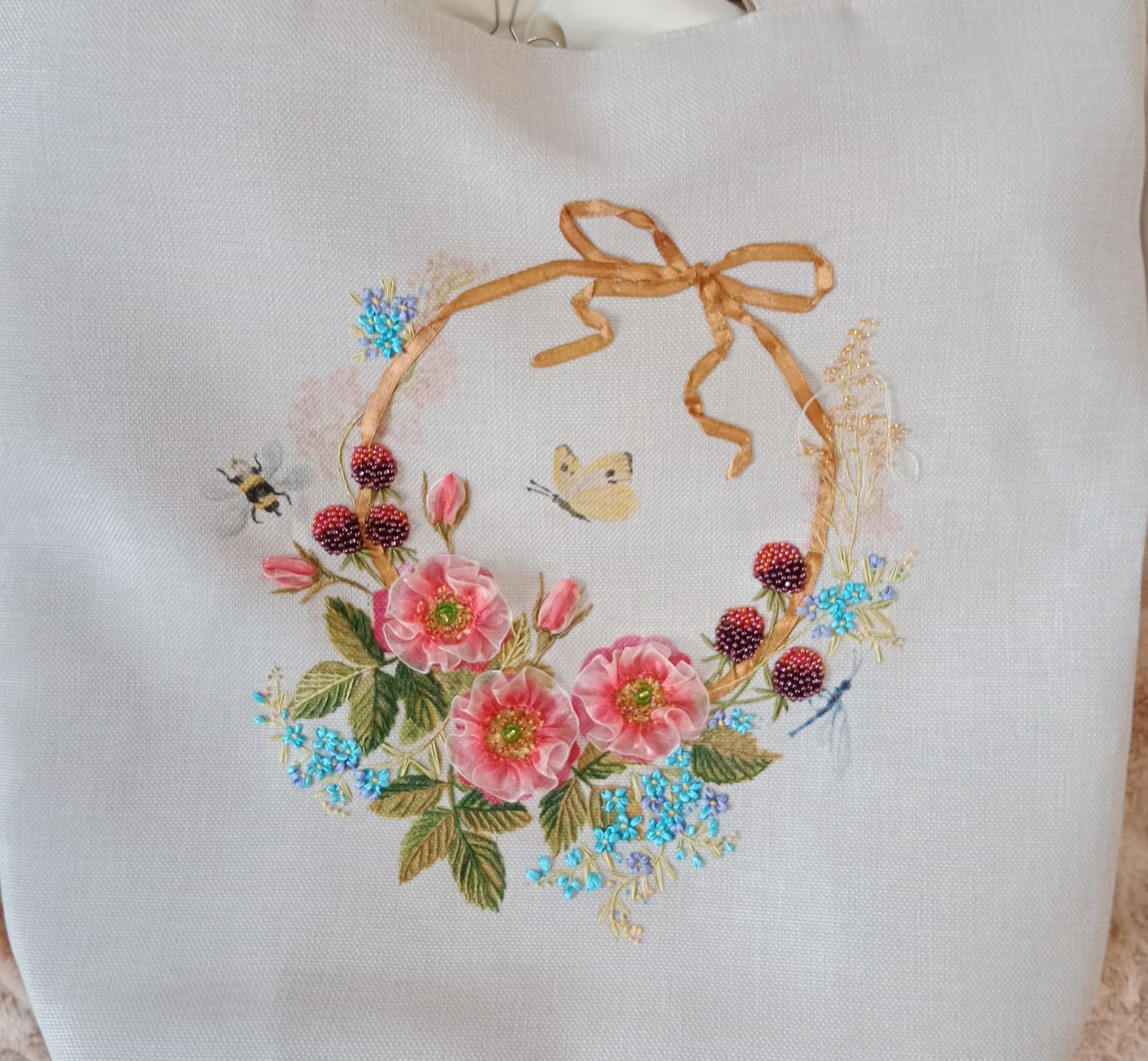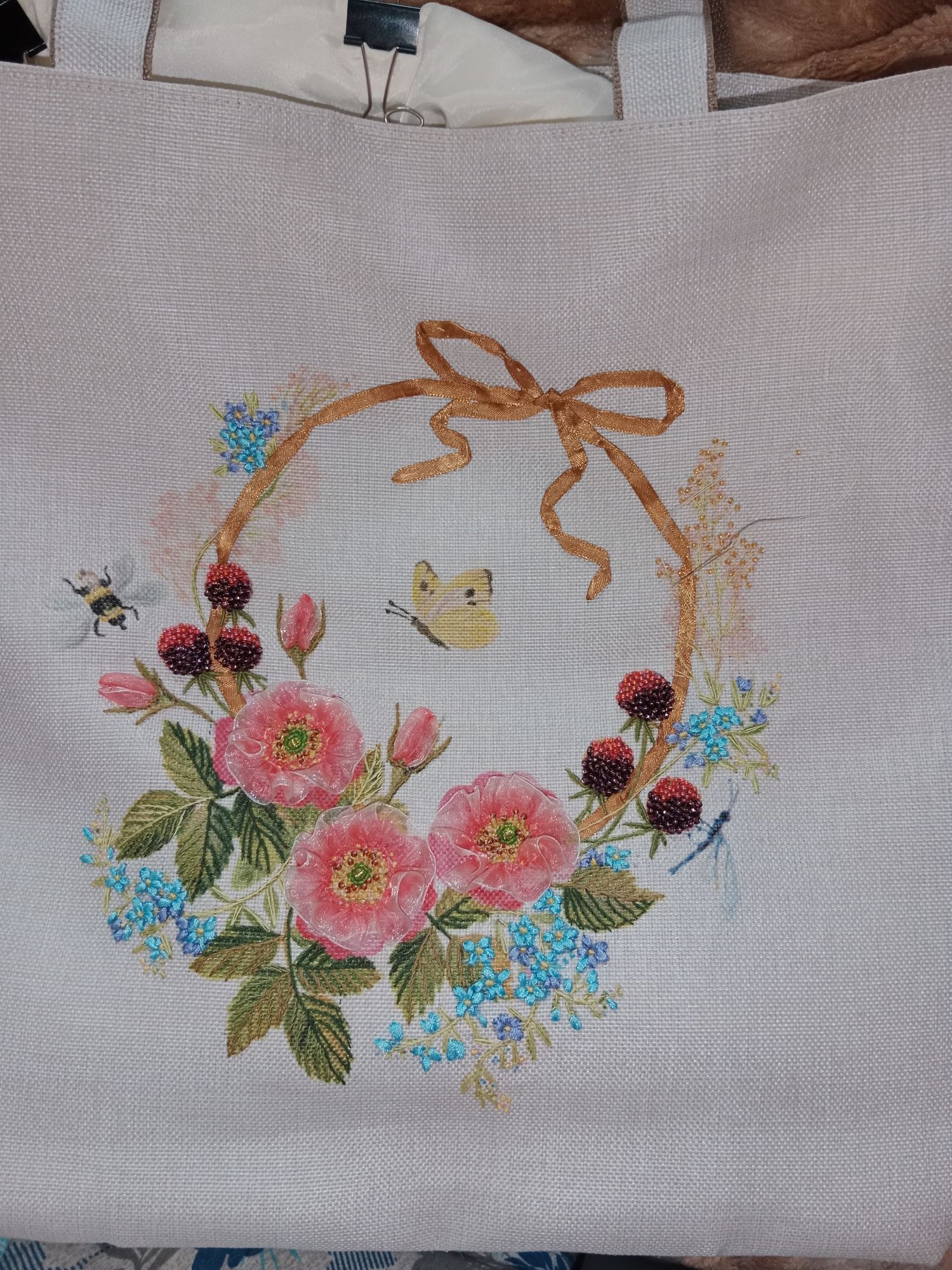 12 июля 2023 Наконец-то у меня дошли руки до летней сумочки от Матренин посад арт.8520 "Летний венок". Не скажу что справилась легко. Некоторые элементы перешивала три раза. Не нравилось как получилось и все тут... Самое сложное оказалось шить без пялец, без лупы . Приходилось держать вышивку на руках, крутить ее по всякому, снимать очки, т.к. в них мелких деталей не вижу. Неудобства существенно замедлили процесс. Но по другому было не вышить, т.к. сумочка в наборе в готовом виде, только подклад не зашит. Справилась за 10 дней. В предвкушении выхода с ней "в люди". Показывала ее домашним, всем понравилась :). svetlana62, Ярославовна, Океан и 7 других сказали спасибо Поделиться сообщением Ссылка на сообщение