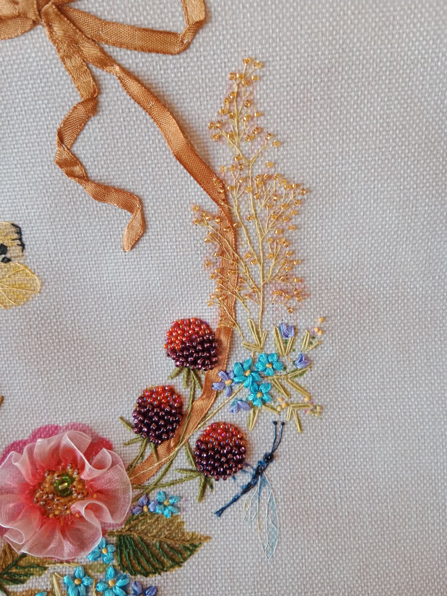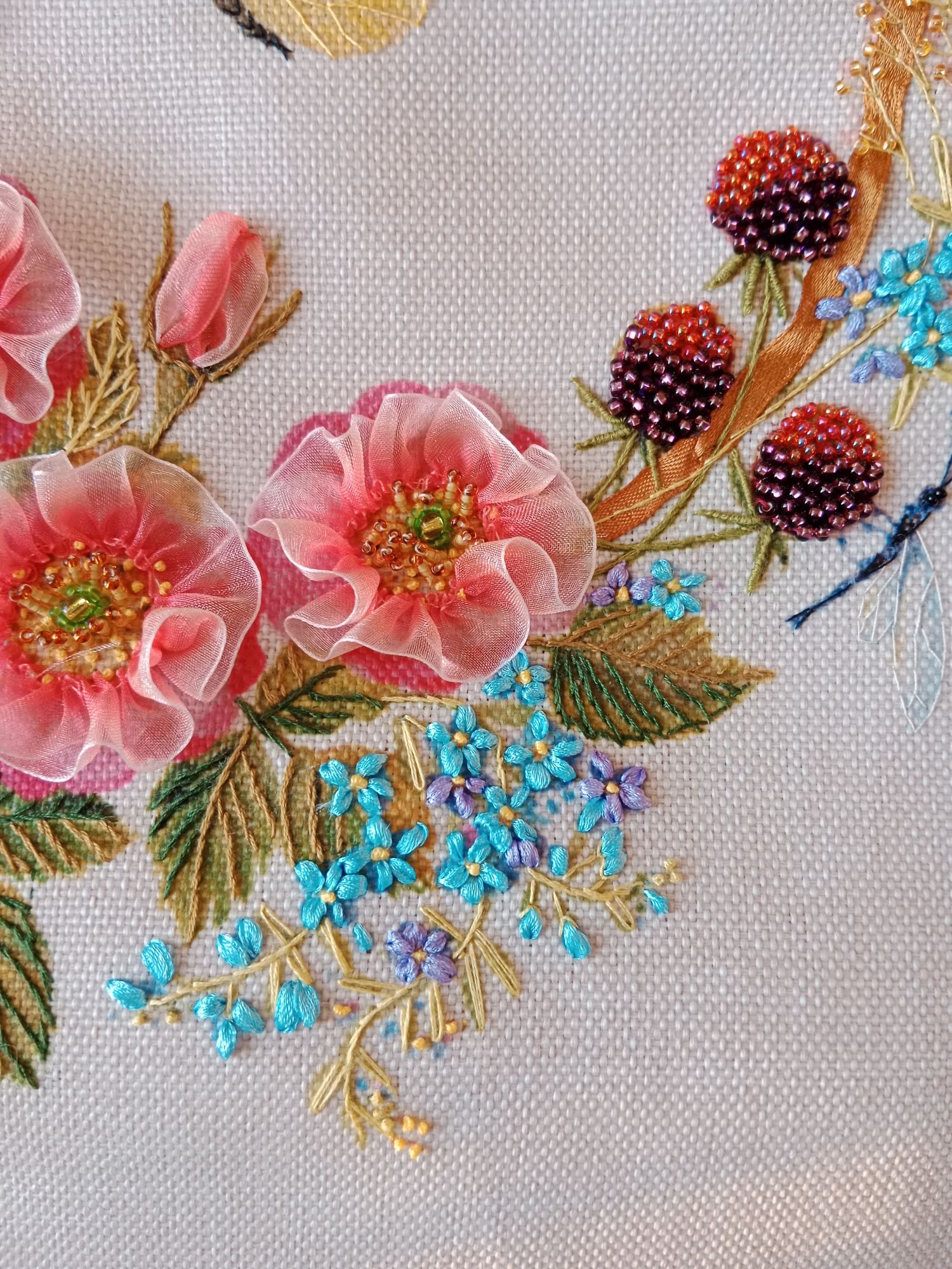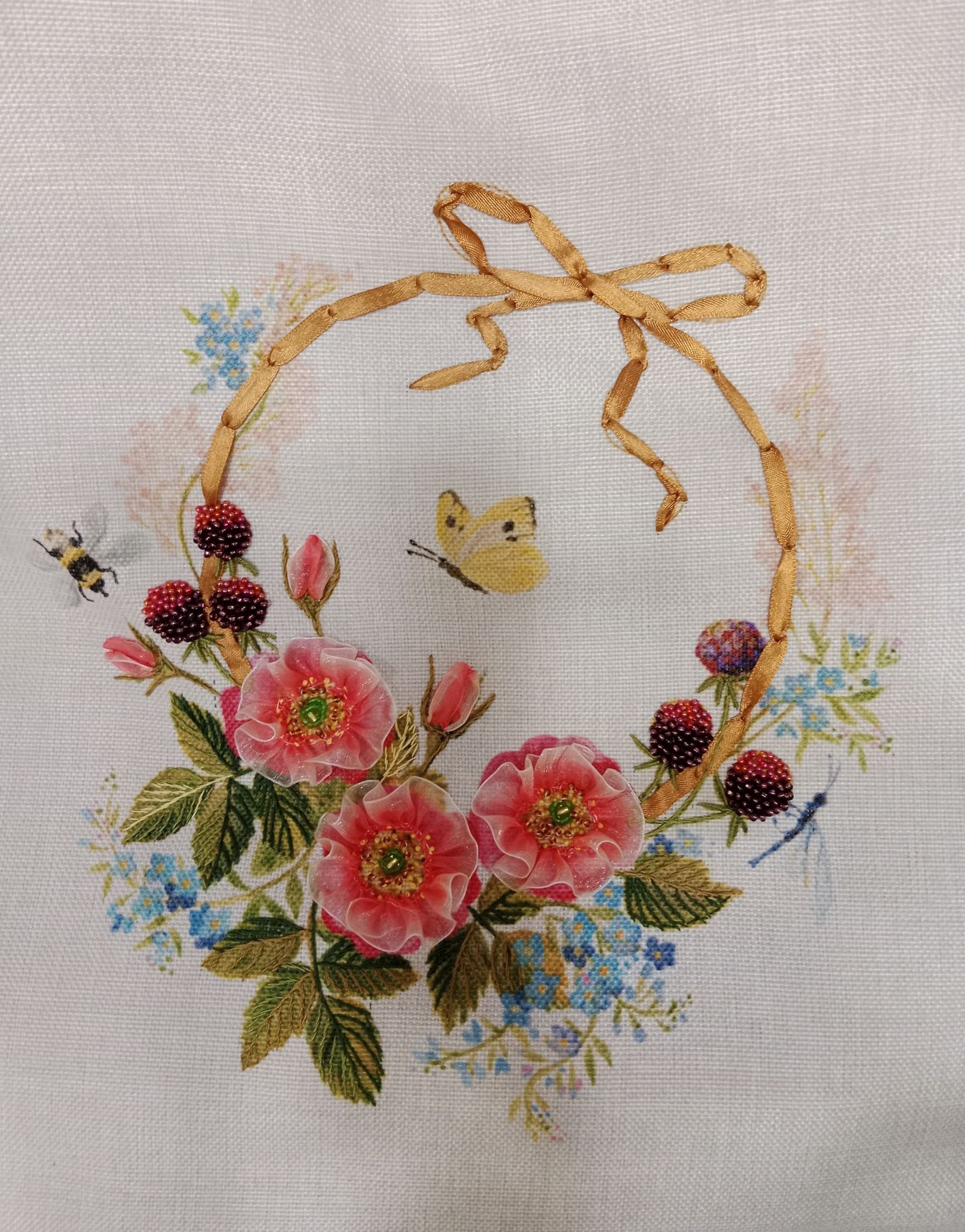 12 июля 2023 Наконец-то у меня дошли руки до летней сумочки от Матренин посад арт.8520 "Летний венок". Не скажу что справилась легко. Некоторые элементы перешивала три раза. Не нравилось как получилось и все тут... Самое сложное оказалось шить без пялец, без лупы . Приходилось держать вышивку на руках, крутить ее по всякому, снимать очки, т.к. в них мелких деталей не вижу. Неудобства существенно замедлили процесс. Но по другому было не вышить, т.к. сумочка в наборе в готовом виде, только подклад не зашит. Справилась за 10 дней. В предвкушении выхода с ней "в люди". Показывала ее домашним, всем понравилась :). svetlana62, Ярославовна, Океан и 7 других сказали спасибо Поделиться сообщением Ссылка на сообщение