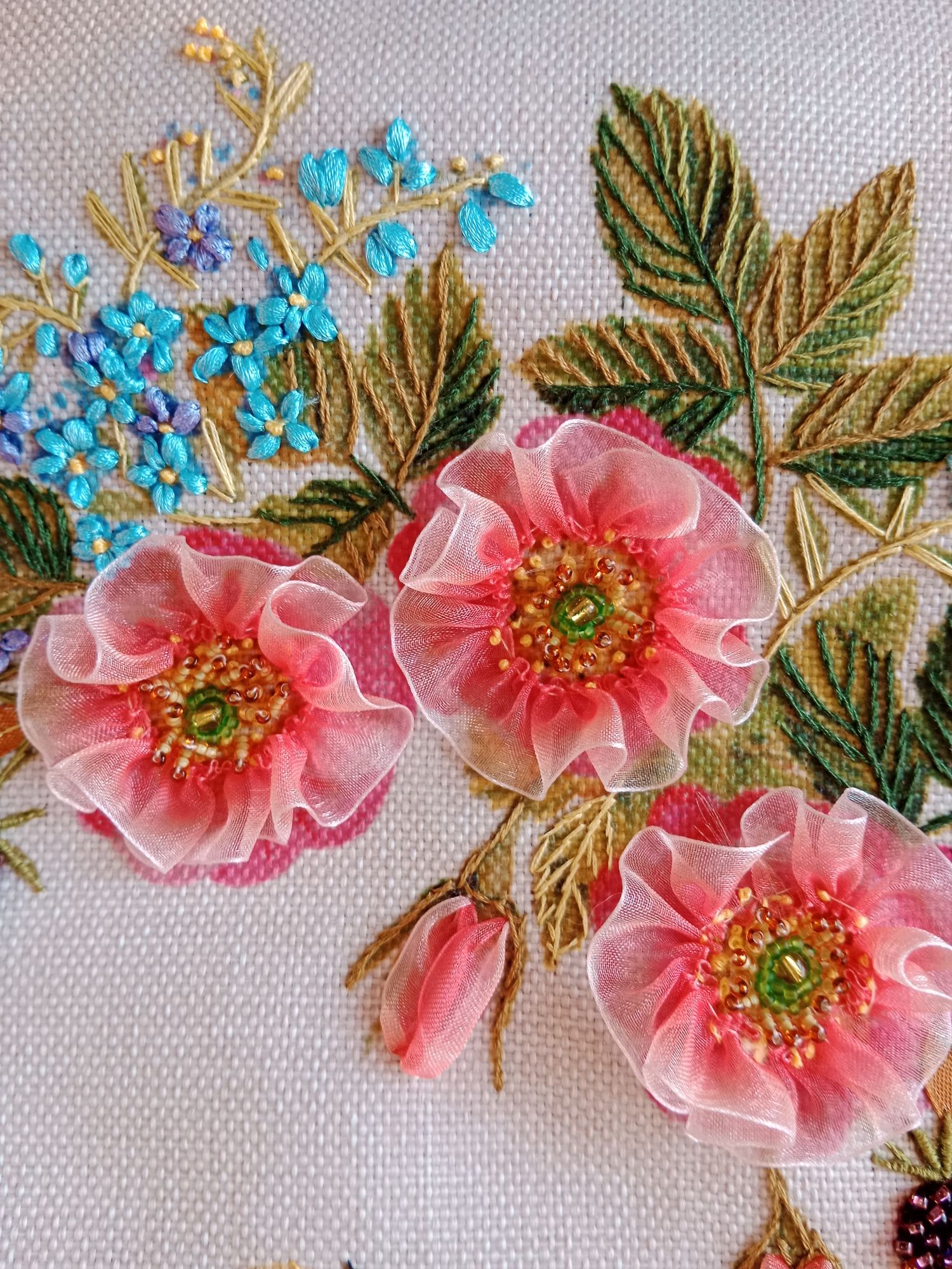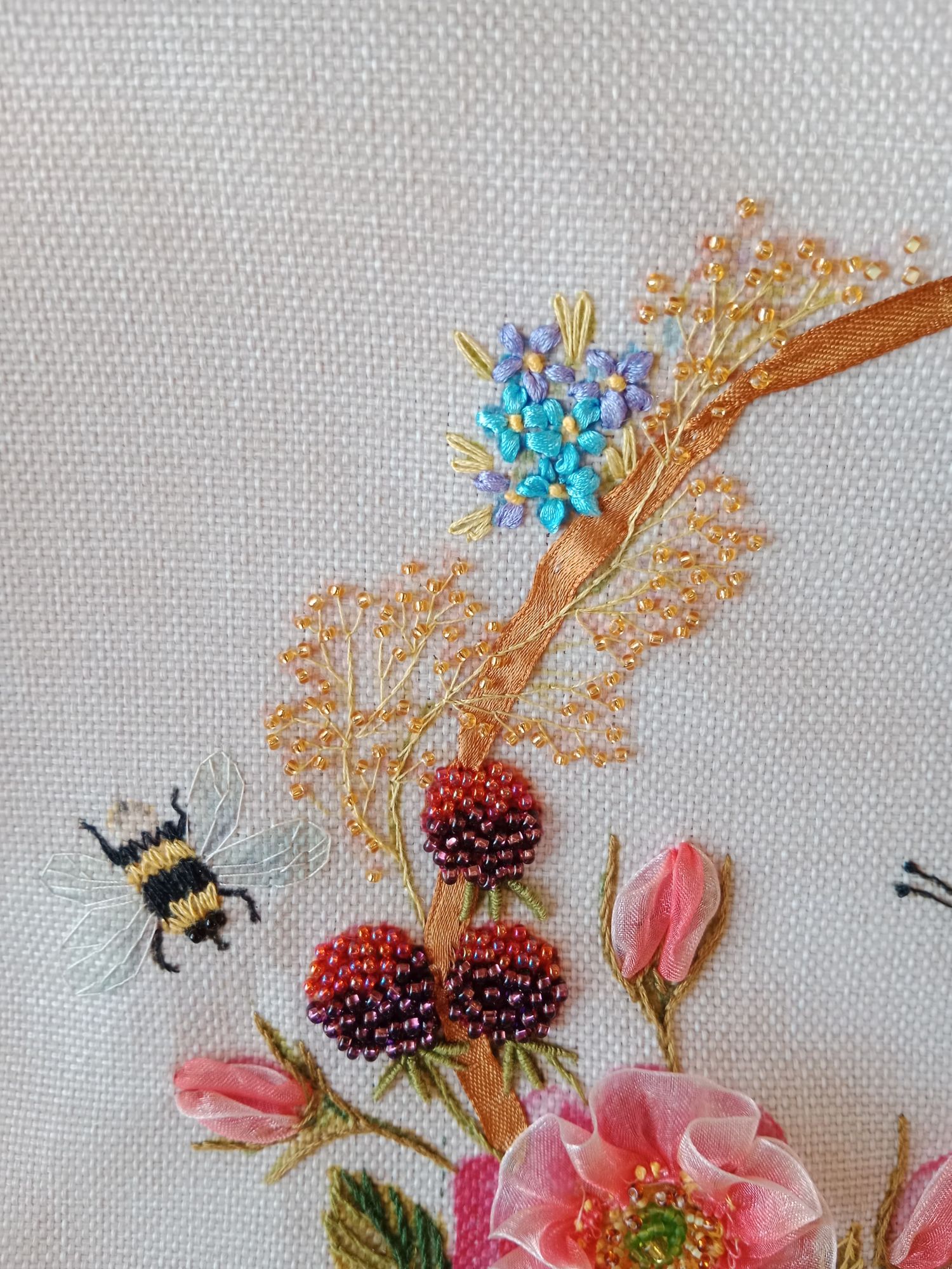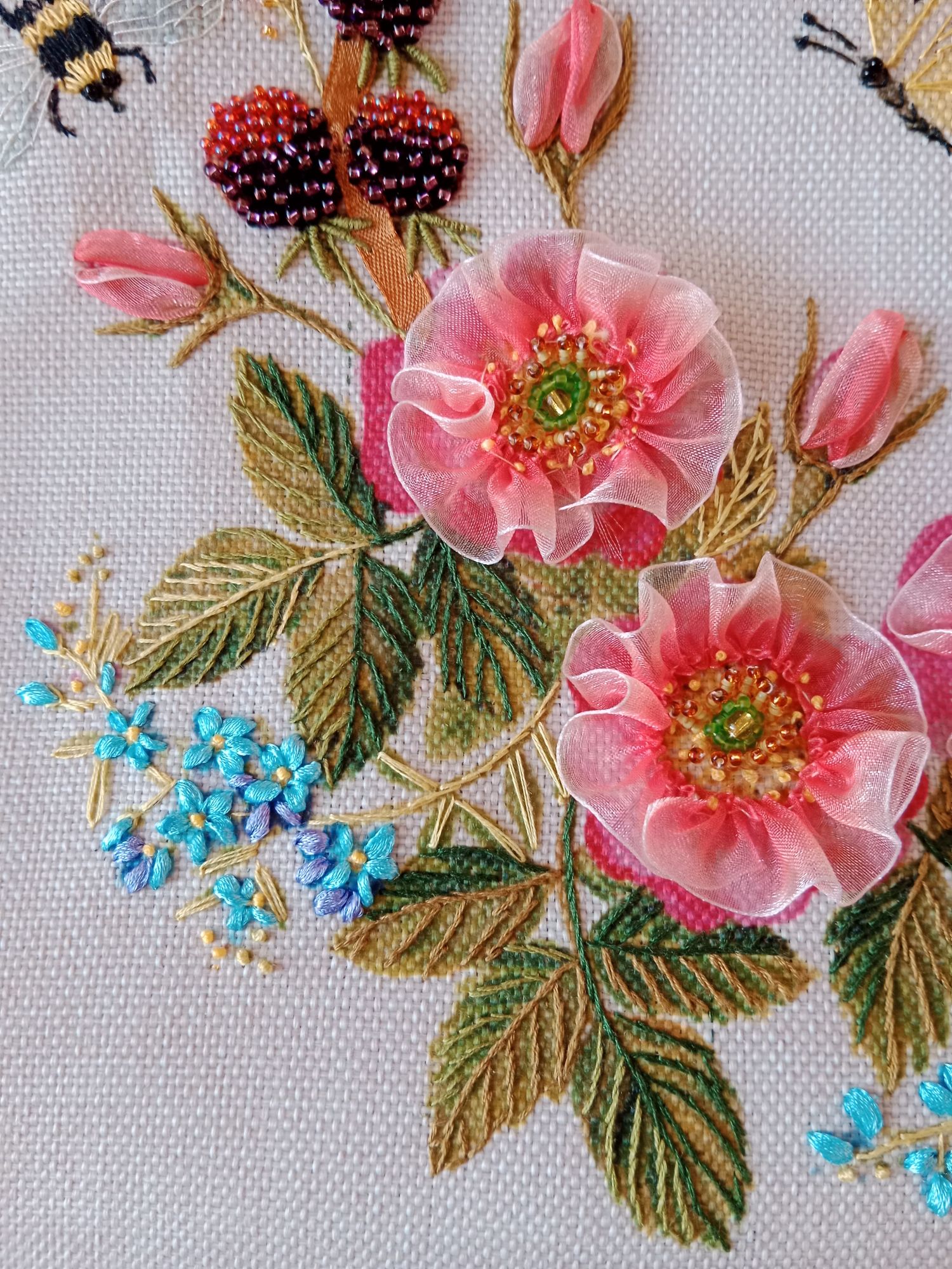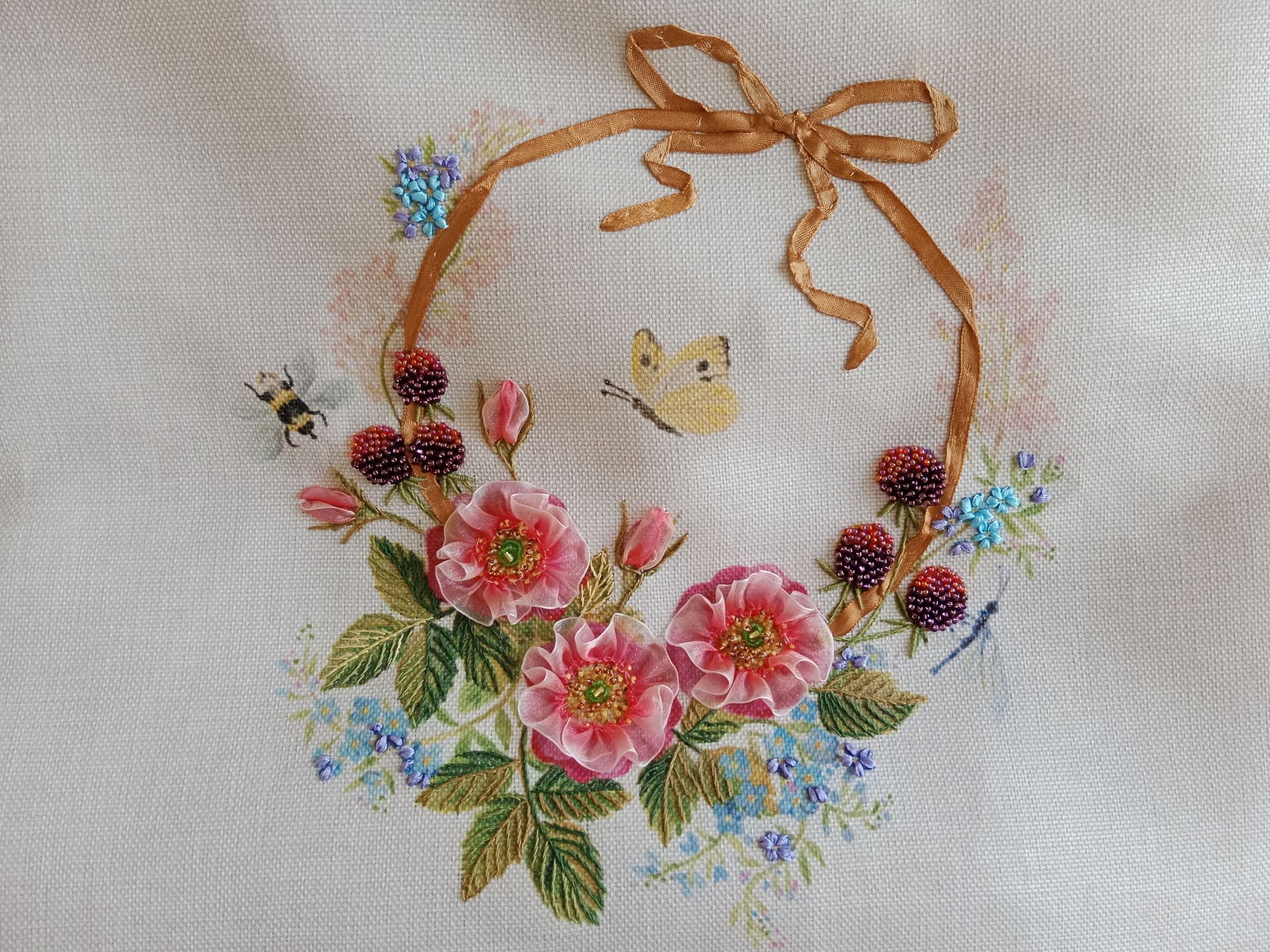 12 июля 2023 Наконец-то у меня дошли руки до летней сумочки от Матренин посад арт.8520 "Летний венок". Не скажу что справилась легко. Некоторые элементы перешивала три раза. Не нравилось как получилось и все тут... Самое сложное оказалось шить без пялец, без лупы . Приходилось держать вышивку на руках, крутить ее по всякому, снимать очки, т.к. в них мелких деталей не вижу. Неудобства существенно замедлили процесс. Но по другому было не вышить, т.к. сумочка в наборе в готовом виде, только подклад не зашит. Справилась за 10 дней. В предвкушении выхода с ней "в люди". Показывала ее домашним, всем понравилась :). svetlana62, Ярославовна, Океан и 7 других сказали спасибо Поделиться сообщением Ссылка на сообщение