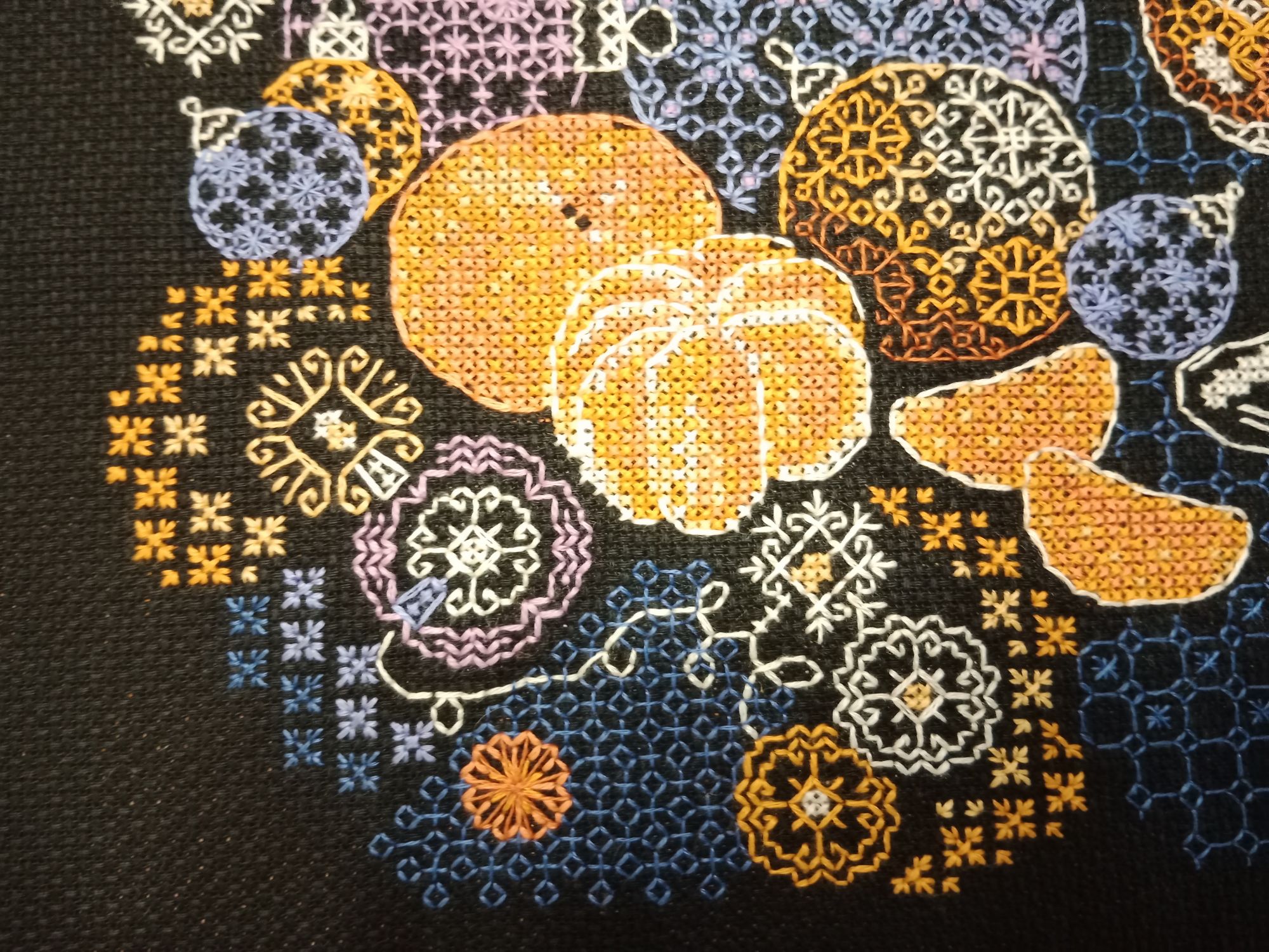7 января 2024 Первый раз вышивала набор с блэкворком. Вроде просто, однако оказалось не так. Из 9 вышивальных дней один потратила на распаривание и вышивание вновь некоторых участков. Черная канва, четкий геометрический рисунок ошибок не терпят, все сразу видно :(. Результат радует. Bogdan, magik, Lena_Dm и 7 других сказали спасибо Поделиться сообщением Ссылка на сообщение