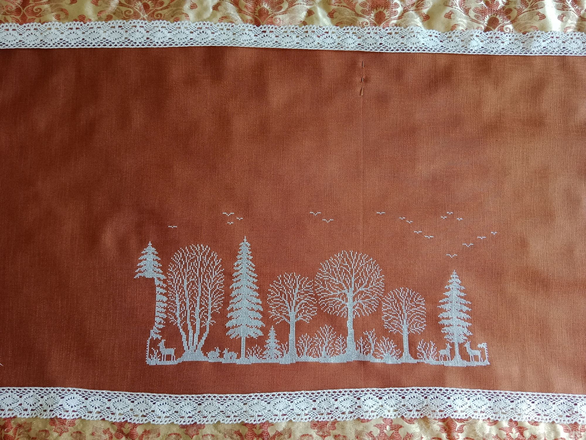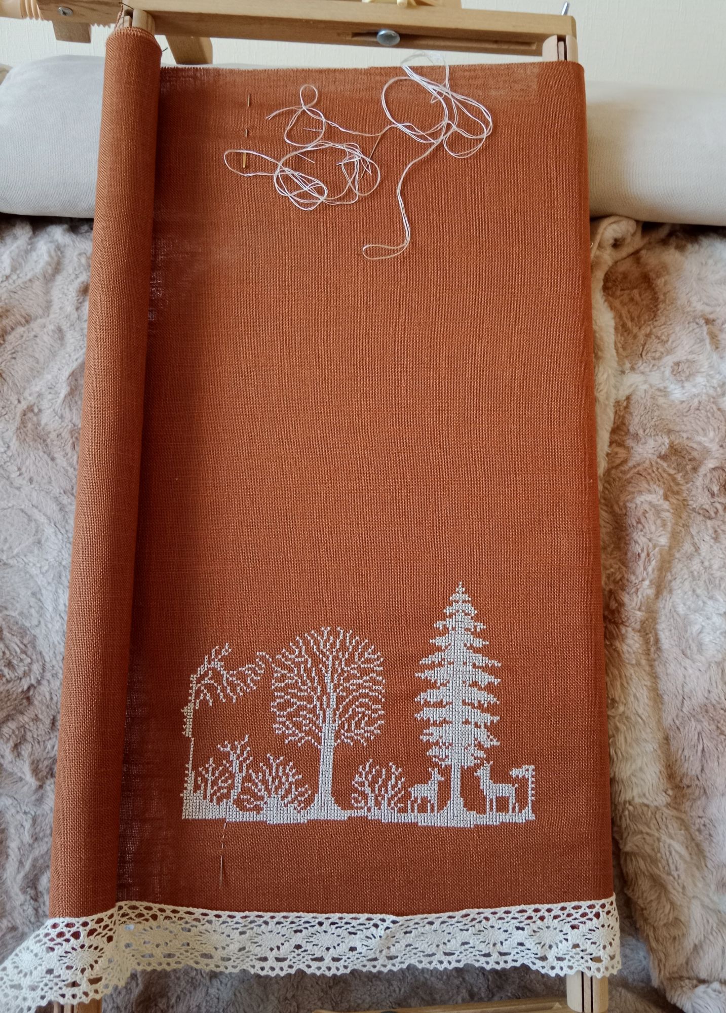 8 сентября 2024 Закончила лес за 42 вышивальных дня. Оформила в салфетку на журнальный столик, пришив кружева. Размер получился 157*50. Не смотря на использование одного цвета процесс получился интересным, важно было не сбиться на равномерке . . Для защиты от пыли и пятен положила на салфетку (по размеру журнального столика) "жидкое стекло" (толстая-толстая прозрачная клеёнка). 25.08.24 начала новый процесс. Подушку от Панны "Гортензия" PD-7303. Сейчас отшито уже 17% . На день рождения подарила себе боковую натяжку канвы и органайзер для иголок (на 210 ячеек). Довольна как слон! Особенно радует натяжка, канва с ней как барабан, крестики ровные-ровные. L-Dinka, Хозяйка смешных зверей, Фро-J и 6 других сказали спасибо Поделиться сообщением Ссылка на сообщение