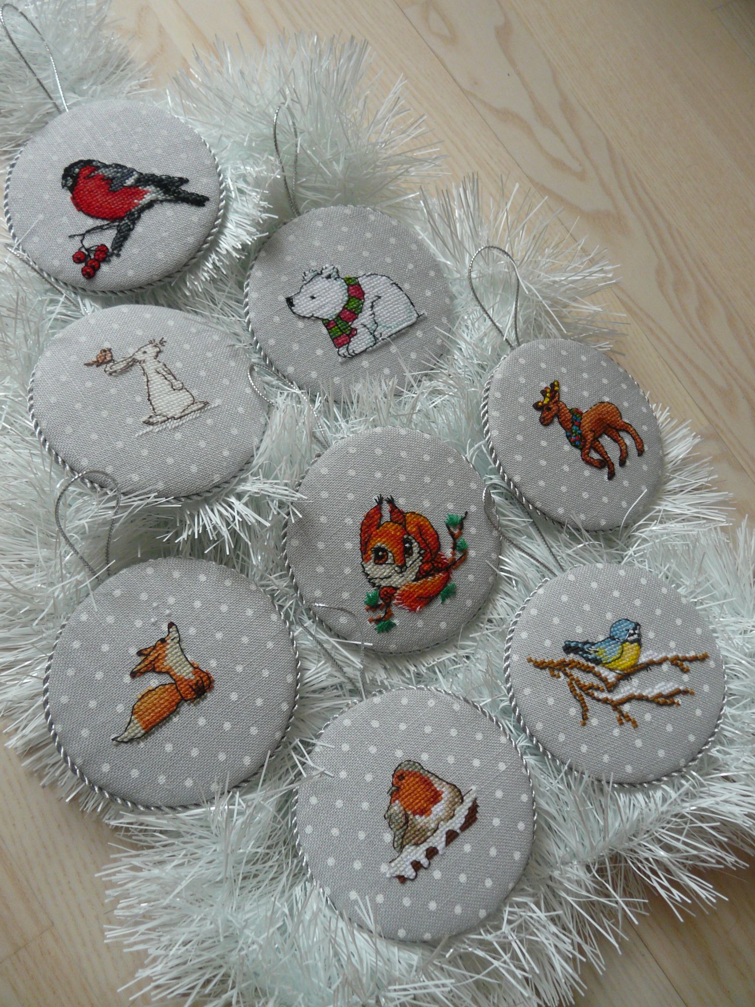 21 января 2017 Всем привет! Всех с прошедшими праздниками!!! Тихонько выложу тут текущие процессы, работы оформленные под конец года и итоги года.. Оформились несколько работ (неоформленных осталось 9 или 10), эх, такого еще не было. Зато вот приоделся кардинал (дэйдримс от Дименшионс) в багет, как я и хотела, стекло от набора не стала применять. Мишки по схеме Натальи Ореховой в такой же багет что и кардинал, но тут паспарту уже тканевое (нашла ткань со снежинками случайно, и влюбилась). Мой любимый шокоголик по схеме Екатерины Волковой тоже приоделся, мастер предложила такое бархатное паспарту цвета какао, м м м.. я теперь от этой работы еще больше балдею.. Первоотшив Полета по схеме Арины Задорожной тоже попал под горячую руку оформления, мне нравится (но иногда закрадываются сомнения, а может надо было паспарту, чтоб просто дать птичке, но пока будет так летать у нас дома...) Оформились и уже подарены сестренке первая партия мопсиков Больше всего боялась за оформление золотой рыбки, вышитой на заказ и по просьбе заказчицы с обязательными метрическими данными.. Но все понравилось, и меня результат устроил, и именинник вроде оценил, так что можно выдохнуть.. фуф.. Игольница так и осталась игольницей, запал пропал, и подставку с баночкой для огрызков и лежанкой для ножниц пока так и не воплотила, может еще нападет вдохновение, повторю и сделаю .. А эта игольница подарена моей тете, которая начинает вышивать )) Вышит мишка по бесплатной схеме в рамках новогоднего марафона в группе "Я вышиваю" в vk, канву красила сама при помощи пены для бритья (для получения красивых разводов, но и для равномерного прокрашивания ею тоже можно воспользоваться) Начатый в авантюре совенок Ух тоже доделан и даже оформлен в объемную игрушку, додумывала схему уже сама, результат автора что-то не вдохновил Доделан Тыковкин, лень взяла верх и листик не стала вышивать, вдруг что-то на меня нашло, и я быстренько пришила фетровый, вырезала шаблон из бумаги, перевела на фетр, вырезала и вуаля.. Долгостройные игрушки обшиты тесьмой и в этом году украшали елочку! Ураа!!!!! Вышита Новогодняя авантюра по схеме Екатерины Серегиной ниточками ДМС по ключу на Мурано Лугана белой с перламутровым люрексом (тоже в vk) и по итогам отшива организатор разыграла приз и он достался мне ! Чудеса!!!!!! впервые выигрываю, и еще такие рукодельные прелести и нужности! Вот спасибо за то, что прочли мой длинный отчет, и немножко позитива напоследок ! Это моя младшая примеряет пяльцы, как корону на голову и как танк ползет проверять мамины шкафчики-выдвижки с нитками и наборчиками.. а а а .. пяльцы падают, деловито снова нахлобучивает на голову и снова за дело, ныряет в мои заначки.. моя прелесть! )))) В общем всем добра! Графиня, CherepOlka, aristek и 4 других сказали спасибо Поделиться сообщением Ссылка на сообщение
