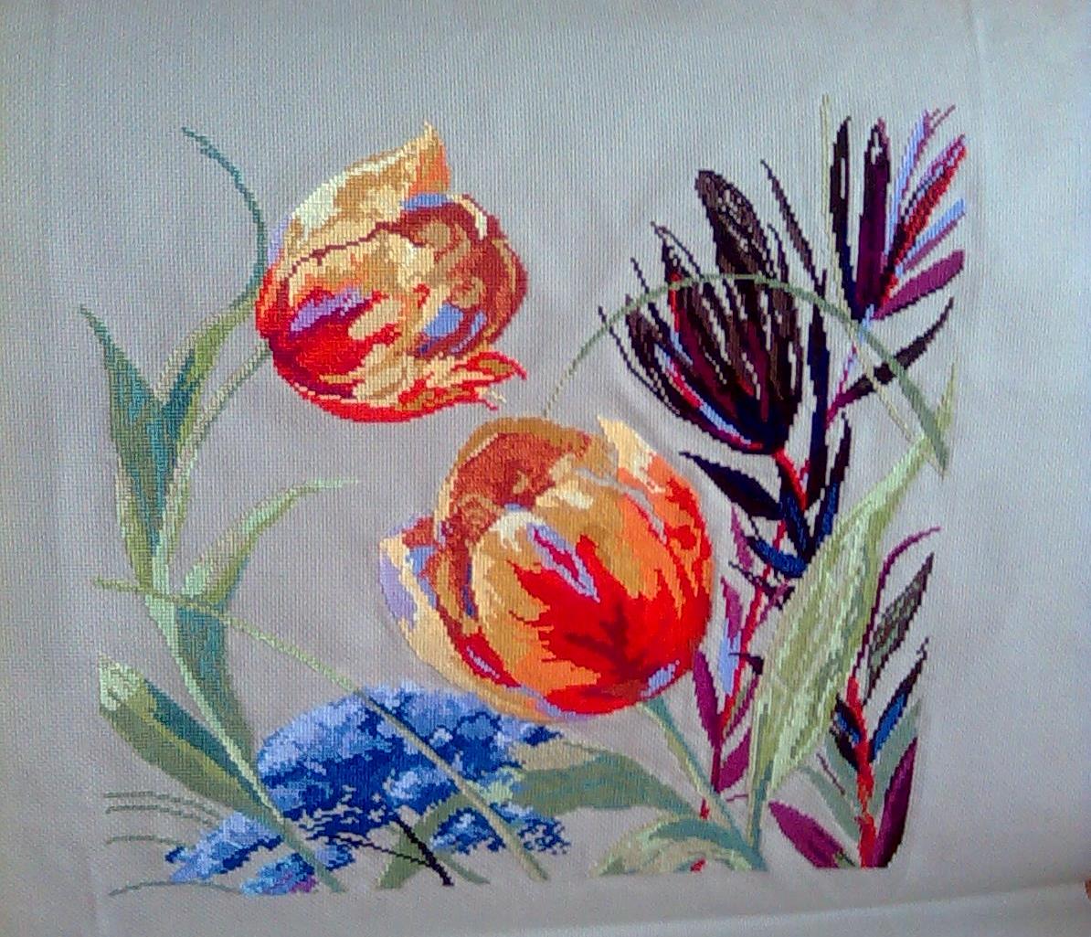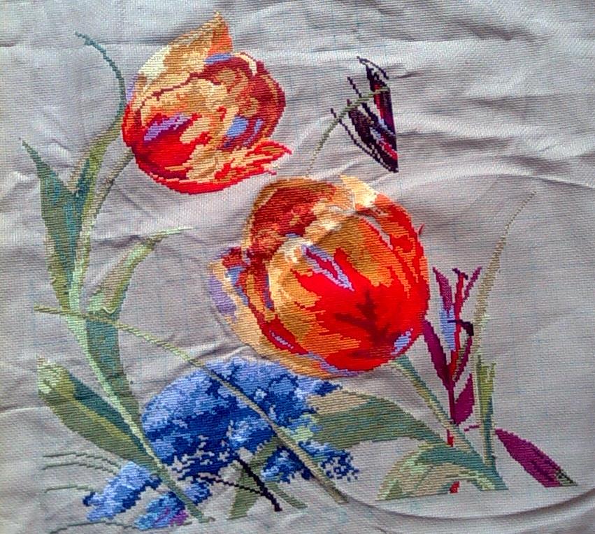 26 июля 2013 Спасибо большое, девочки. Валюша, да, там такая приятная атмосфера, мне очень понравились цветы, связанные крючком девушками, работающими в магазине, не удержалась, попросила разрешения сфотографировать, сама не умею крючком- так хоть полюбовалась. Продолжение Тюльпанов по схеме от Анкор. Вот уже мучаюсь: то ли закончить, а потом взяться за Незнакомку, то ли начать Незнакомку- а потом закончить Тюльпаны. Шатаюсь туда-сюда, пару крестиков в Тюльпанах сделаю- подержу в руках Незнакомку-совесть помучает- откладываю, и от этих сомнений вся извелась. Тут осталось работы-то не много, понимаю сама, но по всем показателям- нужен пинок. ЖДУ. natlus, vallleriii, Leutnant Ripley и 6 других сказали спасибо Поделиться сообщением Ссылка на сообщение