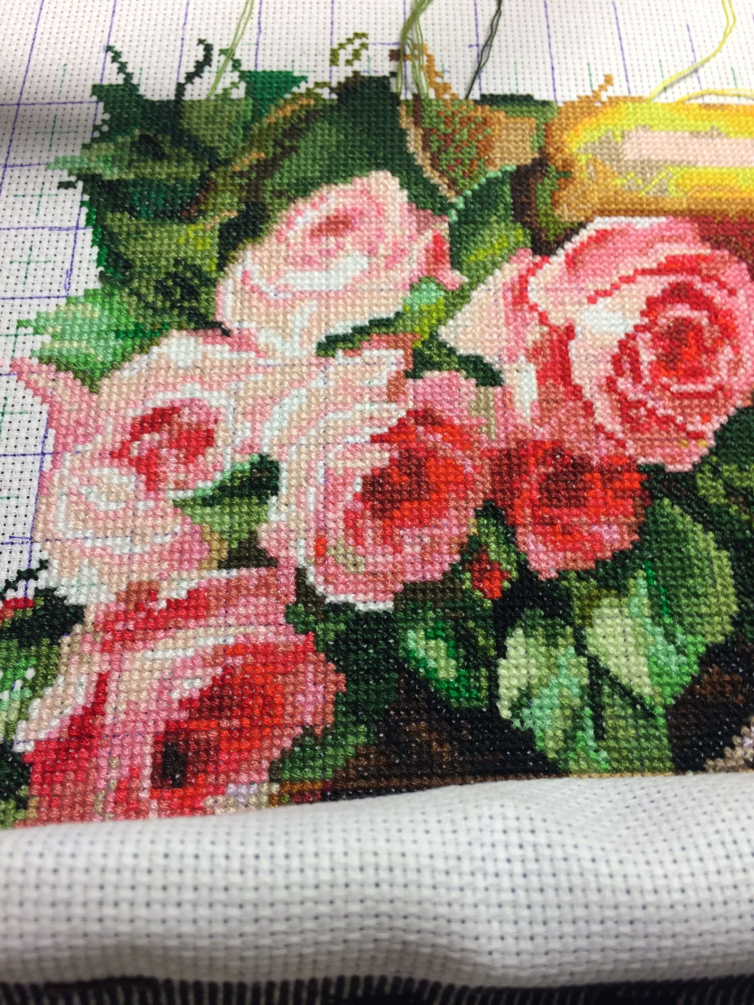 20 апреля 2021 2 часа назад, Юнона1960 сказал(а): И сейчас я не долго отсутствовала, хотя и лист не дошит, а ровно его половина, но переставляла пяльца и не забыла сфоткать все пространство. Букет роз почти подходит к завершению, осталась одна роза, уж так муторно их вышивать, но я терплю, потому что знаю, что впереди ну оочень много фона, а это еще ТО испытание. Как по мне, так уже красиво и без фона, тем более зелёный не очень люблю. Розы, вишня- шикарные! Юнона, а что за закат? Тоже ЗР? Юнона1960 сказал(а) спасибо Поделиться сообщением Ссылка на сообщение