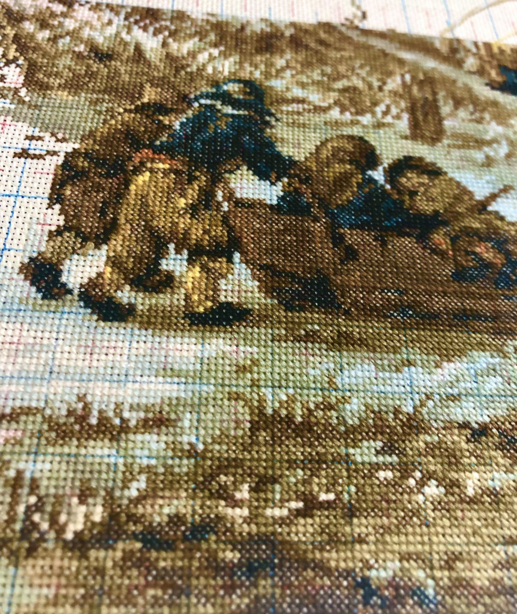 23 декабря 2022 Видели это? И придумывать ничего не надо, без меня меня женили . Всех с наступающим Новым Годом, все равно он будет! Что-то я рано с поздравлениями, потому что не знаю, зайду ли еще в свою темку. Я вышила еще один полноценный лист схемы и еще кусочек. Появились детки в корыте , которых катают другие детки. Ну что хочу сказать о работе. С 20ю цветами ниток это еще надо постараться такую схему нарисовать. Такое чувство, что я вышиваю какой-нибудь ХАЕД, с двумястами оттенков, или свободного дизайнера с мильённым бэком... настолько все запутано, но, надо отдать должное, реалистично получается, каждая травинка или же утоптанный снег в оттепель. И немного творчества внука. Конкуренция бабулиным стенам Путешественница, Людмила Мизина, ОльгаВл и 14 других сказали спасибо Поделиться сообщением Ссылка на сообщение