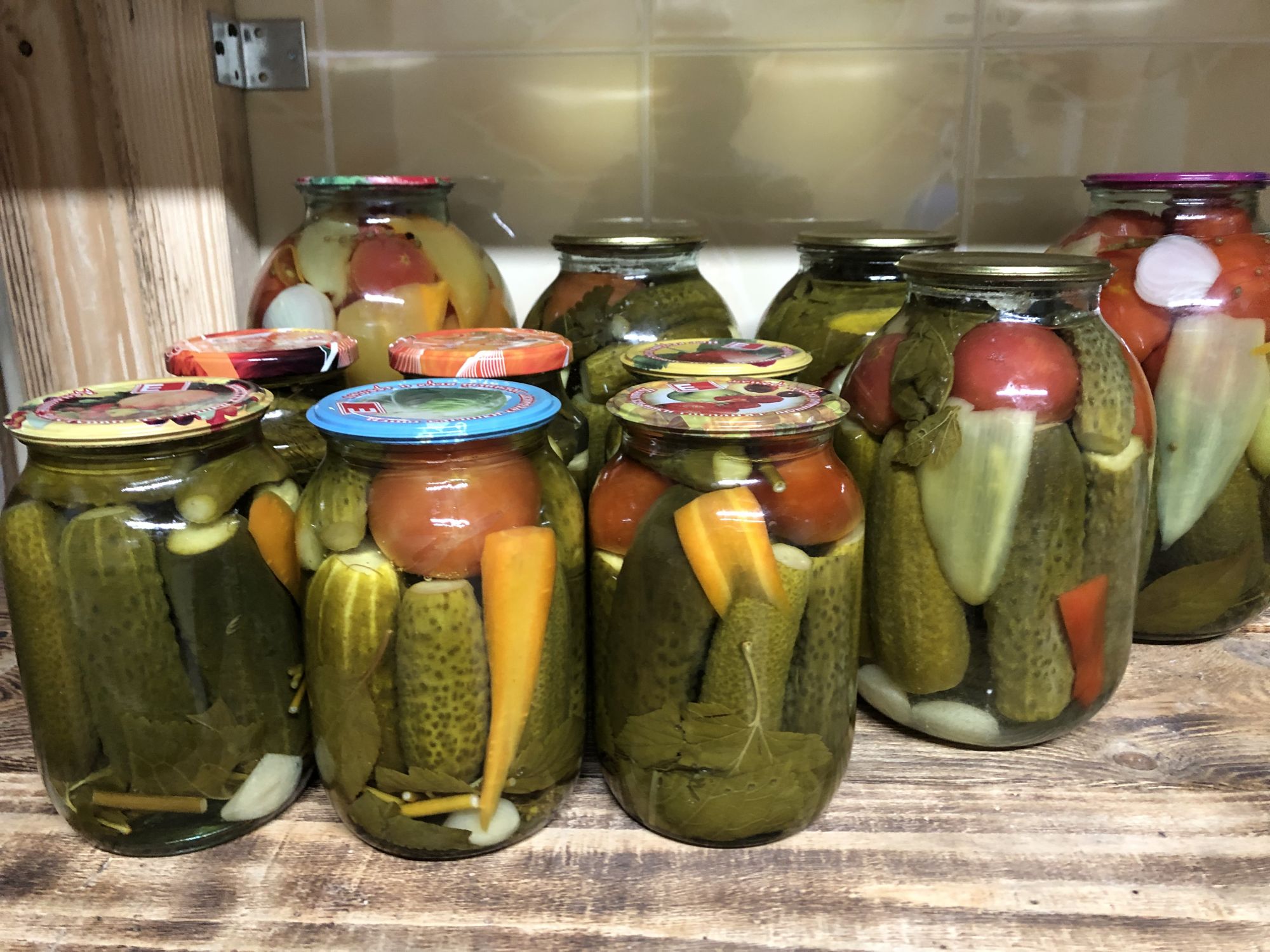 8 сентября 2023 Дачно закаточный сезон закрыт, ибо кабачков у меня мало. Теперь будет Это и можно танцювати. Это зеленые помидоры Это мариновка Это с баклажанами Это свекольник Это рассольник Это яблочный сок Это лечо Это томатный соус и всяко разно Это квашеные огурцы и кабачковая икра, которая заморская. Это все. Еще пару баночек огурчиков, наверное получится. Если потеплеет, может, и дозреет. И вышивка. Всем привет Хозяйка смешных зверей, Лена1973, ЛАДОМИРА и 20 других сказали спасибо Поделиться сообщением Ссылка на сообщение