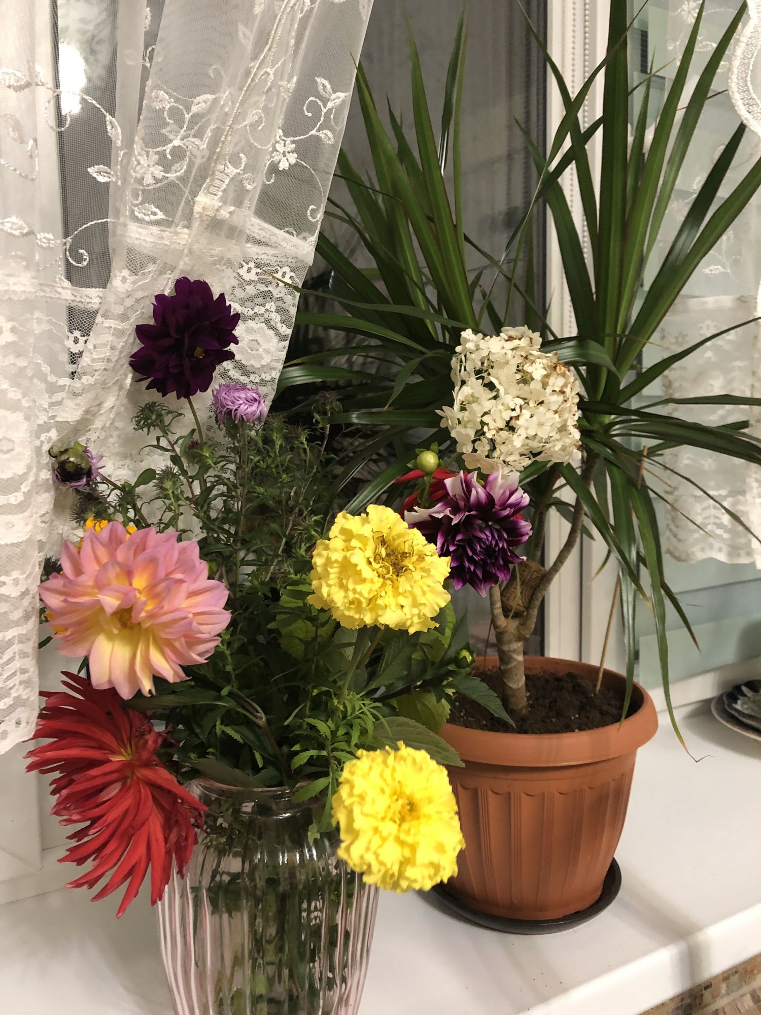 27 сентября 2023 17.09.2023 в 23:52, makalicha1970 сказал(а): Какие георгины красивые! Юнон, а ты специально на срезку выращиваешь? Я их просто выращиваю. У меня их много-много и еще Это даже не все. Сажаю все, что в руки попадет. Авось выживет 17.09.2023 в 23:52, makalicha1970 сказал(а): Это, наверное, ныне модный Антигуа))), он, вроде, огромный как раз. Озадачилась, посмотрела. Похоже. Бархатцы тоже всякие разные. Когда собираю на семена, хоть и подписываю, а все равно по весне запутаюсь и сыплю куда не попадя. (а, может, уже показывала эти фотки) Хочешь, пришлю тебе семян и георгин. У меня подвал теплый и каждый год боюсь, что не выживут, но пока проносило. Я первый раз купила корешок георгина и он даже не вылез. Сказала, вообще не буду ничего сажать. А подруга дала целый мешок и некуда деваться, вот.. несколько лет уже живут, радуют меня. 17.09.2023 в 23:52, makalicha1970 сказал(а): В удовольствие-это правильно! мы в этом году из удовольствия ( любопытства) помидоры посадили вместо огурцов, на удивление, они у нас выросли, только совсем невкусные, как магазинные. А огурцы еще с прошлого года не съели... Смешно. У меня от любопытства некуда деваться от банок. Все на авось. А почему и огурцы и помидоры не посадила вместе? У меня все в одной теплице. И еще и перец. Мне подруга как-то сказала (а она велииикая огородница), это все происки "империалистов", что нельзя в одной теплице сажать, мы же не коммерческие тепличные хозяйства, где столько теплиц нам набраться. И я не парюсь. И правда, в этом году все, и огурцы и помидоры не вкусные.Я грешила на то, что рассаду купила, не сама сажала, но многие жалуются. Может, все же из-за погоды. У нас все же только июль был относительно теплый, май-июнь вообще дубак. Сейчас да, тепло, но не летнее. Огурцов полно еще в теплице, пытаются догонять . Nat717, Путешественница, Хозяйка смешных зверей и 9 других сказали спасибо Поделиться сообщением Ссылка на сообщение