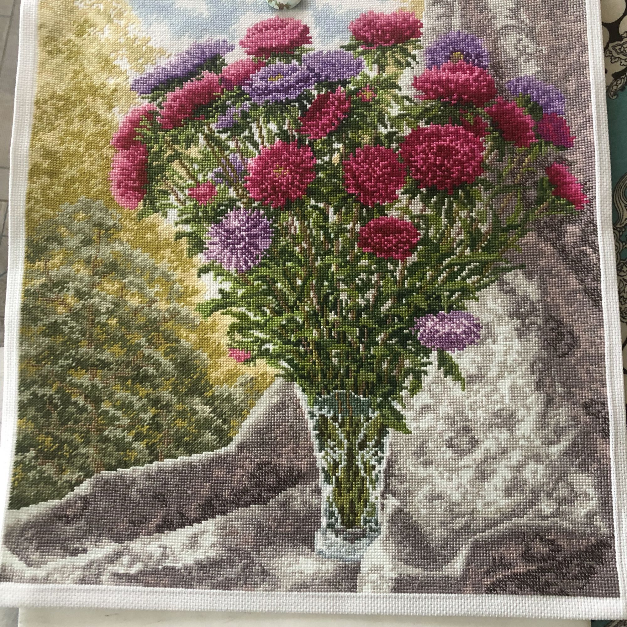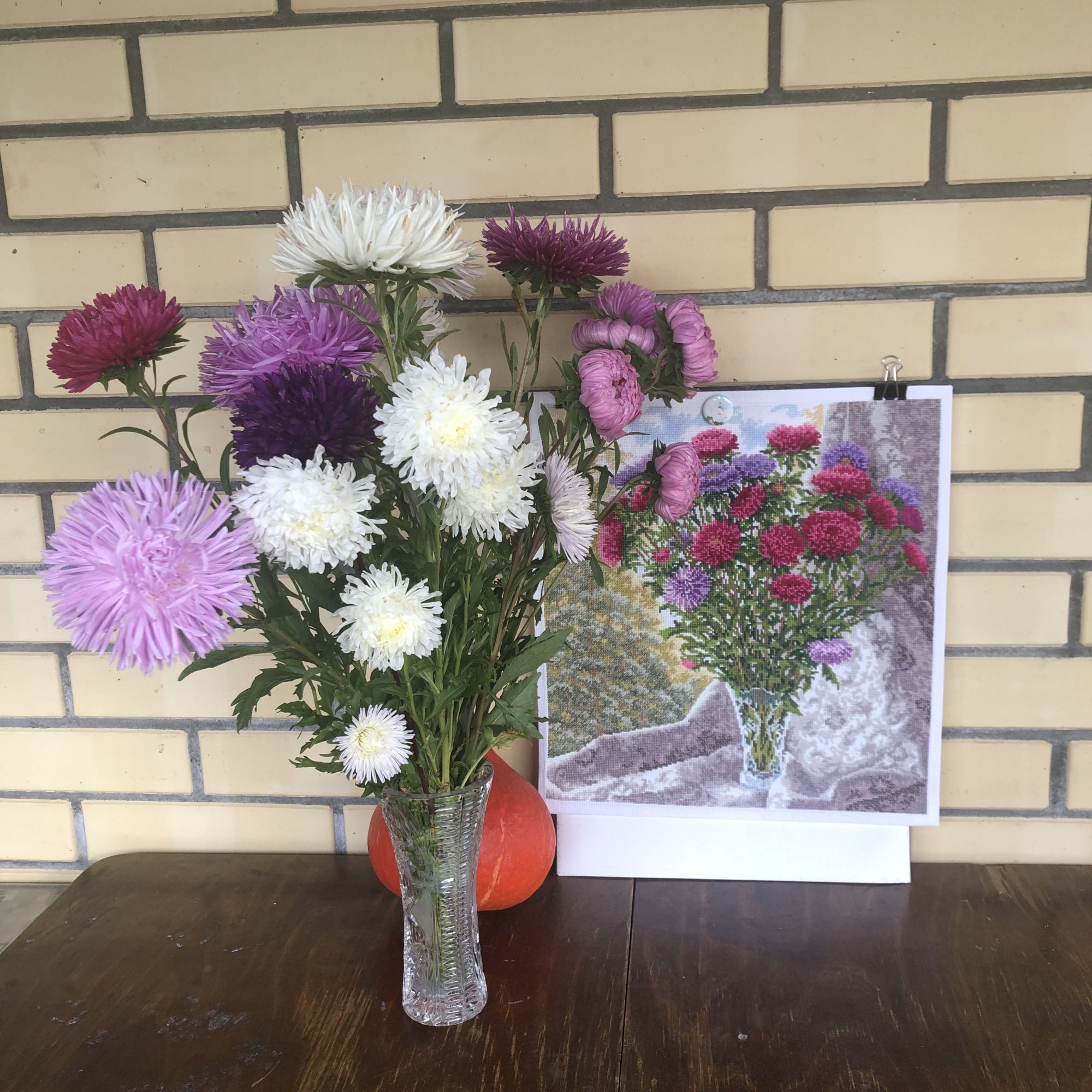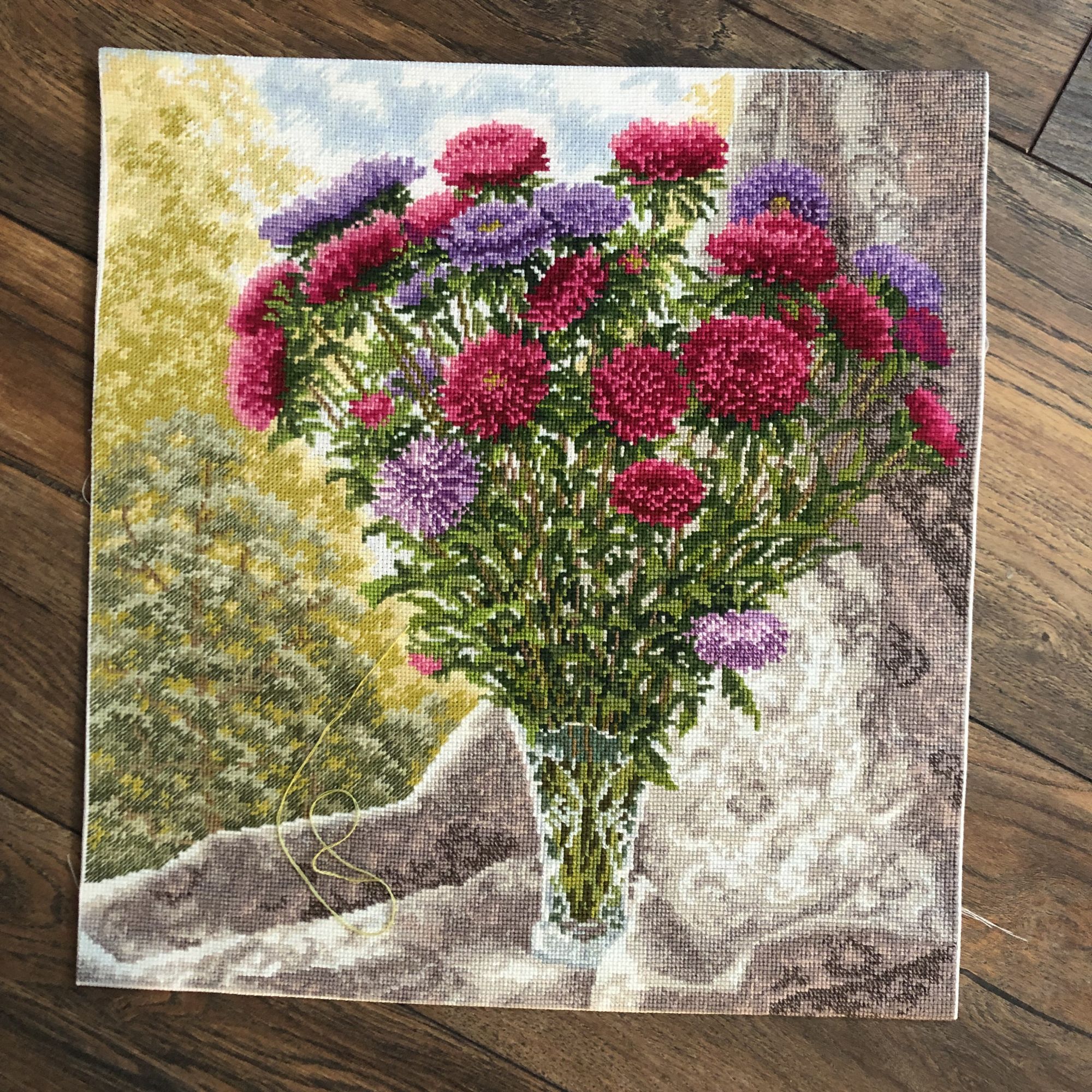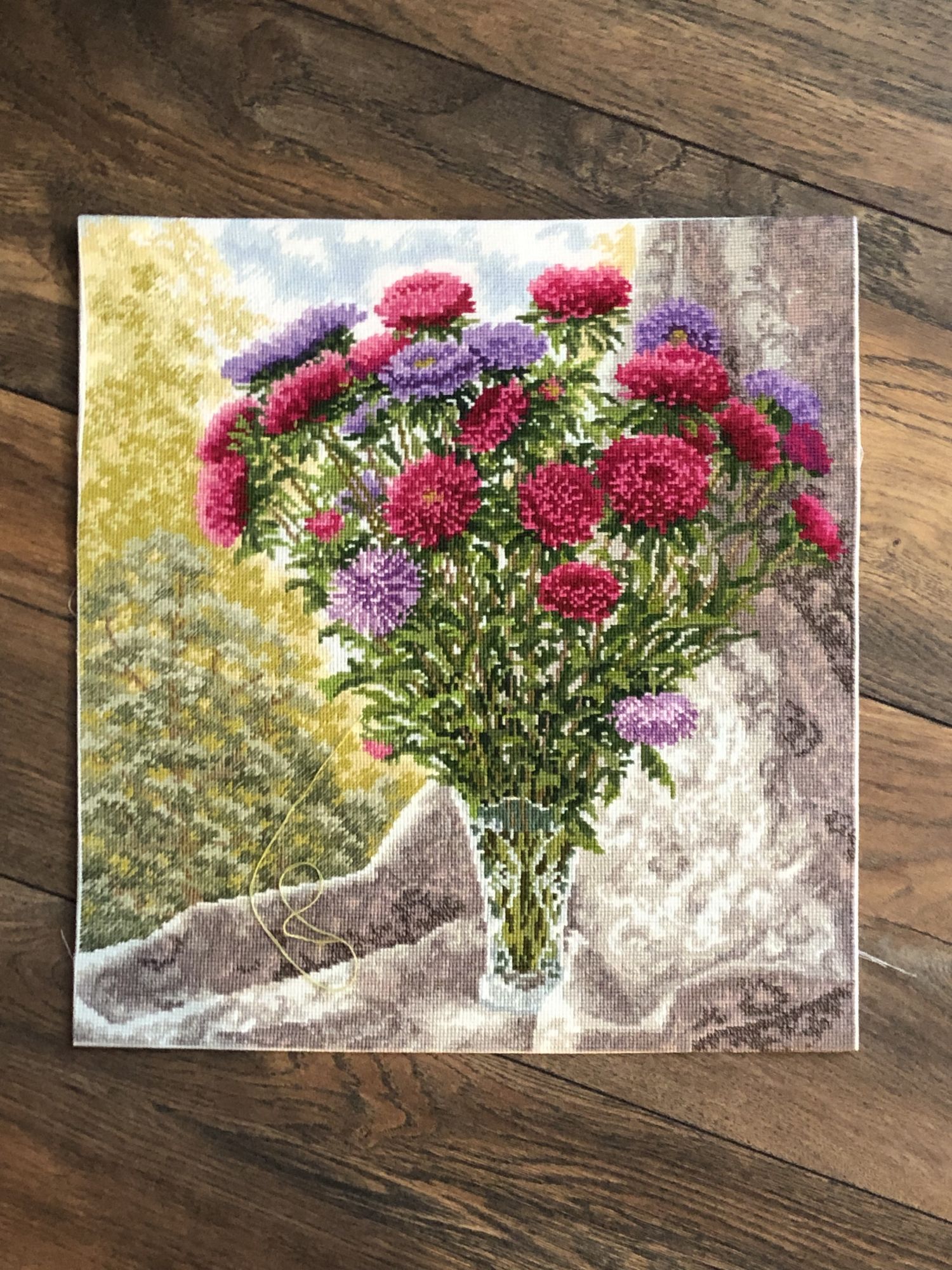 27 сентября 2023 Привет, закончила Букет астр от Золотое руно. Ну, не знаю. Как бы сказала - не мое. Больше этого автора не буду вышивать. Все ошибки, что можно совершить, я здесь сделала. Значки путала, - правда перешивала потом как-то без проблем, а потому что не моя в этом вина. Неужели нельзя было еще пару непохожих значков найти? Впервые, а я много вышила наборов этой фирмы, такое у меня случилось. Как говорится, не ожидала подвоха. ниток в двух цветах в пасмах по пять вместо шести. ( и подозреваю, что это не Мадейра) Хватило, конечно, но это потому что ЗР щедрые, и я когда увидела схему, сразу стала шить до последнего огрызка. Схема не понравилась, вышивалась мучительно больно, не отвлечешься. Нигде, нет таких участков, чтобы отдохнуть. А занавеска сплошное мое разочарование. Висит какая-то тряпка, а вышить ее столько усилий затрачено. Как она еще туда полукрестов не пустила. Еще дошила в левом верхнем углу немного неба. А то меня эти пропуски вокруг самого Букета и так достали. Красиво, да, нечего сказать, общая картинка, но не стоило того. Жалею, что поддалась сиюминутному порыву. Смотрела бы и любовалась себе в огороде на те астры . А, у меня ж еще такая же ваза есть. Думаю, она у каждого второго есть с советских времен, моя не пококалась пока. Оформлять не буду. Оформление дорогое, а ведь кому-нибудь и подарю. Спрячу пока. И с вазой мои усилия сфоткать, без фотошопа И вот решила начать Ланарте, розочка. Она в гордом одиночестве. Если все сложится с ней, в планах оформить в двойное стекло, как Ирисы и Роза, размер подходящий. Но это только планы. Если мои нервы выдержат, и если канва, которая лен, после вышивки и стирки выровняется хоть до пары см, то будет чудо. Смещение идет на льне от верхнего до нижнего угла почти 5 пять кКарл см. Это середина, здесь почти 3см Я, извините, фигею. Ну да, как бы они еще вышивальщицам насвинячили за бешеные бабки. Может, выровняется, может нет , вышивать буду пока не увижу, что все пропало. ирония, makalicha1970, Nat717 и 23 других сказали спасибо Поделиться сообщением Ссылка на сообщение