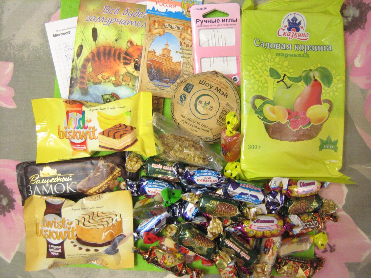 3 июля 2014 Это был челябинский партизан, быстробегающий, между прочим. Ташик, спасибо тебе огромное-преогромное !!!! Я домой с почты летела прям! Партизанская вылазка видать была не в пустую, много вкусностей добыто: мармелад, бисквитики с разными начинками, вафельная конфета в шоколаде, гора конфет (батончики со вкусами кедрового ореха, сгущенного молока, буратино, !!!овсяные, и желейные в божьих коровках). Ещё чай для заманивания в секту (я его в выходные распробую), иголки (видать, чтоб врагов пытать), блокнот (записывать выведанное), и магнитик со зданием, на которое сектанты любуются (я его видела на днях в отчете Оли-путешественницы и сразу признала). Поскольку мой главный конфетопоедатель сейчас гостит у бабушки, а хвостатому помощнику немного перепадет (хоть и скулит сейчас рядом, выпрашивая), всё это богатство будет съедено в одну харю . Я, конечно, буду пытаться растягивать удовольствие, но как на деле получится, фиг его знает. Надо припрятать от себя самой, чтоб всё за раз не уплести. Наташик, спасибо тебе за этот праздник, что ты мне устроила !!!! Никогда не ела челябинских конфет, все-все этикетки посмотрела, всё оттуда . alex_sterh сказал(а) спасибо Поделиться сообщением Ссылка на сообщение