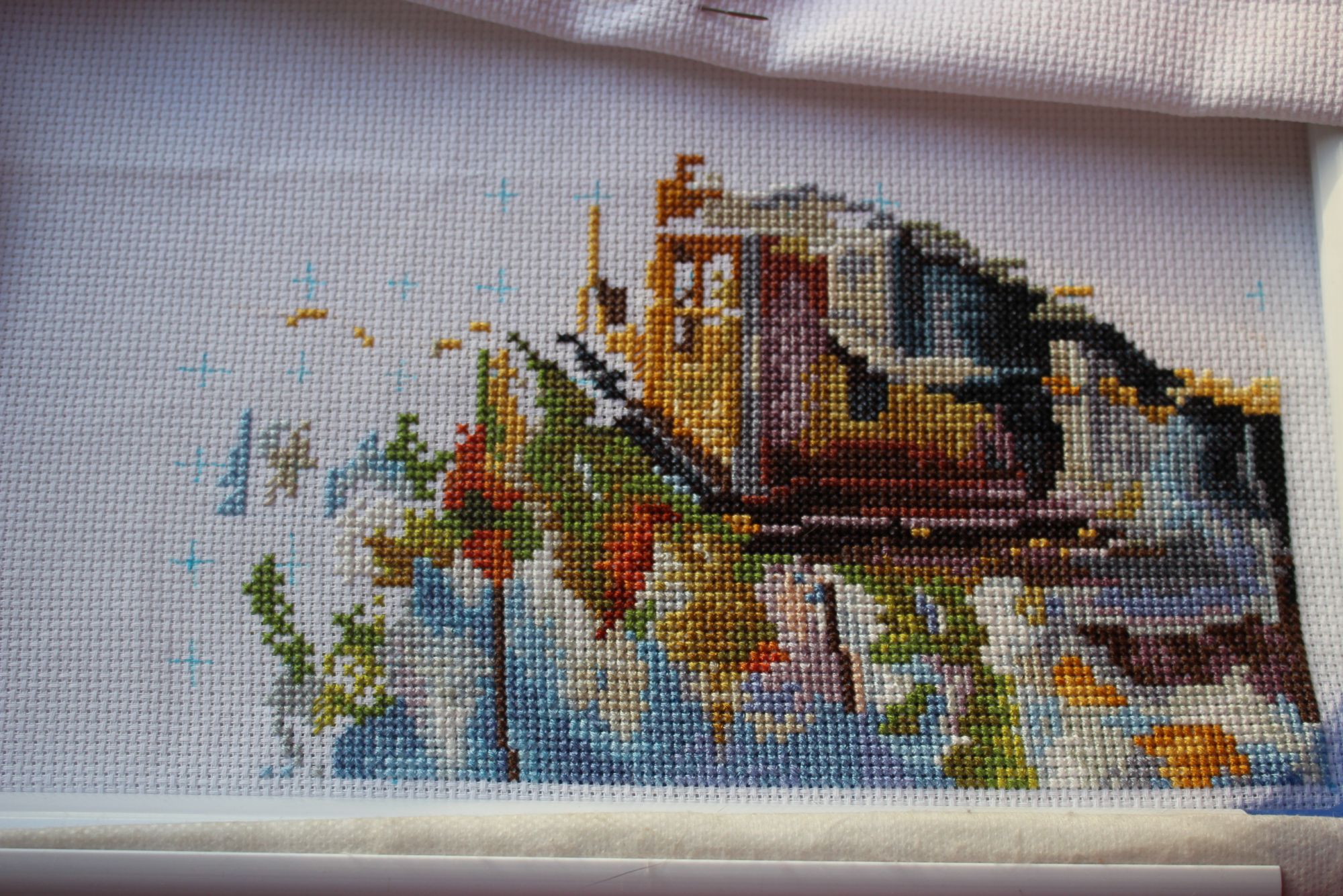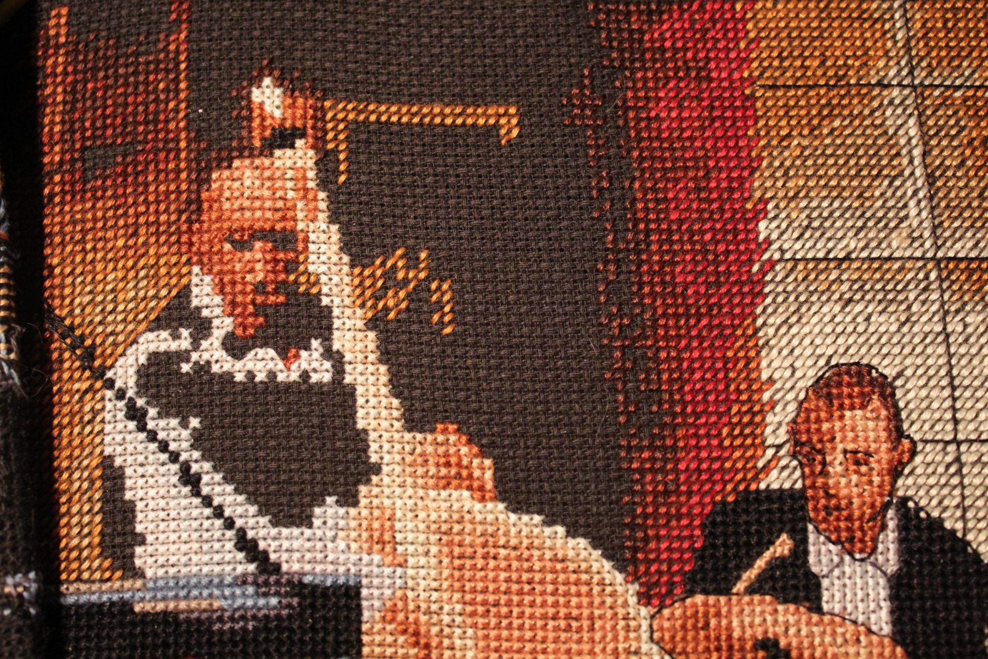24 января 2016 Всем привет! Наконец-то могу отчитаться с чистой совестью) Закончен наконец долгий и большой процесс, который почему-то давался мне с трудом. Не в плане шитья как такового, а в плане взять и шить. Когда шила - шила запоем, когда приходилось откладывать - очень долго не могла взять потом в руки. Итак, Джаз. Фотограф из меня, конечно, никакой, может потом в оформлении получится лучше. 1 - при остатках дневного света, 2 - со вспышкой. Немного сбоку - для придания объёма. Самое трудное было - очистить вышивку от кошачьей шерсти) уже на фото увидела, что до конца это так и не удалось. Завершение давалось с трудом, контрабасист сопротивлялся, как мог. Ну и я над ним поиздевалась, конечно... Вот таким он был: Потом я ухитрилась перепутать 2 (ДВА!!!) цвета в его лице...очень жалею, что так и не сфотографировала результат - так меня это раздражало, что кинулась пороть...надбровные дуги у него получились светлые, что сделало лицо плоским, а глаза - слишком чёрными и вытянутыми к вискам, что однозначно намекало на Секретные материалы, вылитый инопланетянин был. А вы же знаете, как я ненавижу переделывать...не могла сначала понять, что не так, все прикидывала - может так оставить...но когда пригляделась к значкам, поняла, что так точно не оставлю) Дальше осталось самое трудное - оформить...но пока все равно жду финансовые поступлений, но как только - так сразу, не терпится подарить. И заказать думаю только раму - а натягивать наверное будем сами, быстрее получится и дешевле. Из негативных впечатлений. Ну про ошибки в схеме уже писала, это уже забыто. Нитки. У меня они пушились со страшной силой. Грешила сначала на кошек, потом пригляделась - каждая ниточка покрыта как будто пушком... Не хватило цвета 300. Буквально на 23 крестика) К производителю претензий нет, протяжки делала как и куда хотела, просто как-то совершенно неожиданно обнаружила пустую дырку на органайзере...запасов анкора у меня нет, ехать в магазин из-за 23 крестиков - маразм, отлично подошел DMC3823. Ну а остальном - шикарный дизайн и наслаждение от процесса, растянутое мной больше чем на 2 года) Кроме Джаза. Во время исполнения обязанностей бабушки вышивается понемногу осеннее окошко от Риолис. Было/стало Не тороплюсь) Город после дождя от РТО вышивается с огромным удовольствием. Было/стало А вообще за эти пару недель вышивала мало. Вроде и не болею, но то сил нет, то настроения...несколько дней ложилась раньше Кирюхи, часов в 11...для меня это рано сейчас. Надеюсь вечером начать Всадницу Риолиса. как только будут первые крестики - покажу внепланово. Если быть совсем честной - могла бы сейчас не пользоваться правом начать новый процесс, а продолжить то, что есть. Но уж очень мама ждёт, когда я Всадницу начну. Из невышивального. Исполнилось 2 года Кирюшке. Большой мальчик совсем... Алиска успешно сдала сессию, приезжает через 2 дня на каникулы. Жду. Снежно, морозно и солнечно, настоящая зима. Хочется походить с фотоаппаратом, но все время его забываю. Всем тепла, уютного кресла и любимой вышивки) Лена1973, Ancho@Vyshivancho, Графиня и 21 других сказали спасибо Поделиться сообщением Ссылка на сообщение