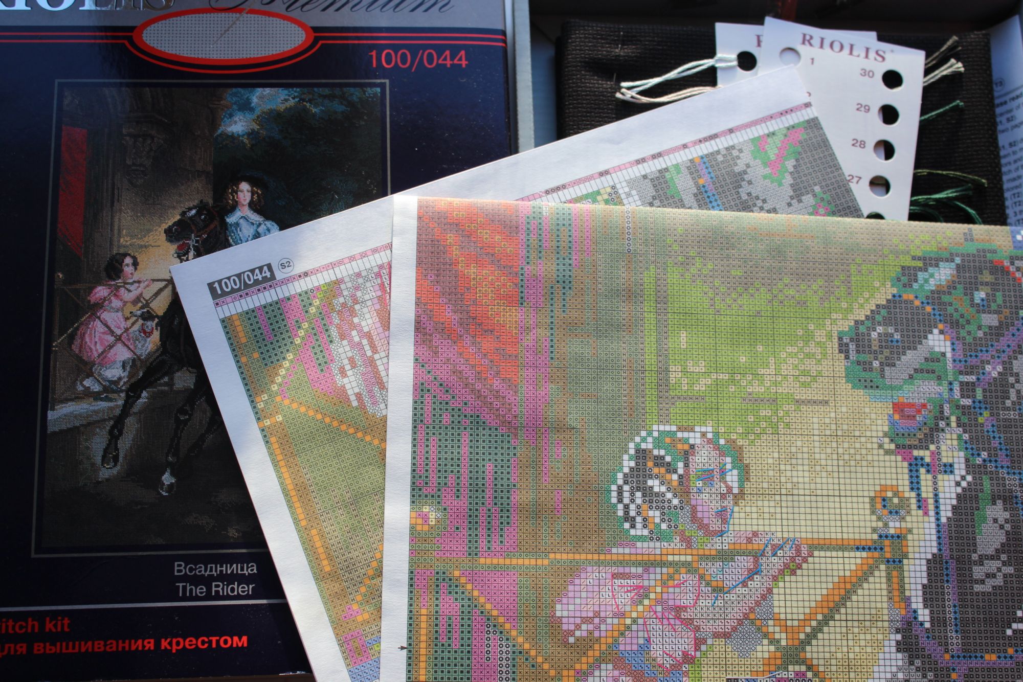 30 января 2016 В 25.01.2016 at 16:41, kas_julia сказал: Всадницу постараюсь показать сегодня вечерком, кусочек дошью. Ну да, погорячилась я насчёт "сегодня", с кем не бывает) Итак, у меня новый процесс! Риолис Премиум 100/044 Всадница, по картине Карла Брюллова. С детства - моя любимая картина. Чёрная канва 14 каунта, ниточки Анкор, 32 цвета. Схема на двух больших листах. Размерчик получится не маленький - 40х57см...что-то меня на глобальное тянет. Схема...сама схема-то привычная, не глянцевая, символьно-цветная, читается отлично. А вот ключ мягко сказать - удивил. Такого у Риолиса ещё не видела. В ключе 57 значков, из них правда 6 - для бэка. Присутствуют: крест в 3, 2, 1 нить, полккрест в 2, 1 нить, 3/4 крестика в 1, 2, 3 нити, ну и знакомые уже многим по другим производителям "чудесатые" крестики с разными цветами нижнего и верхнего полукреста. Обычных блендов нет. Вот такая вот веселуха) но я их не боюсь) вот такого типа... Начала с правого нижнего угла, как всегда, как раз с этих весёлых крестиков - нижняя нить тёмно-коричневая, верхняя - чёрная. Получается интересно - под разным углом смотрятся по-разному. Ну и первые крестики-полукрестики. Не знаю пока, какой из процессов будет у меня основным - хочется шить всё и сразу) Хомяк наконец-то выкупил набор, который в закромах-то у меня давно висит - но лежал до вчерашнего дня на работе. Риолисовские розы на заборе, вот эти. Раскрыв их вчера, перебрав ниточки, почитав схему, поняла, что очень-очень хочется начать именно эти розы... Ну посмотрим, как сложится - всё-равно нужно закончить пару начатых. Хорошего всем настроения, не болеть ни в коем случае, и времени на вышивку побольше) Графиня, Хельга, aleksaA и 23 других сказали спасибо Поделиться сообщением Ссылка на сообщение