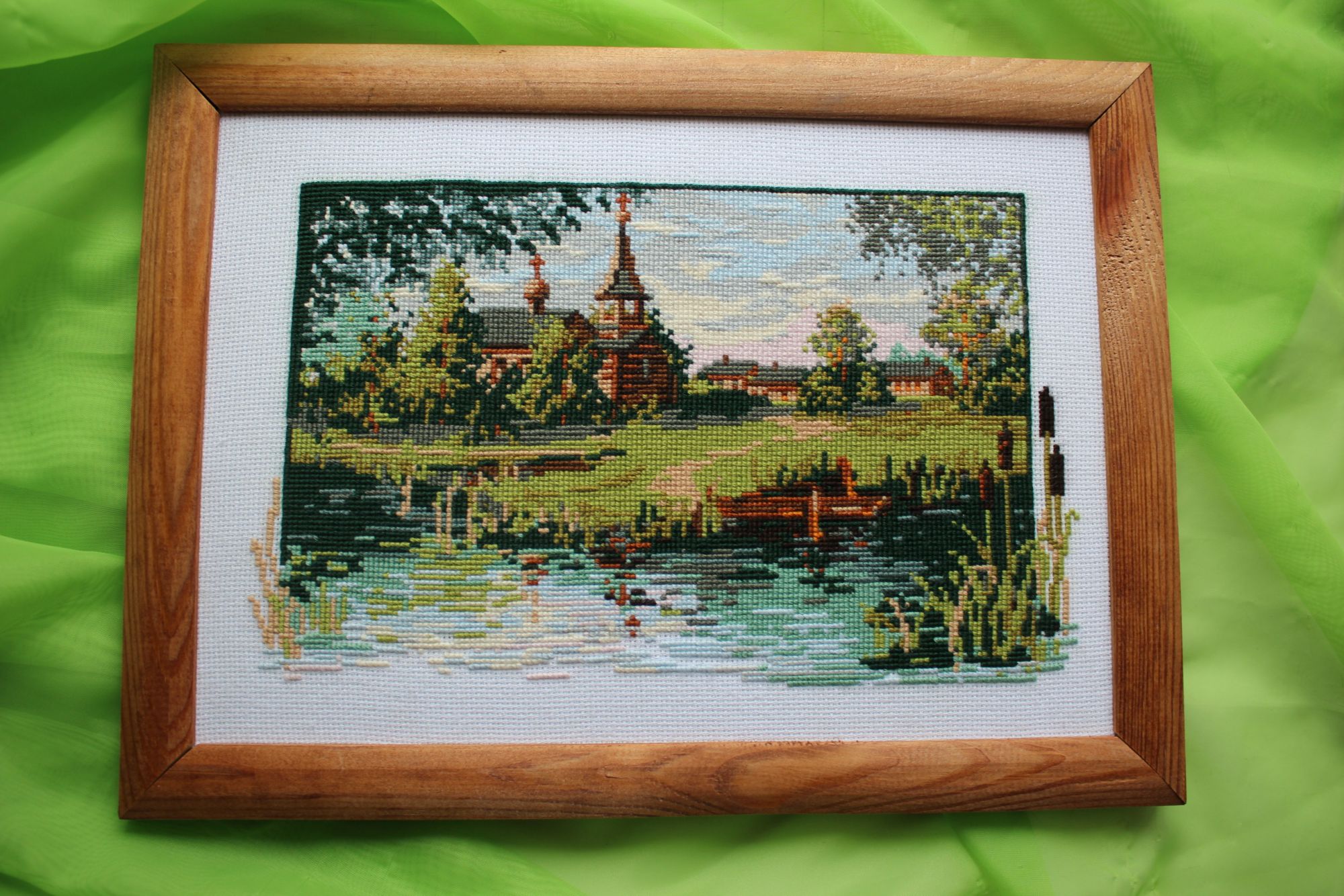 7 марта 2016 Привет, я с небольшим отчётом. 1. Не смогла больше тянуть процесс, закончила Осеннее окошко от Риолис. Фотографировала при дневном свете, но пасмурно и грустно за окном - картинка тёмная получилась. Найду дома рамочку, попробую дождаться солнышко и перефоткать - очень уж там цвета классные, хочется вам показать. 2. Вставила в рамочку вышитый риолисовский пруд. Вот и за это тоже люблю Риолис - большинство его вышивок (особенно шерстяных) прекрасно смотрятся в обычных деревянных рамках. Других производителей в таких рамках не очень представляю. Прудику повезло с погодой - было посветлее, и цвета получились практически как есть. 3. Валюша - не для гаечки. Покажу вам кусочек РТОшного города при дневном свете - вот тут цвета похожи на настоящие, мне особенно голубые оттенки нравятся. Хотела показать ещё Всадницу - но не закончила кусок, который намеревалась - так что ещё пару дней ударно пошью (если дадут) - и покажу после выходных. Девочки, всех с наступающим праздником! Всем нам счастья, любви и красоты! Хозяйка смешных зверей, МаринЭ, Маняша и 23 других сказали спасибо Поделиться сообщением Ссылка на сообщение