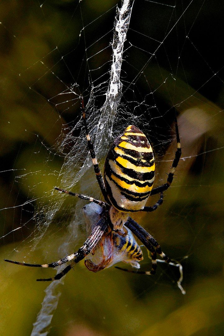 11 октября 2016 kas_julia, похоже, все же осу У взрослых особей резко выражен половой диморфизм. У самок брюшко округло-продолговатой формы. Спинной рисунок брюшка имеет вид ряда черных поперечных полос на ярко жёлтом фоне, напоминает внешне брюшко осы. Головогрудь серебристая. Ноги светлые, с чёрными широкими кольцами. Самцы имеют невзрачную окраску. Брюшко самцов узкое, светло-бежевого цвета с двумя продольными тёмными полосками. https://ru.wikipedia.org/wiki/Аргиопа_Брюнниха Из комментариев на другом сайте : "Ну я эту тварь на рыбалке встретил,аккуратно насадил и поймал линя, рыбина была на полкило,спасбо тебе паук,отличная работа)))тамбовская область Поделиться сообщением Ссылка на сообщение