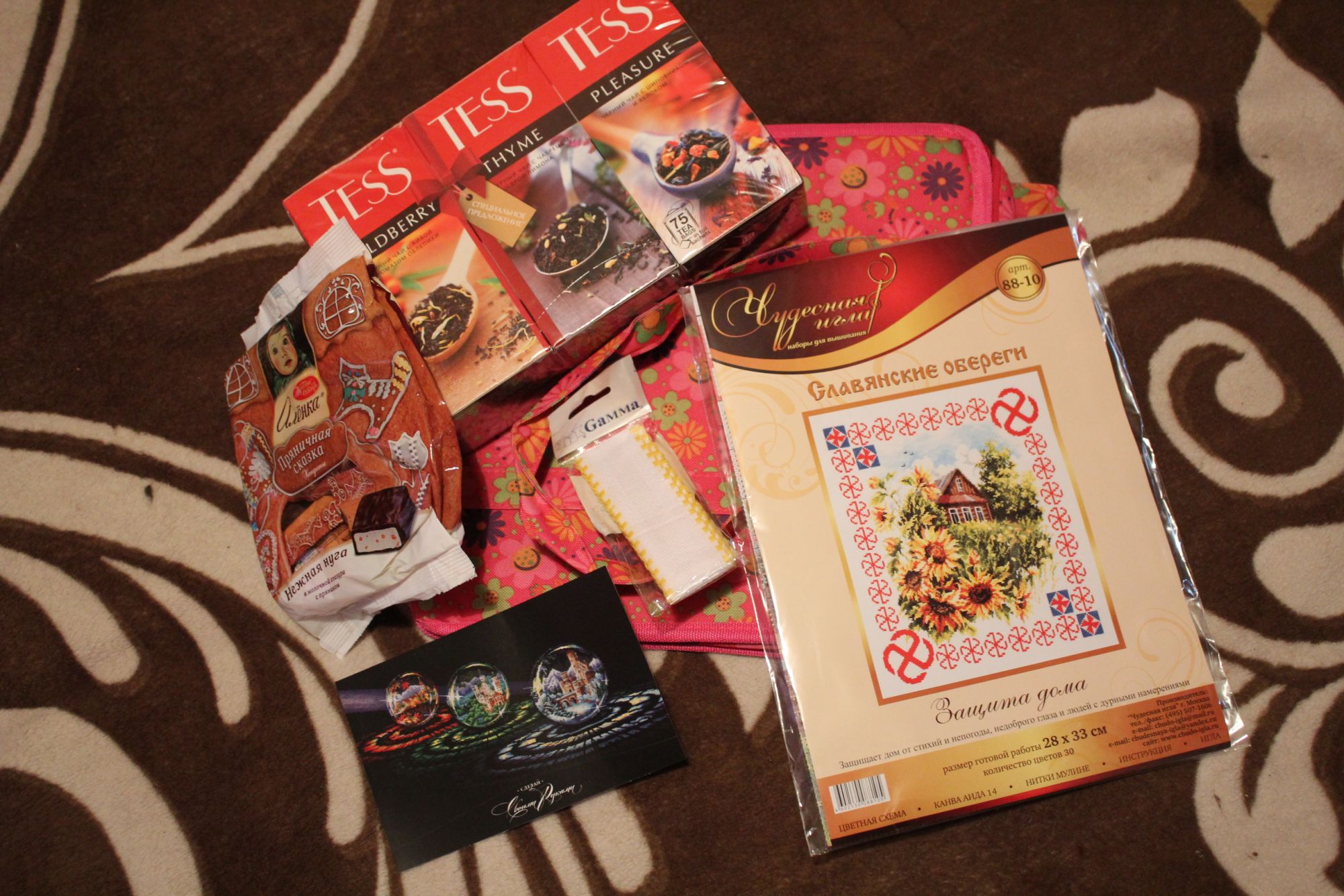 29 октября 2016 Ну что, начинаю я праздновать день рождения, пожалуй! Принесла с почты посылочку от Лены AleksaA! Леночка, чего-то слов много вертится в голове, а самые-самые не придумываются... Каждый раз, получая подарки от Лены, восхищаюсь и удивляюсь - такая щедрость души, внимательность, доброта в каждом ее подарке, в каждой строчке рукописного поздравления. Лен, ты же знаешь, что я тебя люблю, да?Искренне верю, что добро и радость, которые ты даришь, возвращаются к тебе сторицей! Посылочка впечатляла размерами: книжка просто для сравнения. Чай, вкуснючие конфеты (обратите внимание, успела сфоткать даже в не вскрытой упаковке! (Моих дома не было)), наборчик из хочушек!!! Открытка, ленточная канва - много у меня идей для ее использования, воплотить бы хоть что-то - и СУМКА для рукоделия!!!! Вот теперь буду разрываться, какой из процессов осчастливить, переселить из пакета в сумку... Еще раз спасибо Леночке за доставленную радость!!! А в Воронеж тоже пришла зима...не надолго...демо-версия, наверное. solnishko-ym, ЛюдмилаЕр, ЛАДОМИРА и 17 других сказали спасибо Поделиться сообщением Ссылка на сообщение