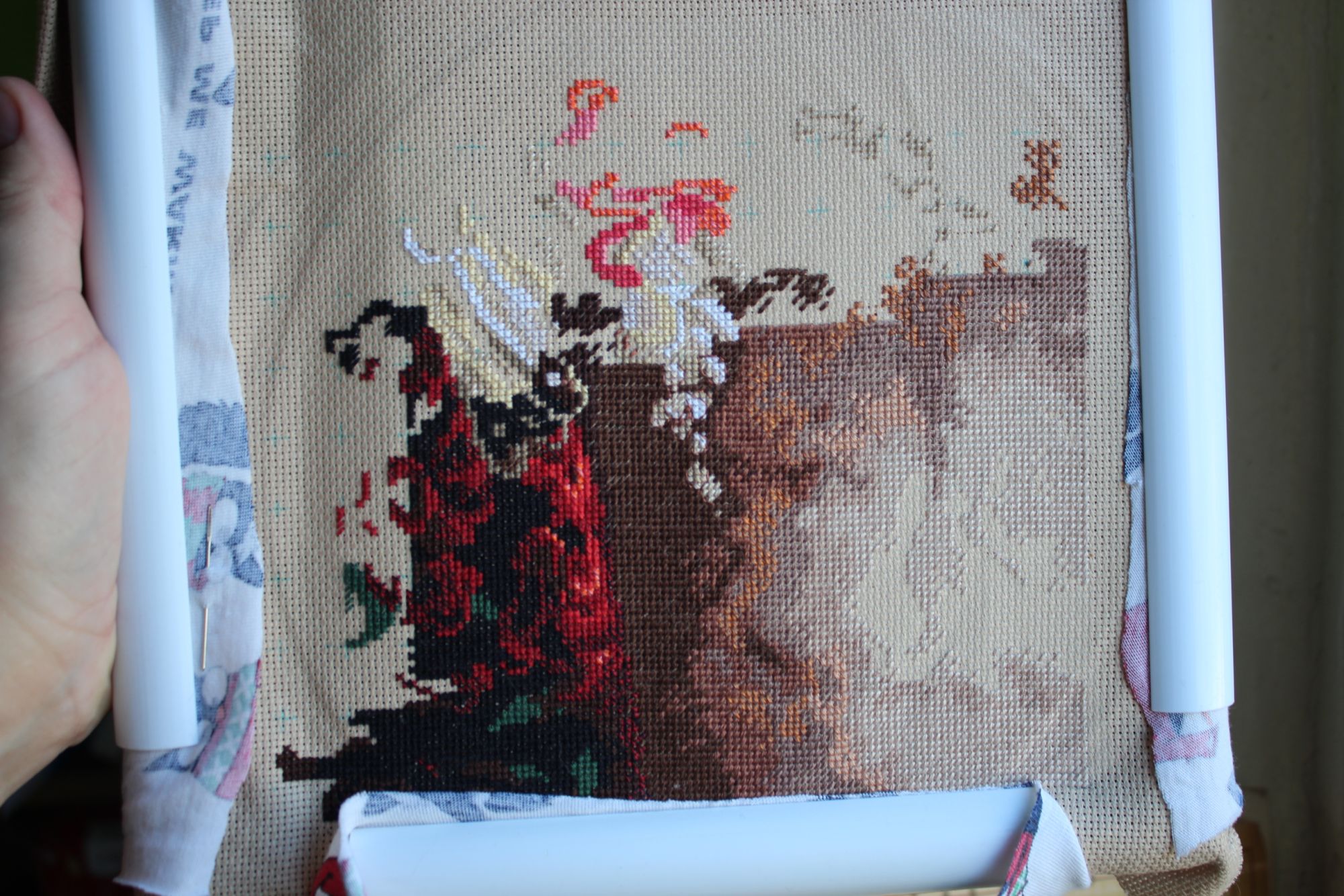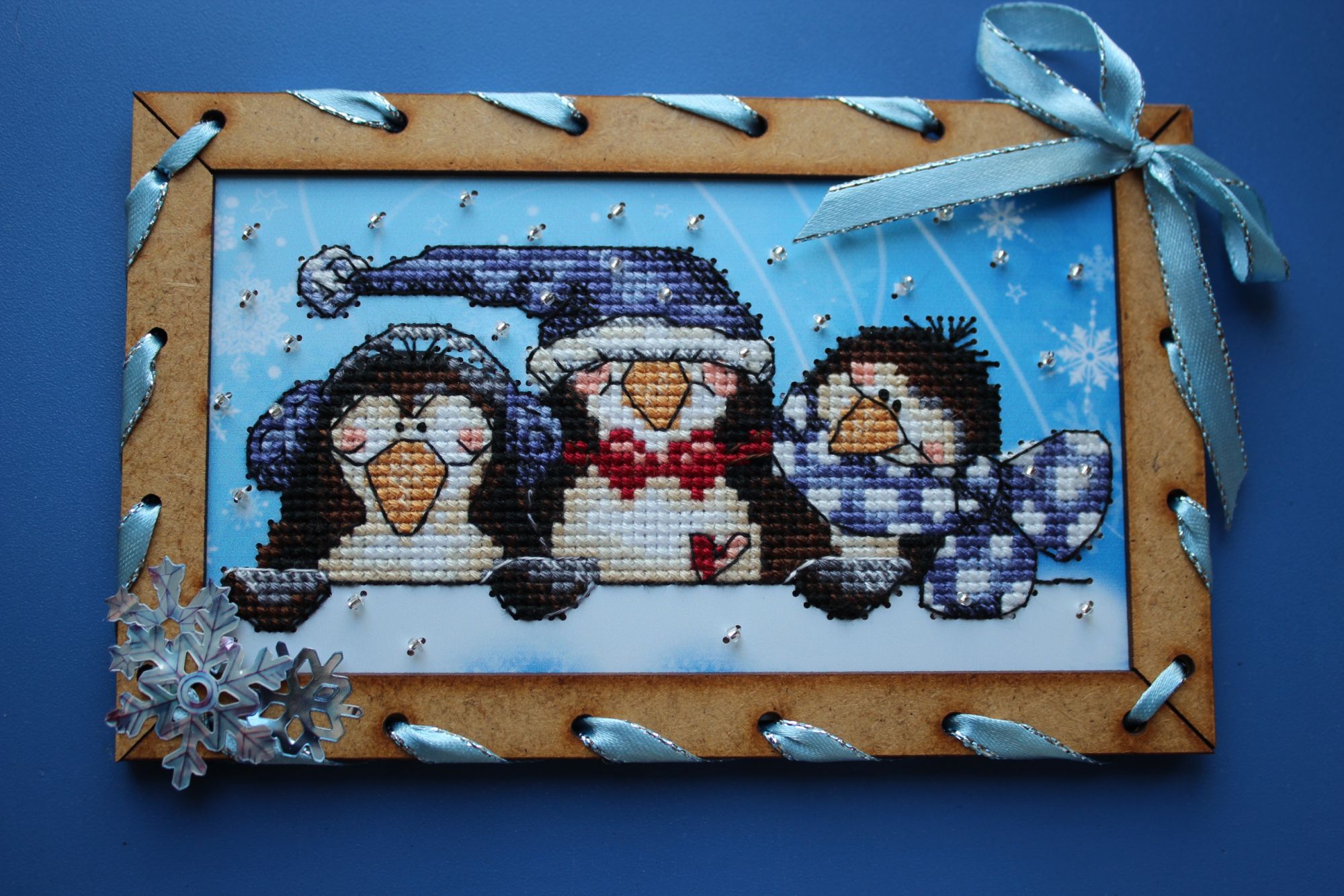 12 февраля 2017 Всем привет! Терзают смутные подозрения, что давненько меня тут не было...Как так получилось? Не знаю))) Вышивается мало, и какой-то неписун (неговорун?) напал...но отчитаться-то нужно. 1. Зеленим гаечку - первую в этом году. (Малюсенькую, правда). Наконец-то добила пингвинчиков - да-да, тех самых, которых за два дня сделать собиралась. Наверное подарю подруге. И что-то типа резюме. Про такие наборчики уже говорил кто-то, на подарок - отличная вещь. И сделать можно довольно быстро, и смотрится необычно и нарядно. Удовольствия в процессе почти не получила - только нравились пингвинчики, как они получались - совсем не то, что на картинке. Получились довольно интересные цветовые переходы, любопытные бленды. Тыкать иголкой в этот пластик - не понравилось, держать его в руках мне было неудобно. Позабавило - в нескольких местах по схеме бэк рекомендовался не по клеточкам...интересно, как они планировали это делать?)) Но это я не ною, просто мой субъективный взгляд. Используется 12 цветов ниток Пальмира - далеко не сразу поняла, что они не хлопковые, но вели себя очень прилично. 11 чистых цветов, 4 бленда. Бисер - целый пакетик, грамм 10, наверное - а используется штук 20 бисеринок. В наборе была ярко-зеленая капроновая ленточка для отделки. Как-то она сюда не лепилась, благо дома запасы ленточек немалые, было из чего выбрать. И еще в очередной раз убедилась - только на вышивку у меня более-менее откуда надо руки растут, любое прикладное оформление - ну не мое! От употребления ненормативной лексики при сборке рамочки останавливало только присутствие Кирюхи - который с удовольствием помогал ленточке путаться, рамочкам разъезжаться, пихал меня под локоть - так что дитенка тоже чуть не прибила) Ну кое-как собрала. Вряд ли буду повторять такой подвиг еще раз, лучше просто повышивать. Но, повторюсь, результат очень нравится! Нельзя раз в три неделе отчеты писать, очень много букв получается... 2. И еще о прикладной вышивке...К приезду Алиски собиралась оформить трех лисят. Оформился один, не совсем так, как хотелось - но ребенок был счастлив до безумия, и это все компенсирует. Это маленькая подушечка, набитая кофейными зернами. Ее можно разогревать в микроволновке, и она долго держит тепло...ну и стратегический запас кофе, если вдруг что) 3. Наконец-то покажу немножко первых крестиков в Кастомовской лошадке (Полночное сияние). В этом кусочке 12 цветов, переходы смотрятся гораздо плавней, чем на обложке, вышивать безумно приятно - непонятно почему)) Оторваться трудно. 4. А отрывалась я от Кастома потому, что уже категорически подходят сроки по Димовской Девушке с букетом, а у меня еще конь не валялся...уже не уверена, что успею к сроку, в крайнем случае буду дарить позже. Не сильные прибавления, но она у меня пока в приоритете, надеюсь на хорошие продвижения (к какому-нибудь следующему отчету). Было/стало 5. И еще была в командировке в Питере. По традиции брала с собой Парусник по Афремову, но повышивать получилось только в поезде на обратном пути...всего около 2000 крестиков...в масштабе всей картины - капля в море. Но очень его люблю...и у меня беда - Парусник-то я подарить хочу, а себе - купить еще что-то афремовское...и никак не могу выбрать! Понимаю, что краски в Паруснике мне нравятся больше, чем во всех других наборах - хотя вроде бы везде одинаковые...ну это точно не к спеху, определю