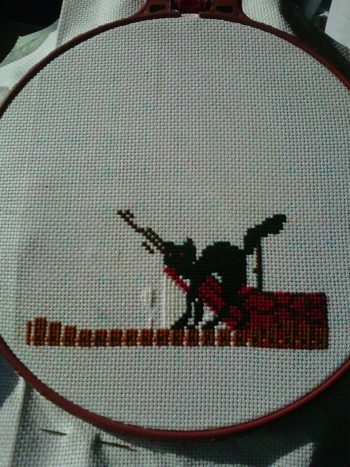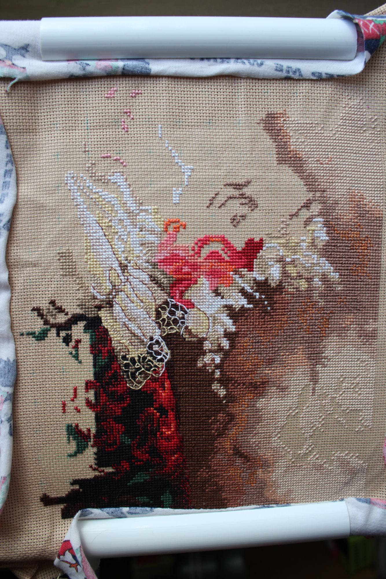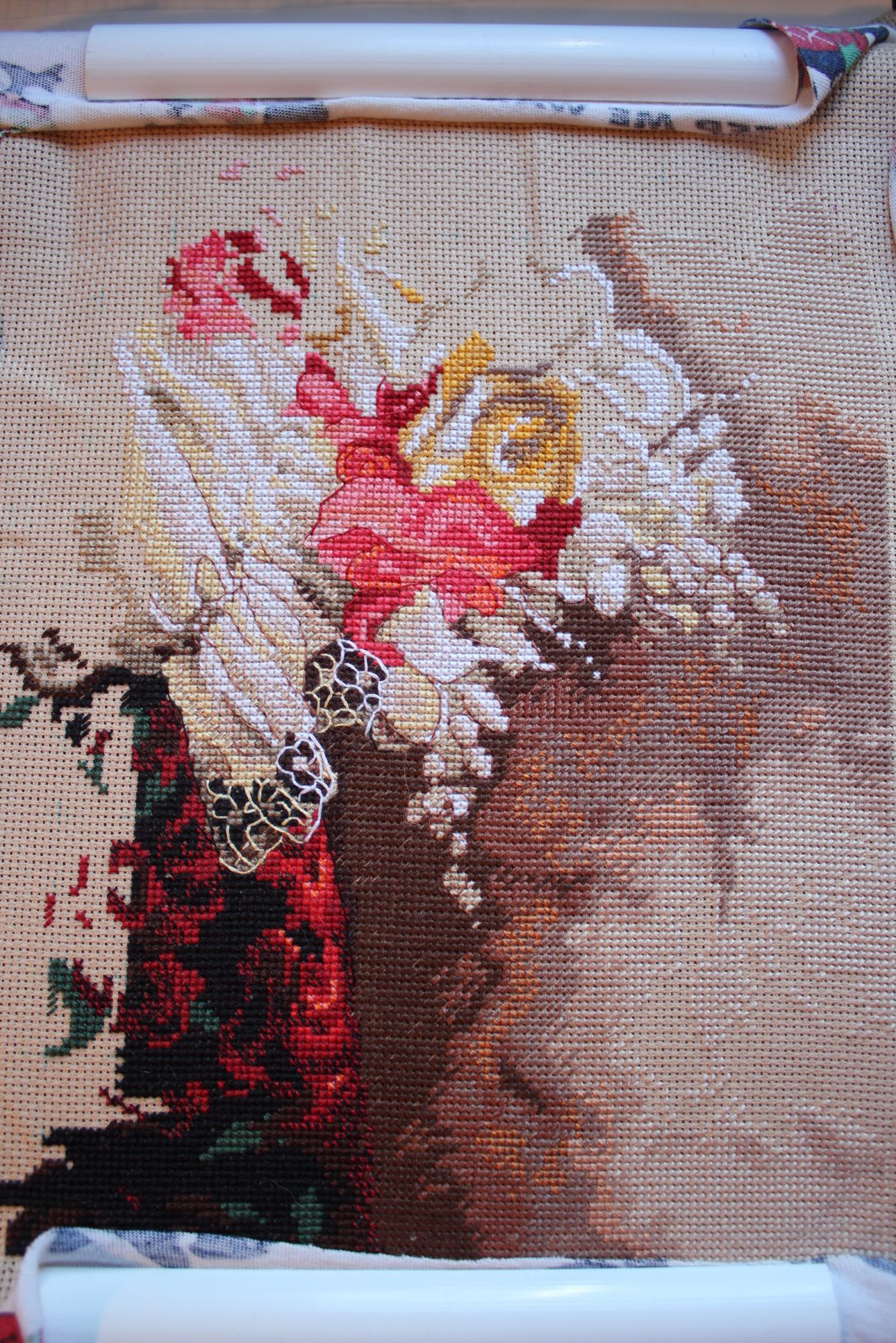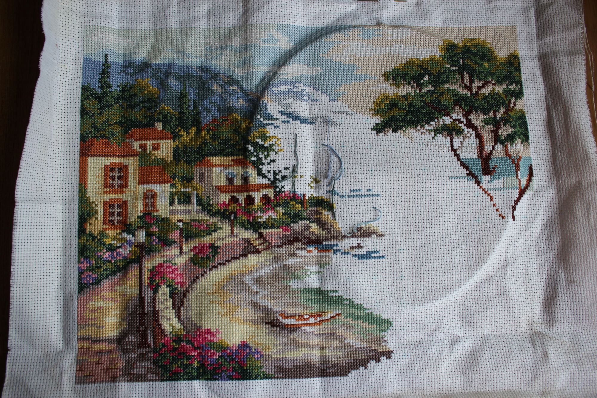 2 апреля 2017 Привет, мои хорошие. Да...опять все пылюкой позаросло... Снова приношу извинения за то, что не отвечала..хотя была уверена, что успела. Жизнь не устает меня развлекать, поэтому уже реально не помню, что сделала, а что только собиралась. Вкратце о жизни: ездила на неделю в Питер - не с туристическими намерениями, Алиска ложилась на операцию (не страшную, но все-таки), я там с ней в больнице была. Неделя перед Питером была чумовая - на работе завал (остальная часть нашего маленького коллектива уходит в отпуск без проблем - ну кроме директора - то есть, что они есть, что их нет...как-то так получается, что только у меня есть куча дел и поручений, которые надо кому-то передать...наверно, работаю плохо))))раз все сама не успеваю до отпуска разобрать))), кот еще заболел, за Алиску волновалась - в общем, не до вышивки было... Зато в Питере оторвалась, и в поезде...туда вообще сутки ехала, вот уж вволю навышивалась! И в больнице заняться особо нечем, кроме вышивки. Неделя после Питера - еще круче, чем до...реально пару раз вышивку в руки взяла, и то отдыхалочку. На работе - надоело пахать одной, пытаюсь научить работать других...получается примерно вот так... ну ничего, я упрямая) С котом какая-то непонятная фигня, доктор наш не может понять, что с ним - скорее всего что-то с головой - или сосудистое, или что похуже...всю неделю старалась за ним смотреть - как он себя ведет, уколы, таблетки...сейчас получше вроде - девочки, это такое счастье, когда животное ест, пьет и писает! В общем, вышивальными из трех недель отсутствия получилась неделя в Питере и эти выходные. 1. Спасибо всем, кто болеет за девушку с букетом, но конечно же не успеваю ее вышить к нужной дате, поэтому сильно упираться не буду - как сделаю, так и подарю. К настоящему времени есть полный один лист из четырех - что радует - что уже с бэком, выкладными и фрузиками, пошла наверх, там бОльшая часть листа - полукрестовый фон, Было/стало Сейчас переставила снапы, немного вышито фона. 2. В Южном береге прибавления не сильные - вышились горы...вот не очень люблю шить в одну нить - но так здорово получается, даже у меня - ровненько и аккуратно. И впечатления - далекие горы в морской дымке... Было/стало 3. Чем больше всего горжусь в этом отчете...отступила от традиций, и в Питер взяла с собой Трамвайный путь от Новой слободы. (вот точно немалую роль здесь сыграл процесс Леночки - titania и ее волшебные сказки - правда другой набор, но тот же волшебный таинственный город...Захотелось поскорее закончить трамвайчик, сочиняя себе попутно добрые или страшные истории об этих странных домах и кривых переулках, и начать следующий городской пейзаж от НС.) Результат - второй угол, законченный второй лист (правда, узенький), и начатый третий - по всей высоте листа. Шьется легко, большие цветовые куски - длинная нитка вся дошивается без сильных протяжек. Балдею от ниточек Аврора, за все время раза 3 в узелок завязались на изнанке - когда слишком длинные были, остальные нитки ведут себя со мной значительно хуже)) Было/стало 4. Без отдыхалочки все-таки не обошлась, в последний день в Питере начала котов из известной серии Риолиса - осенних. Итак, Риолис 613, вот что будет А это начало процесса. 5. И уже вчера-сегодня вытащила свой клейтоновский кружок - начиталась совместника, поняла, что очень-очень по нему соскучилась. Продвижения тоже не ахти какие- боролас